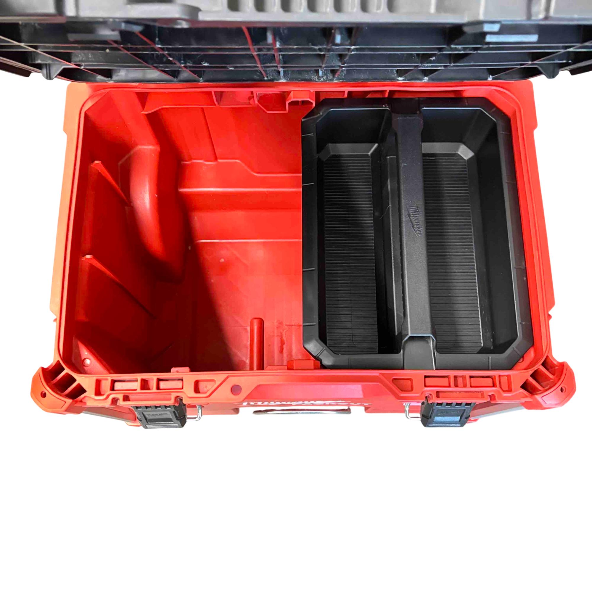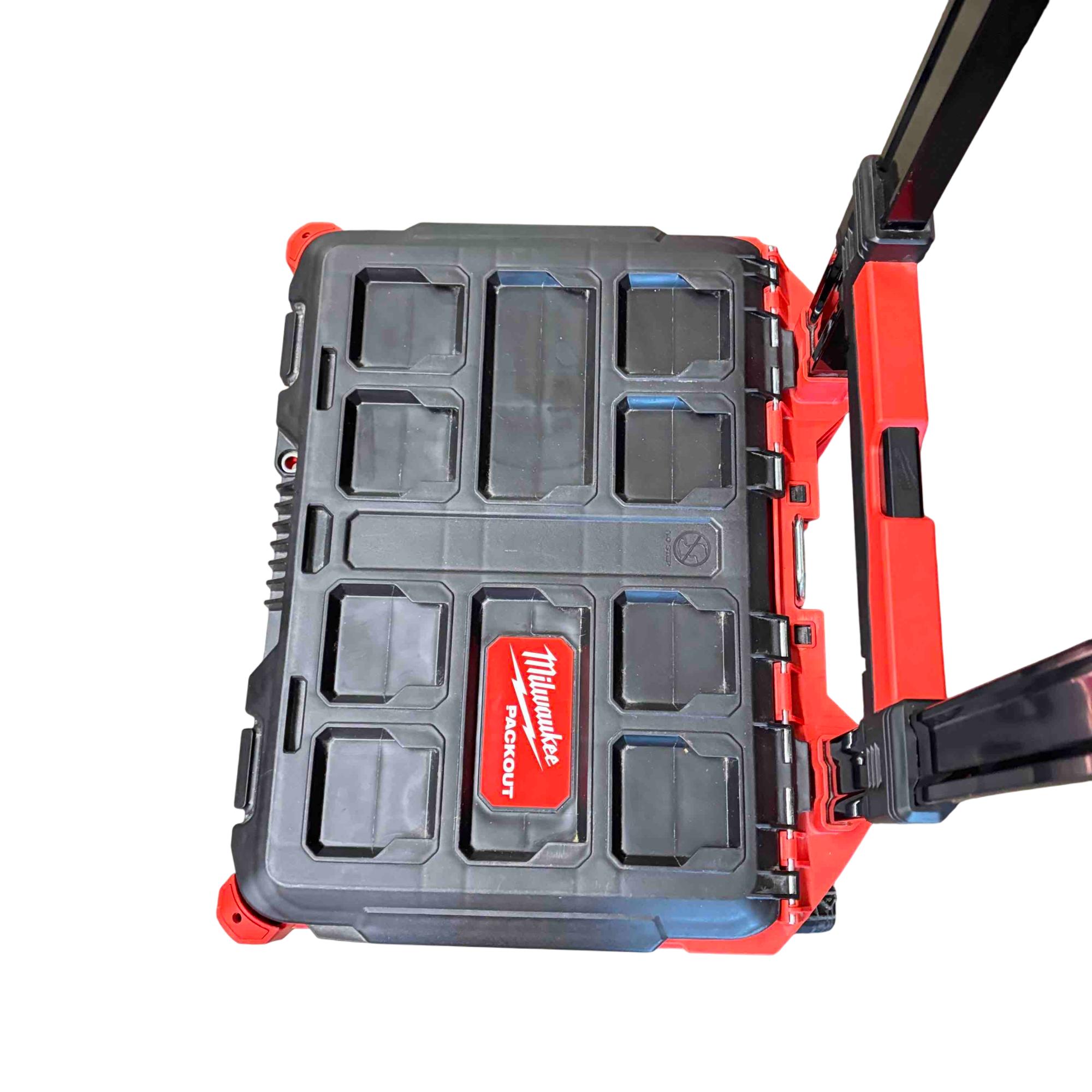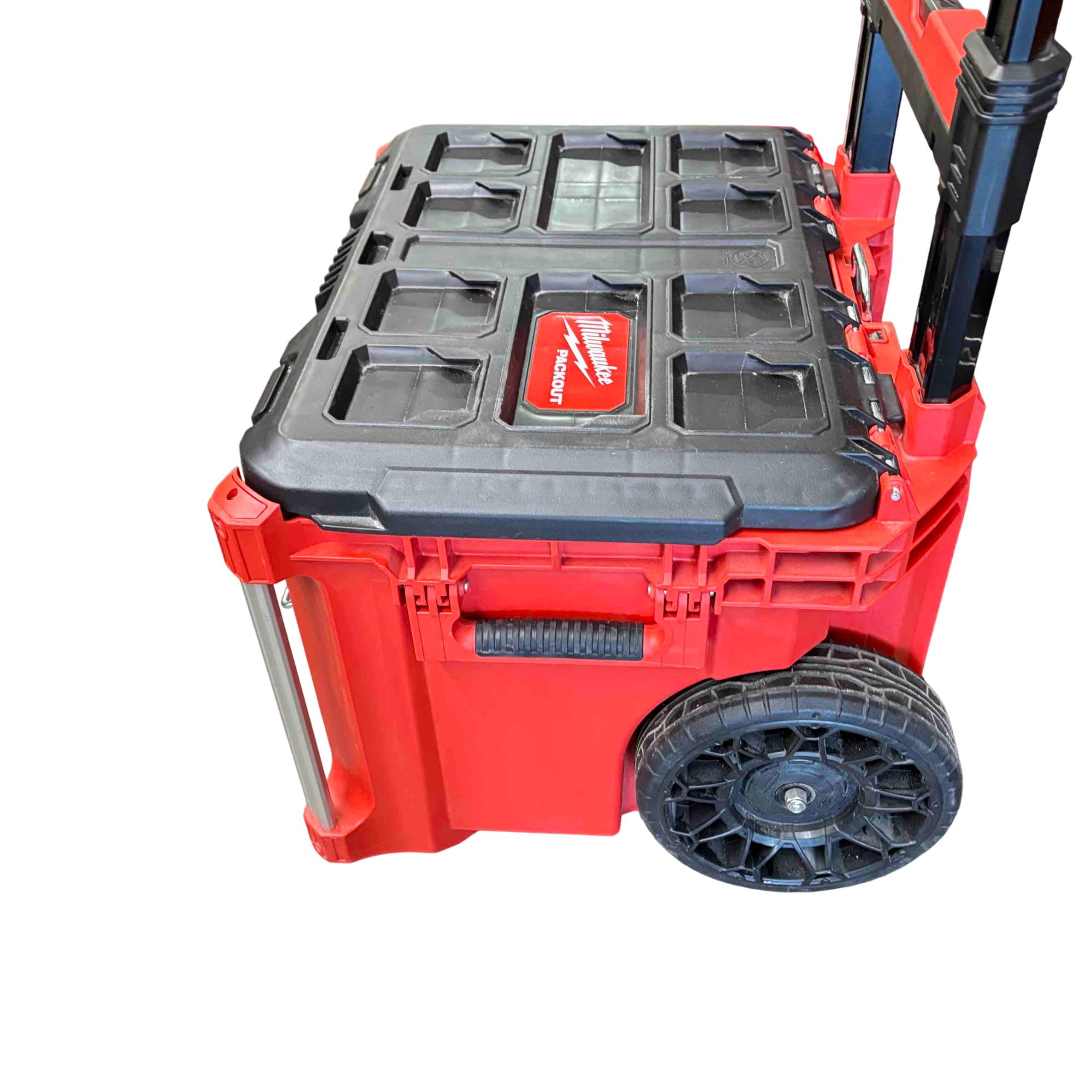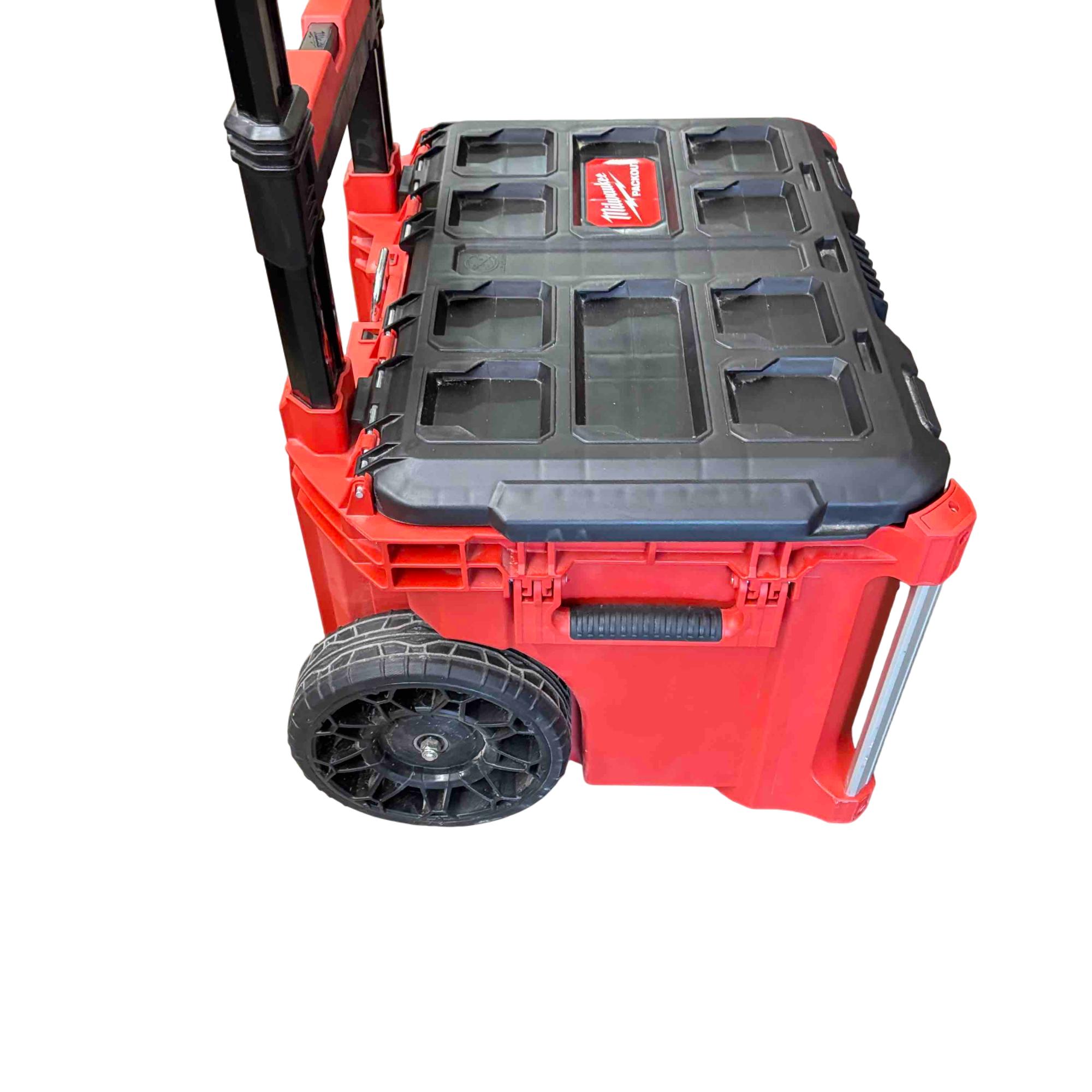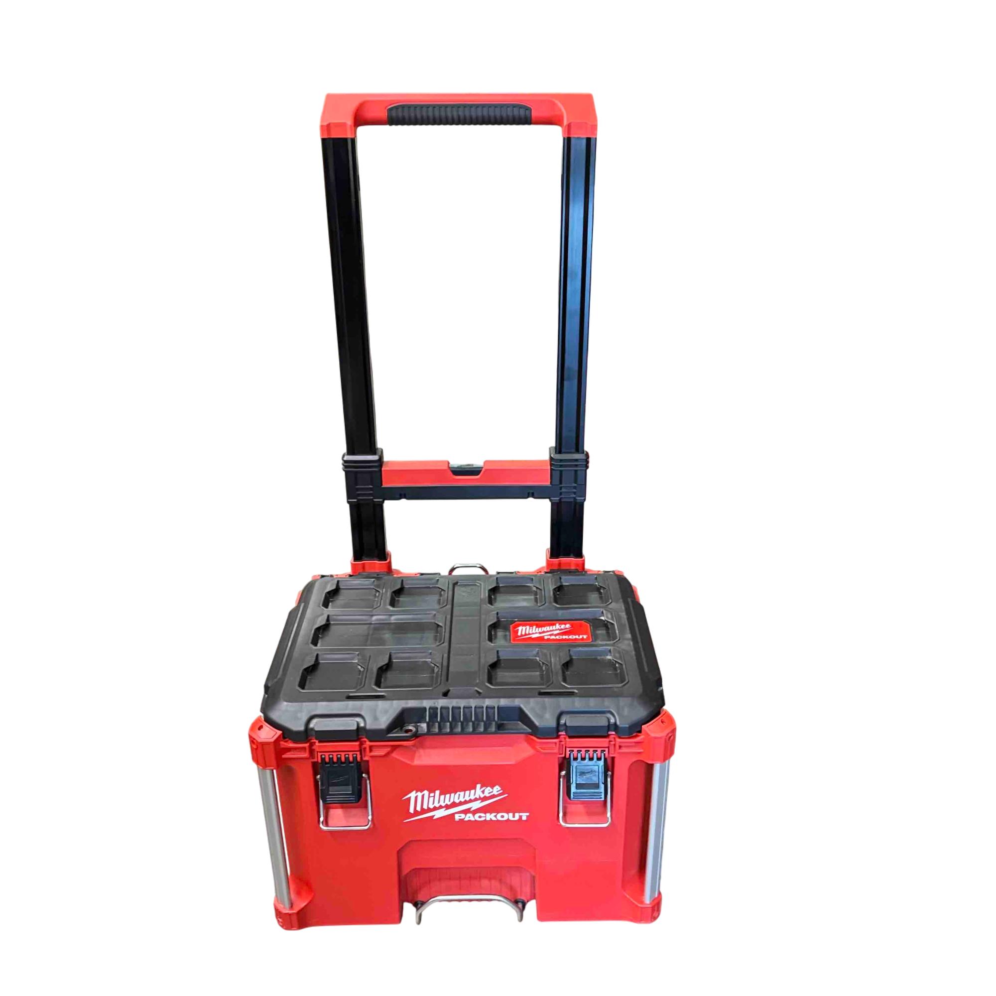 Upgrade your workshop with the Milwaukee Packout Modular Storage System Toolbox. Featuring a robust red and black design, this toolbox is perfect for transporting and organizing your tools with ease. Its wheeled base and telescopic handle provide mobility, making it ideal for on-the-go professionals.