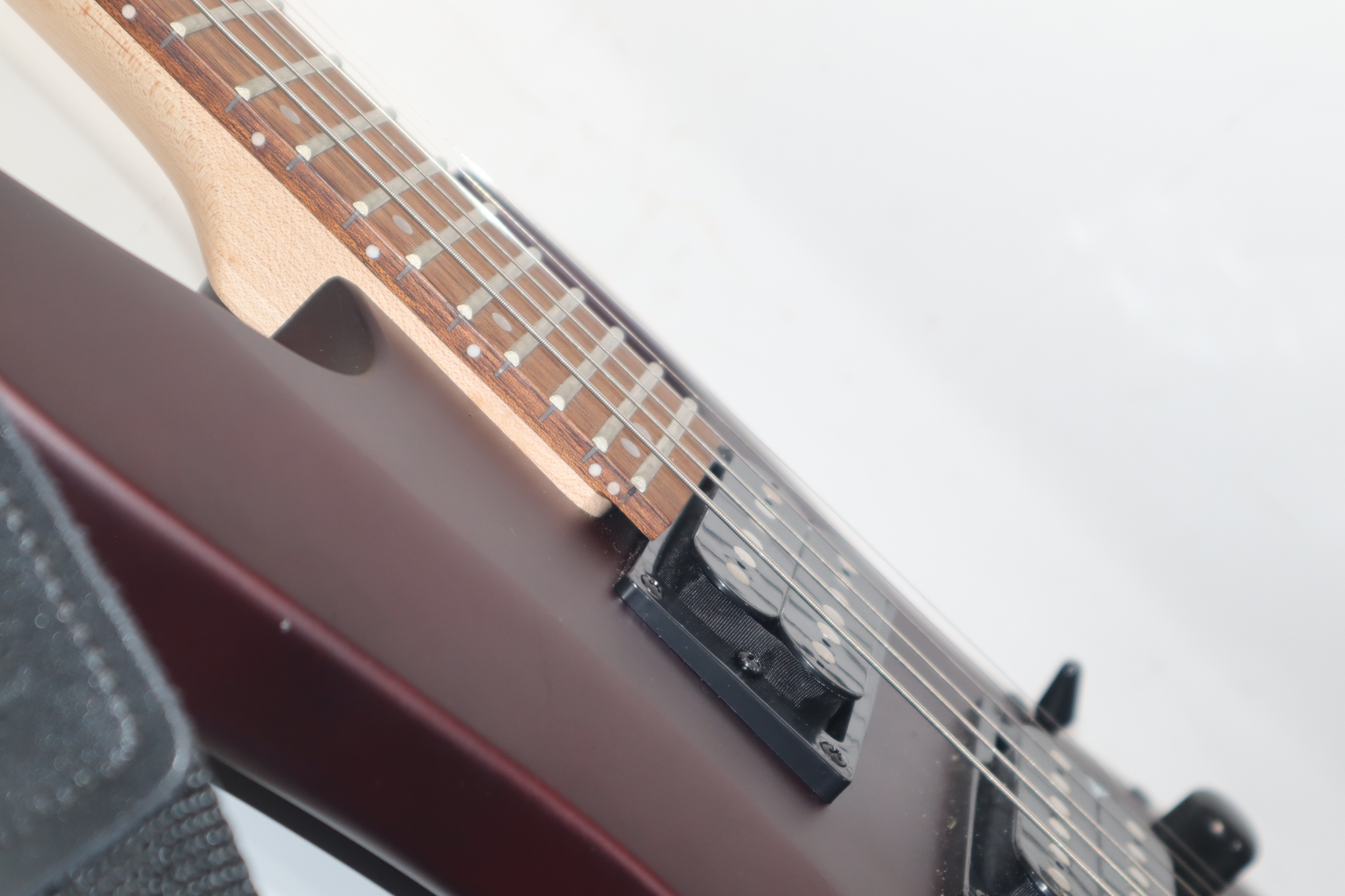 * It comes complete with two high-output ceramic humbucker pickups that crank out enough juice for a guitar twice its size. High-ratio tuners allow for precise tuning control, while the traditional, adjustable TOM-style bridge provides solid intonation. Plus, the MM100’s string-through body design gives it plenty of sustain and bite.