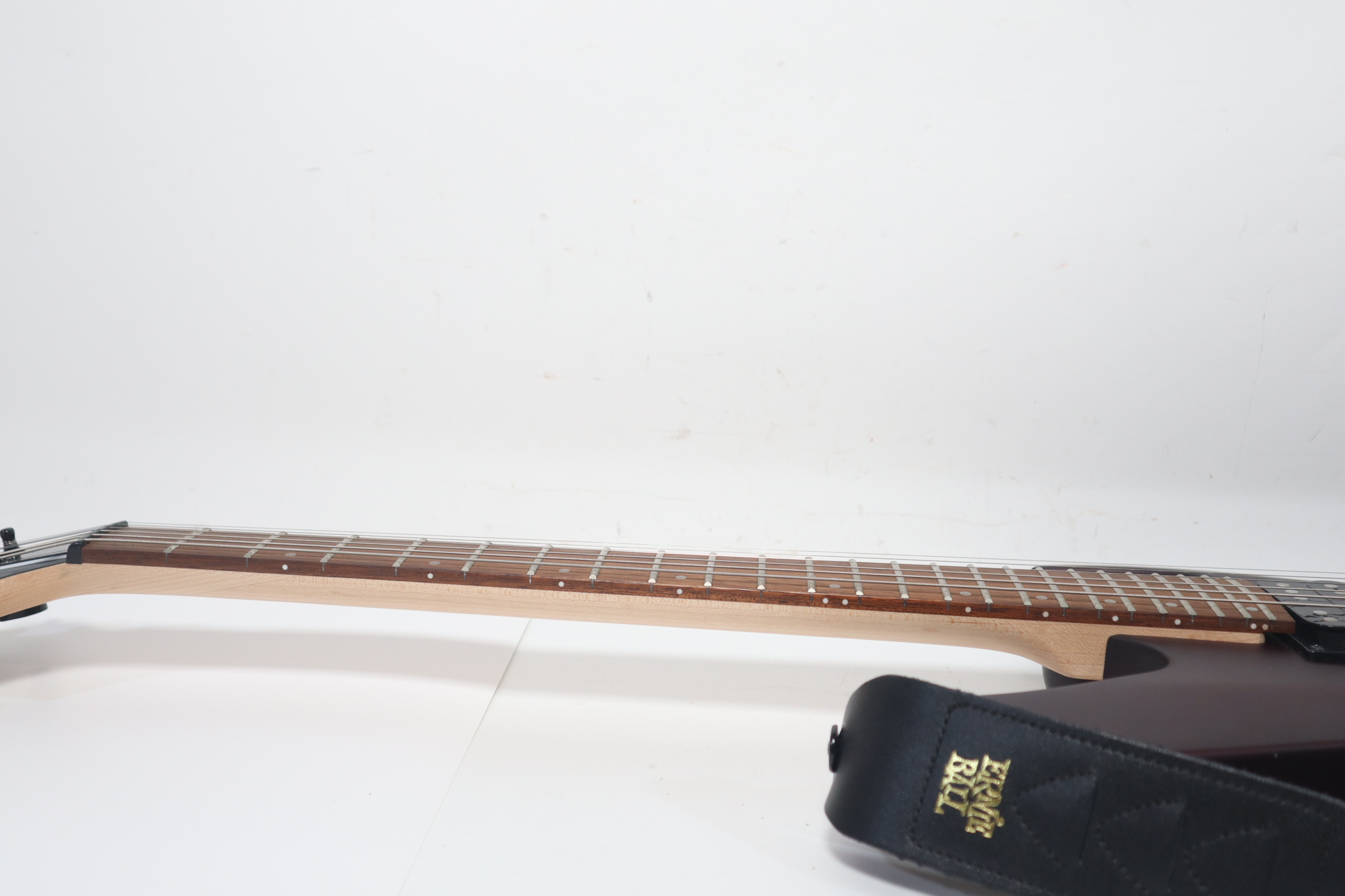 This electric guitar was previously owned. It shows signs of normal use. There are no defects or damage to list. It is in good condition. It has been tested and works.