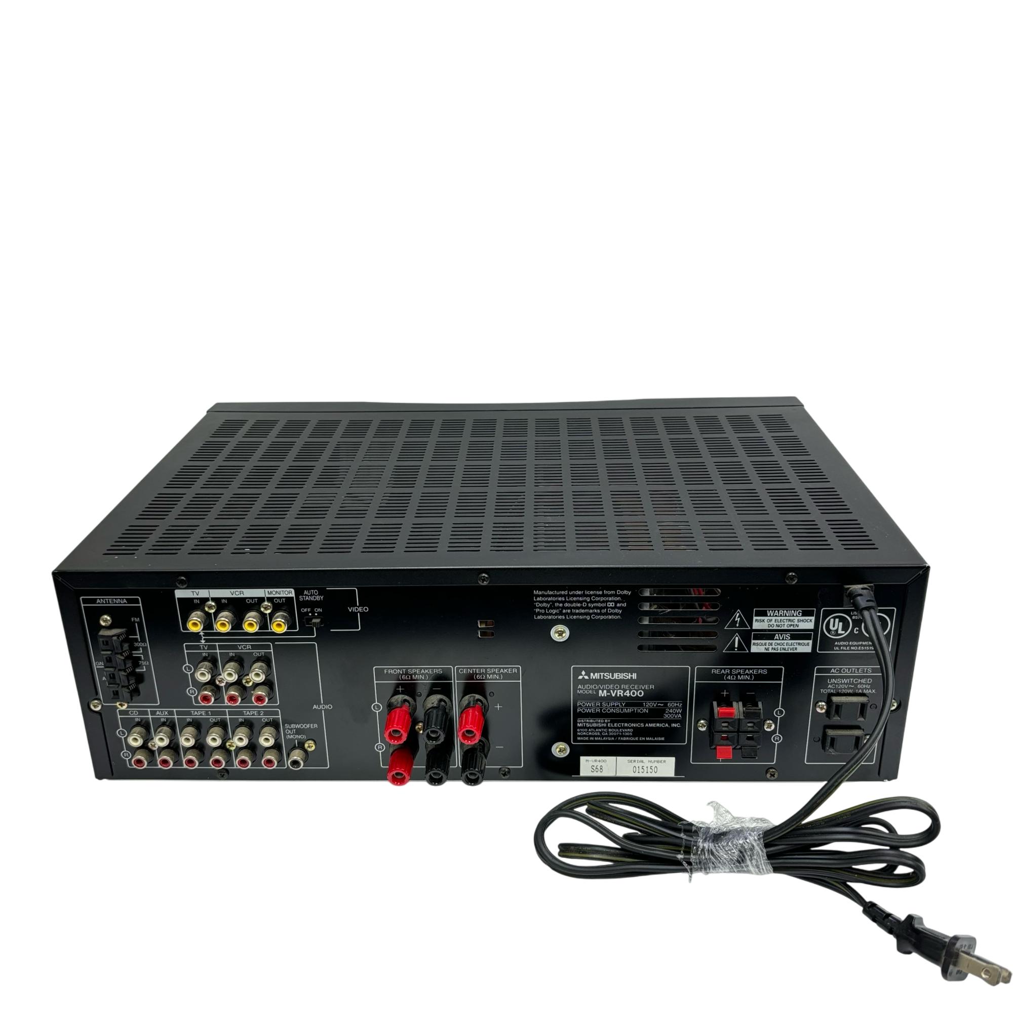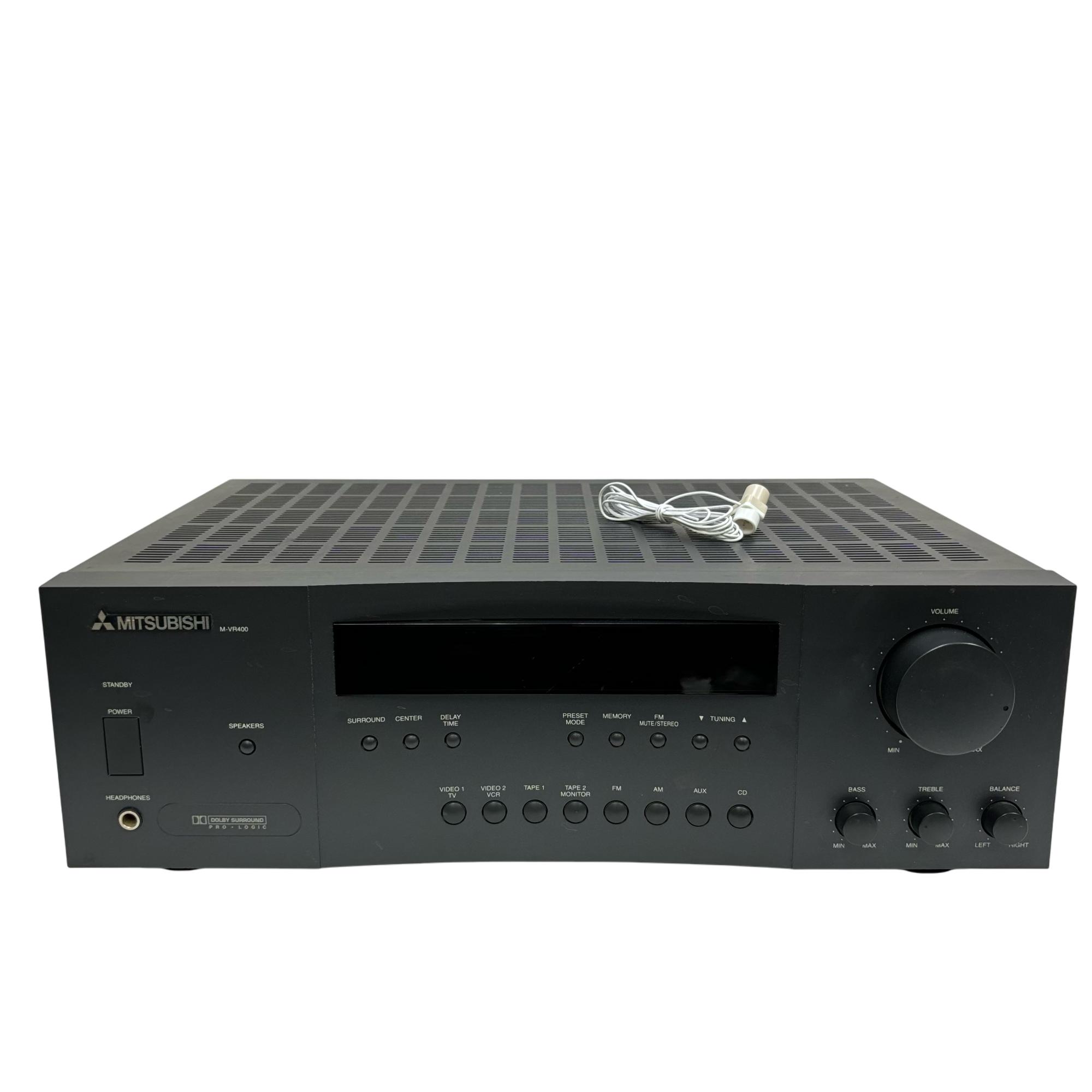 The Mitsubishi M-VR400 is a versatile stereo receiver designed to bring premium quality sound to your home audio setup. Featuring Dolby Surround Sound, multiple audio inputs such as CD, AUX, and various tape and video channels, this receiver offers exceptional audio clarity and a rich listening experience. With user-friendly volume controls and a sleek black design, it seamlessly fits into any entertainment system.