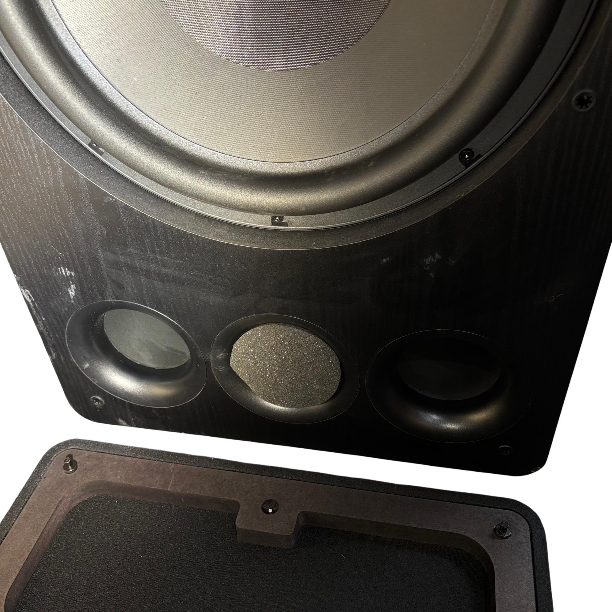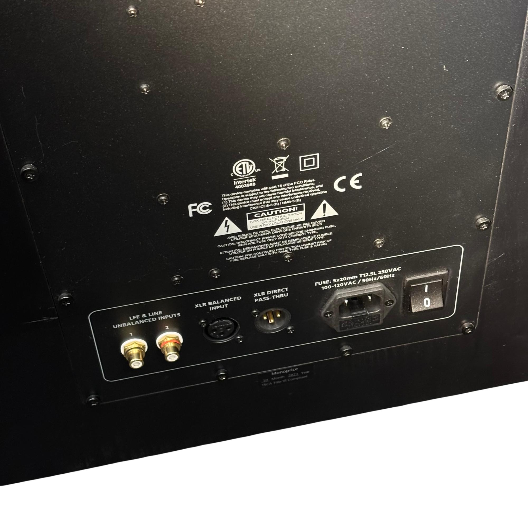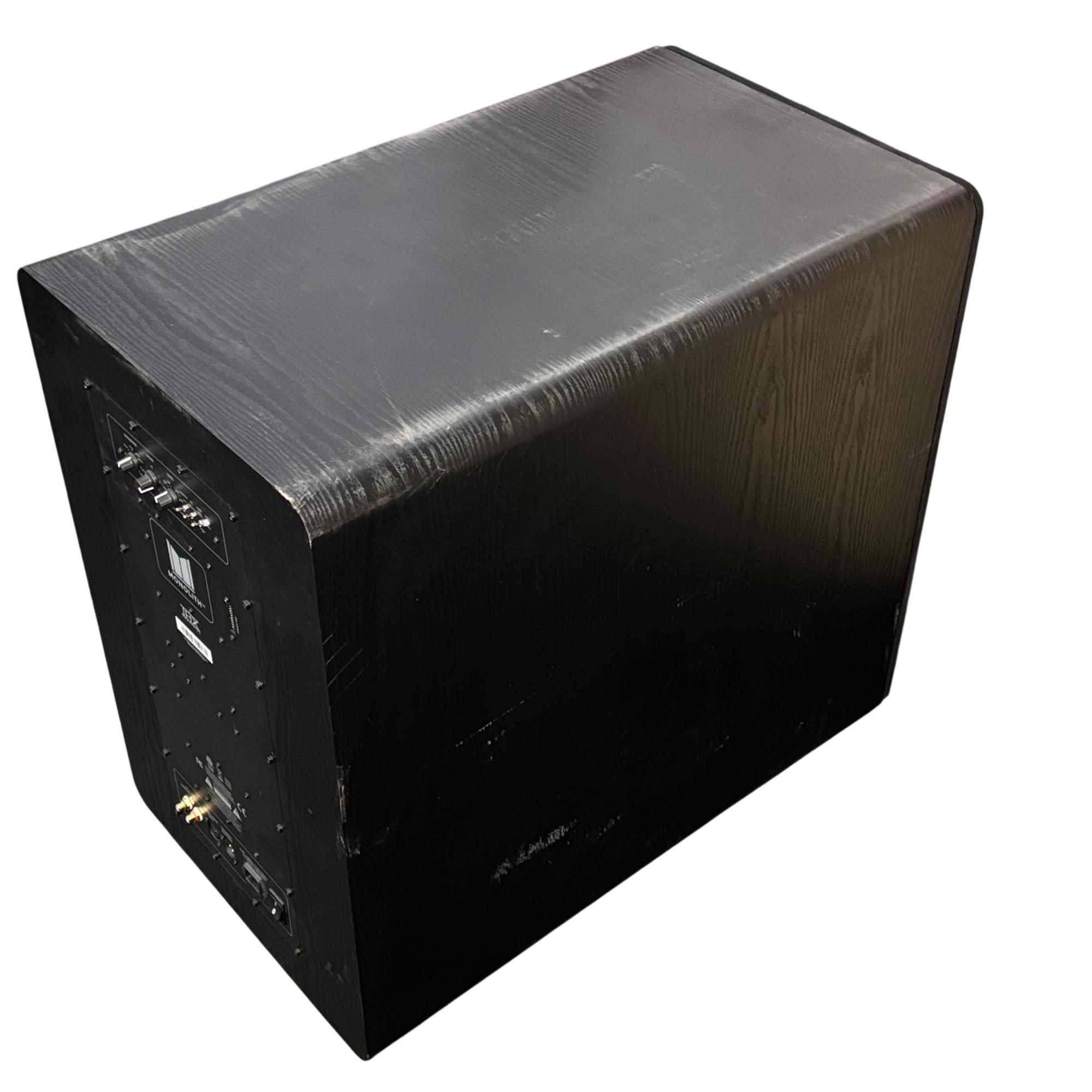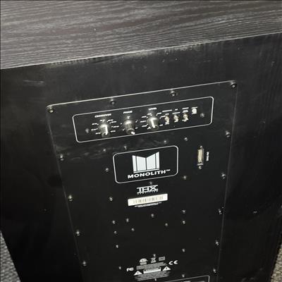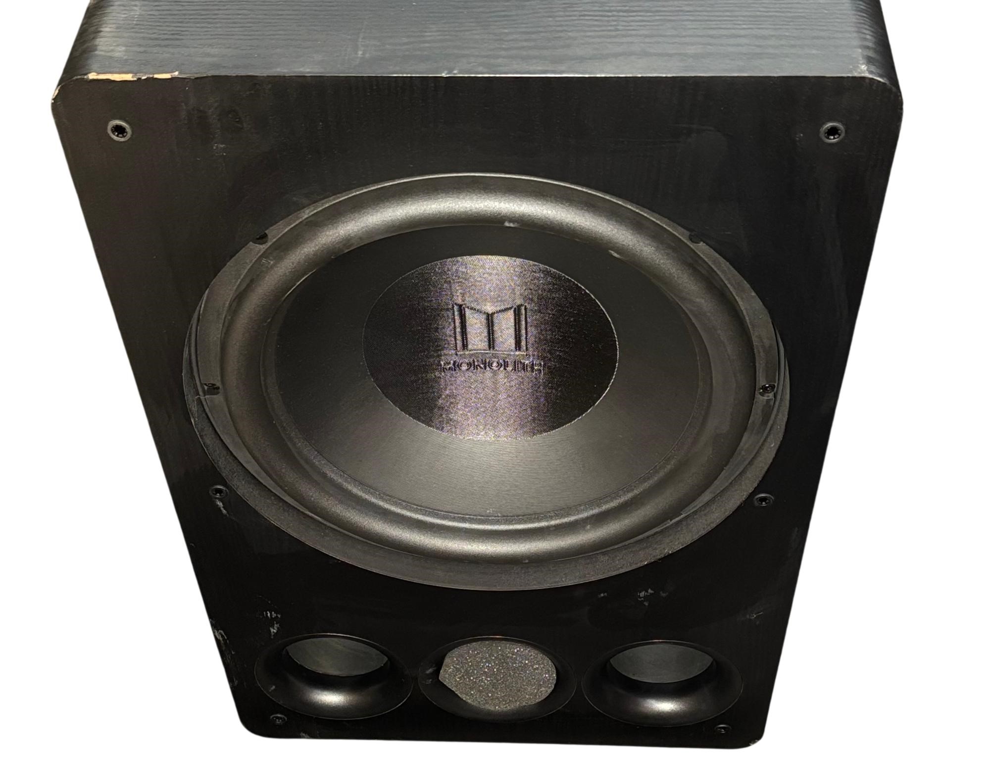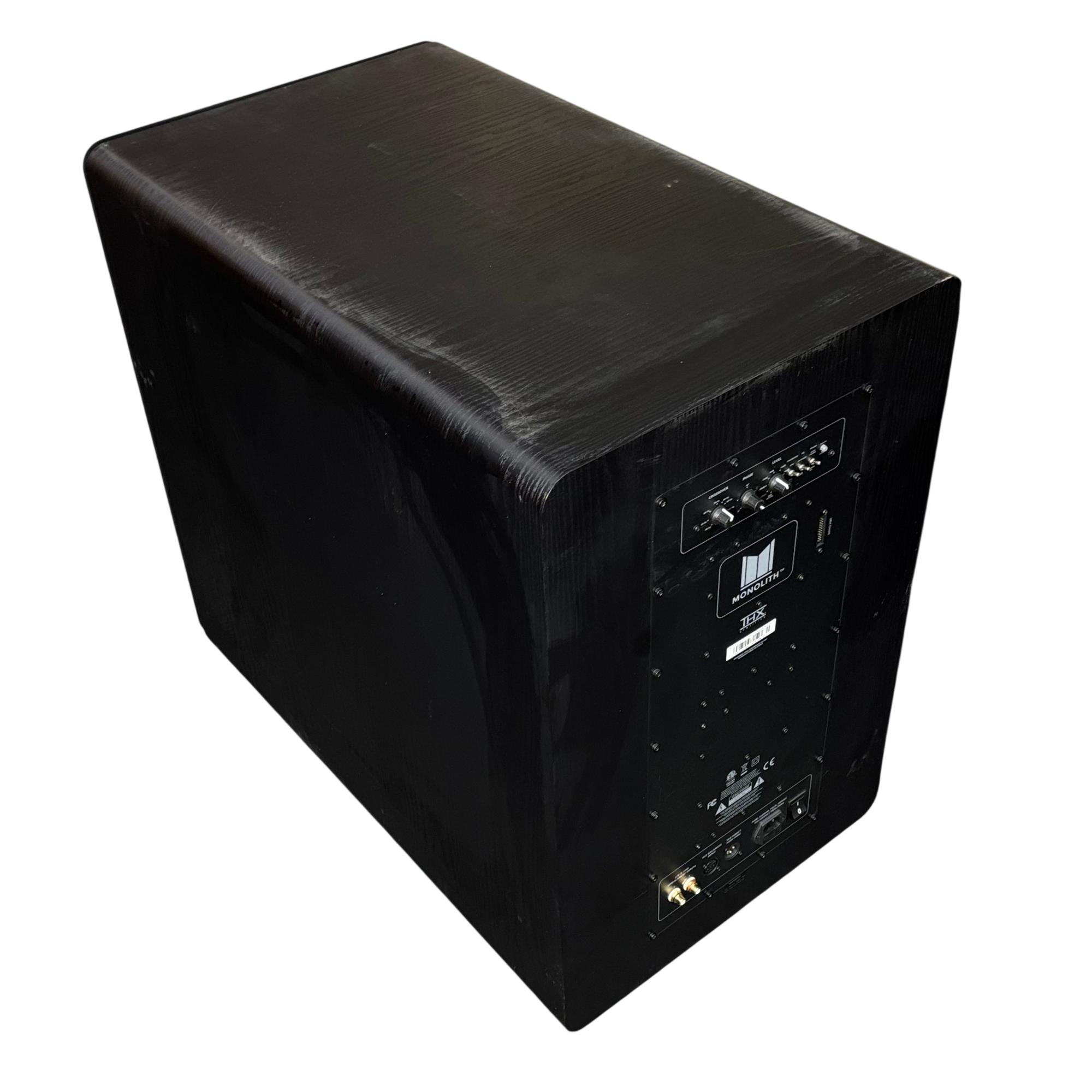 Monoprice Monolith V2 15" THX Ultra Subwoofer (Model: Monolith V215) delivers powerful and precise low-frequency performance for immersive audio experiences. This black rectangular subwoofer features meticulously engineered components and THX Ultra certification, ensuring deep bass and exceptional sound clarity in home theater or music setups.