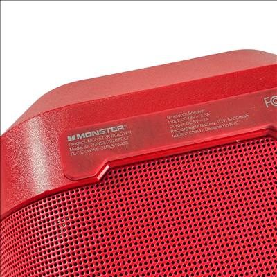 Monster Blaster wireless Bluetooth boombox speaker delivers powerful audio with 120 watts of output and a 60-watt powered woofer for deep, immersive bass. Its Environment EQ mode adapts sound to your surroundings, while the water-resistant design protects against splashes and light rain. The speaker includes a USB-A port for device charging and an Aux-In connection for flexible audio input.