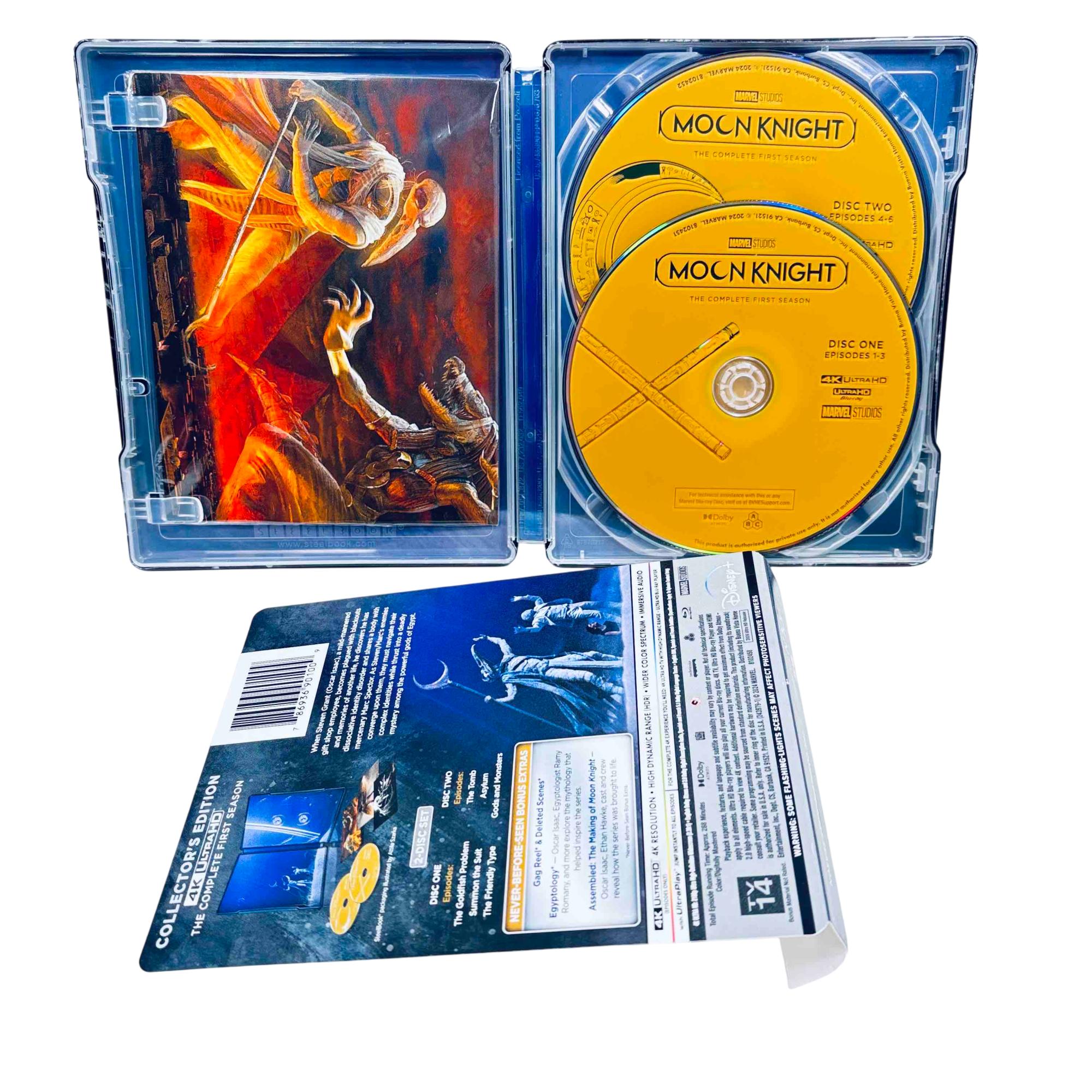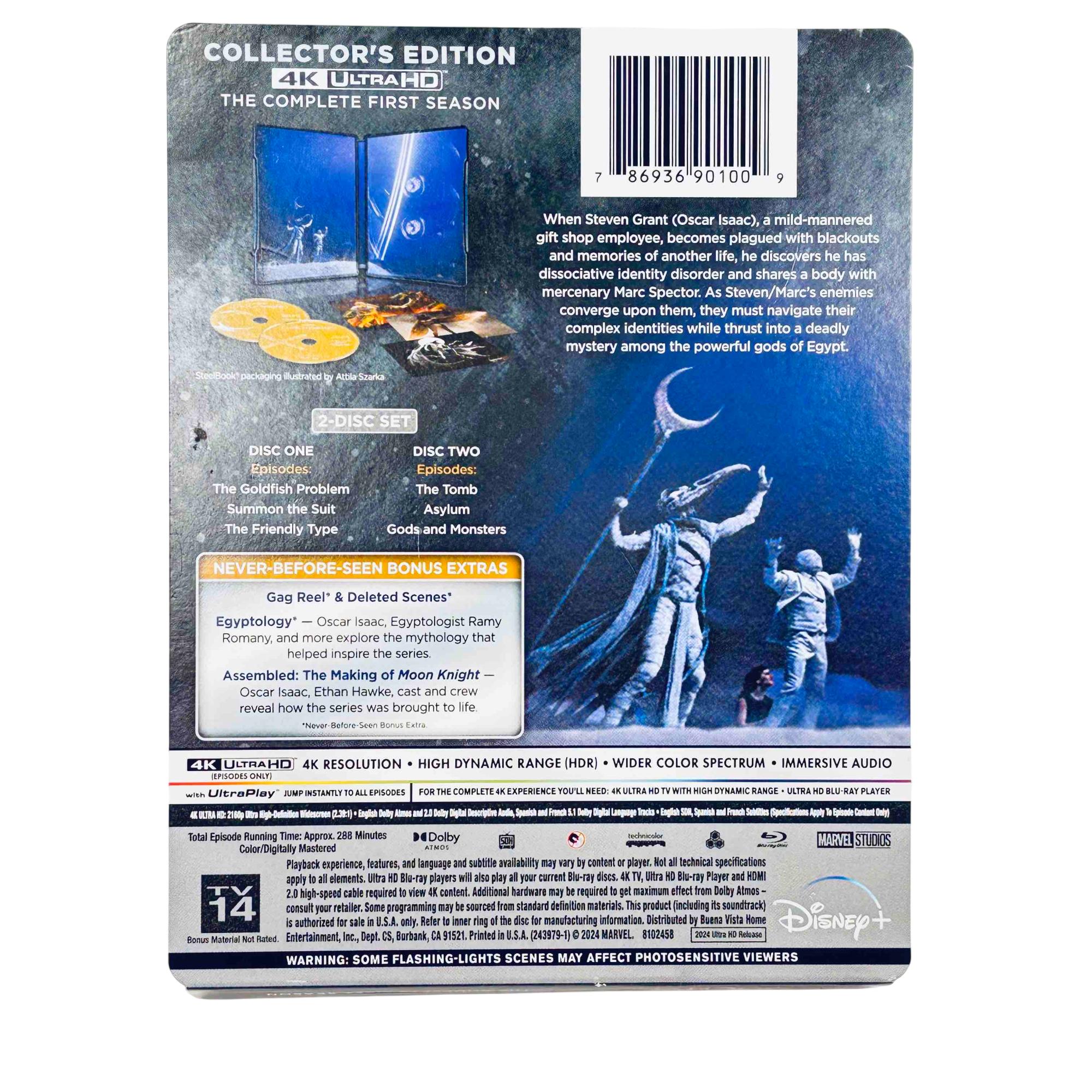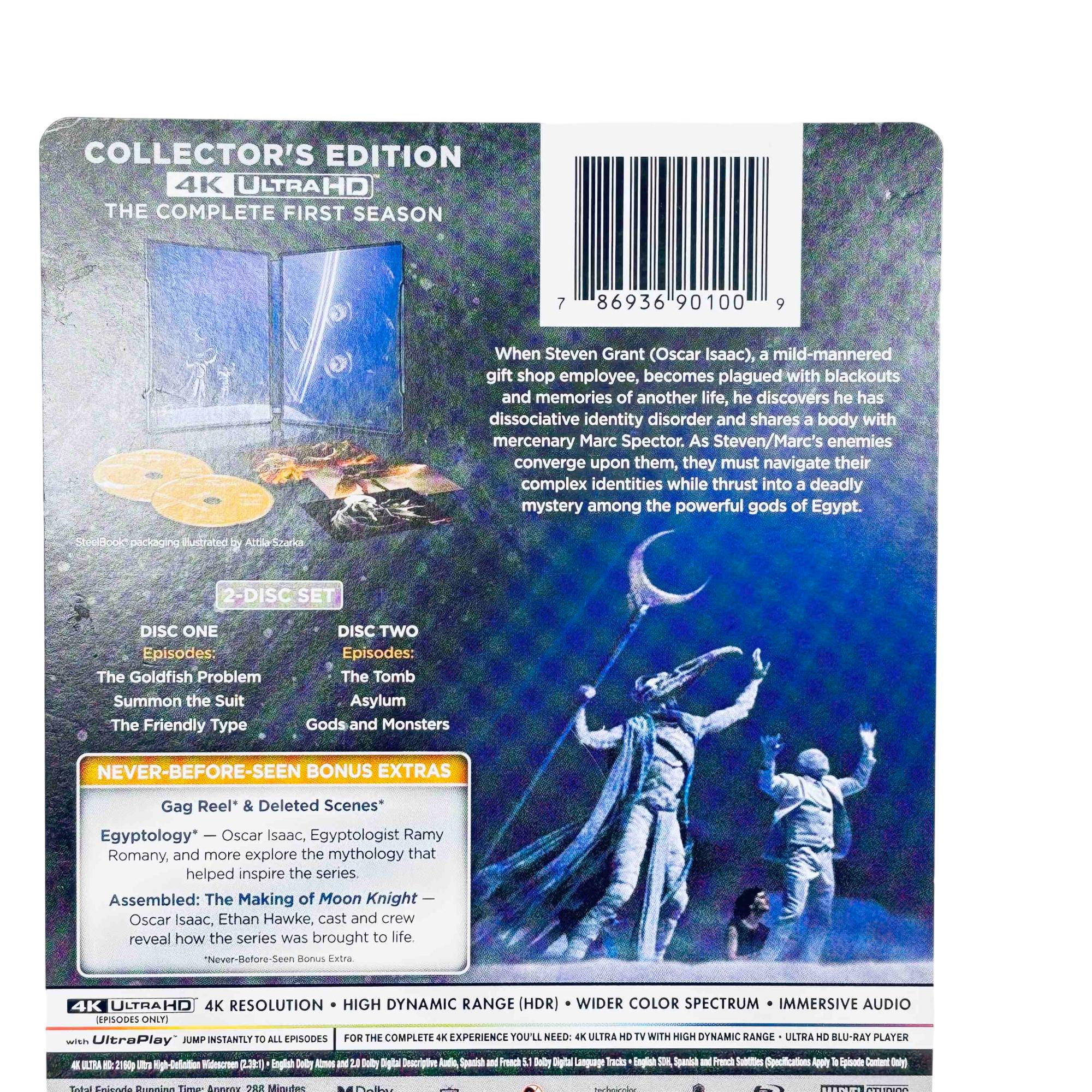 Experience every thrilling moment of Marvel Studios Moon Knight with this stunning Collectors Edition 4K Ultra HD SteelBook set. This exclusive release includes the complete first season, never-before-seen bonus extras, and collectible concept art cards, all wrapped in beautifully illustrated SteelBook packaging. Dive deep into the mind-bending, action-packed Marvel series featuring Oscar Isaac with pristine 4K Ultra HD quality and immersive audio.