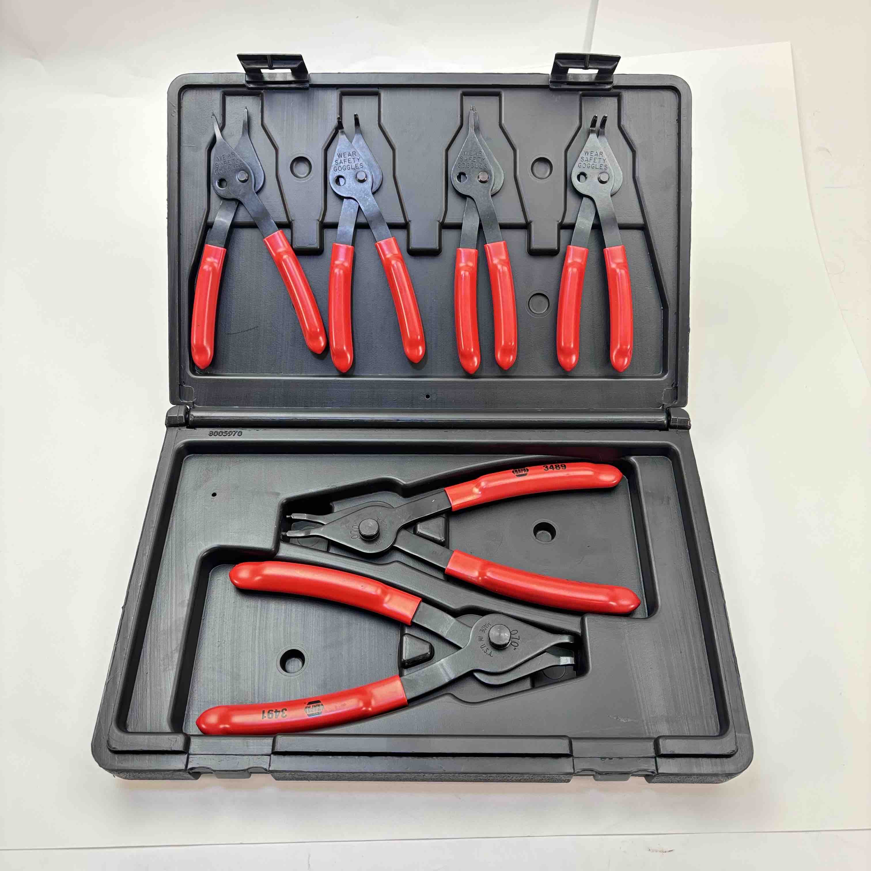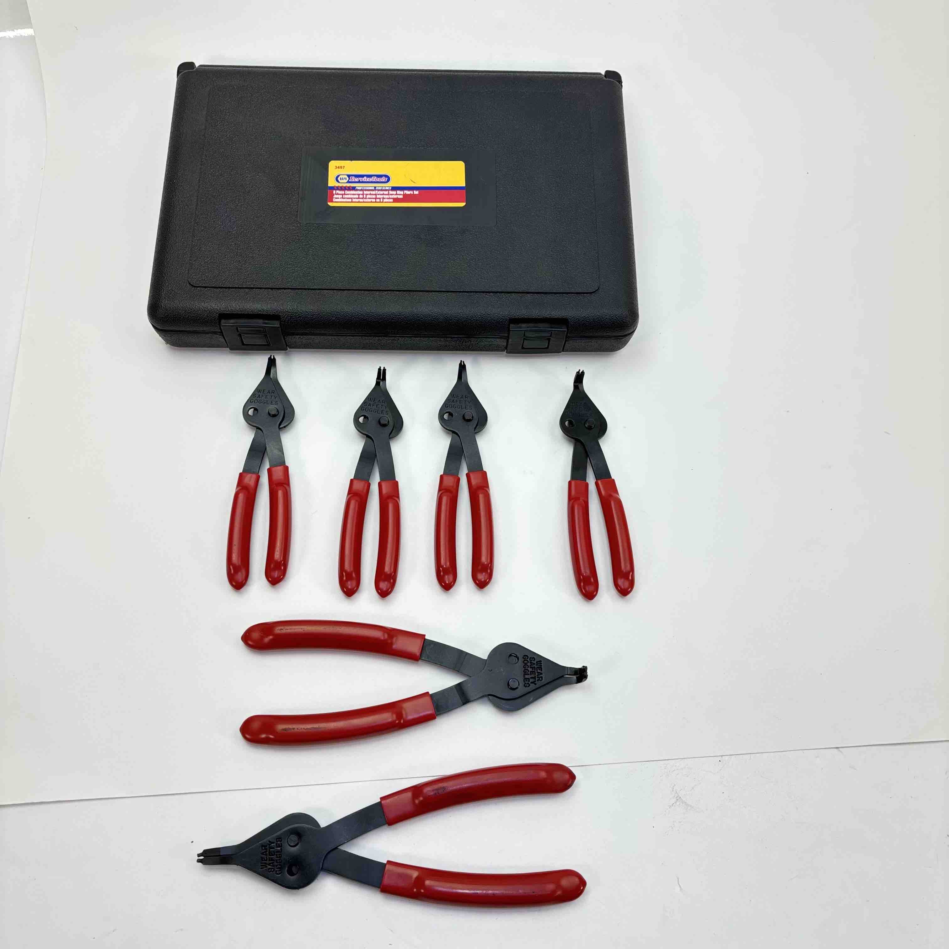 The versatile pliers are designed for the removal and installation of both internal and external snap-rings on a wide range of applications. This unique set includes three of the most popular tip sizes in straight and 90° angle configurations.