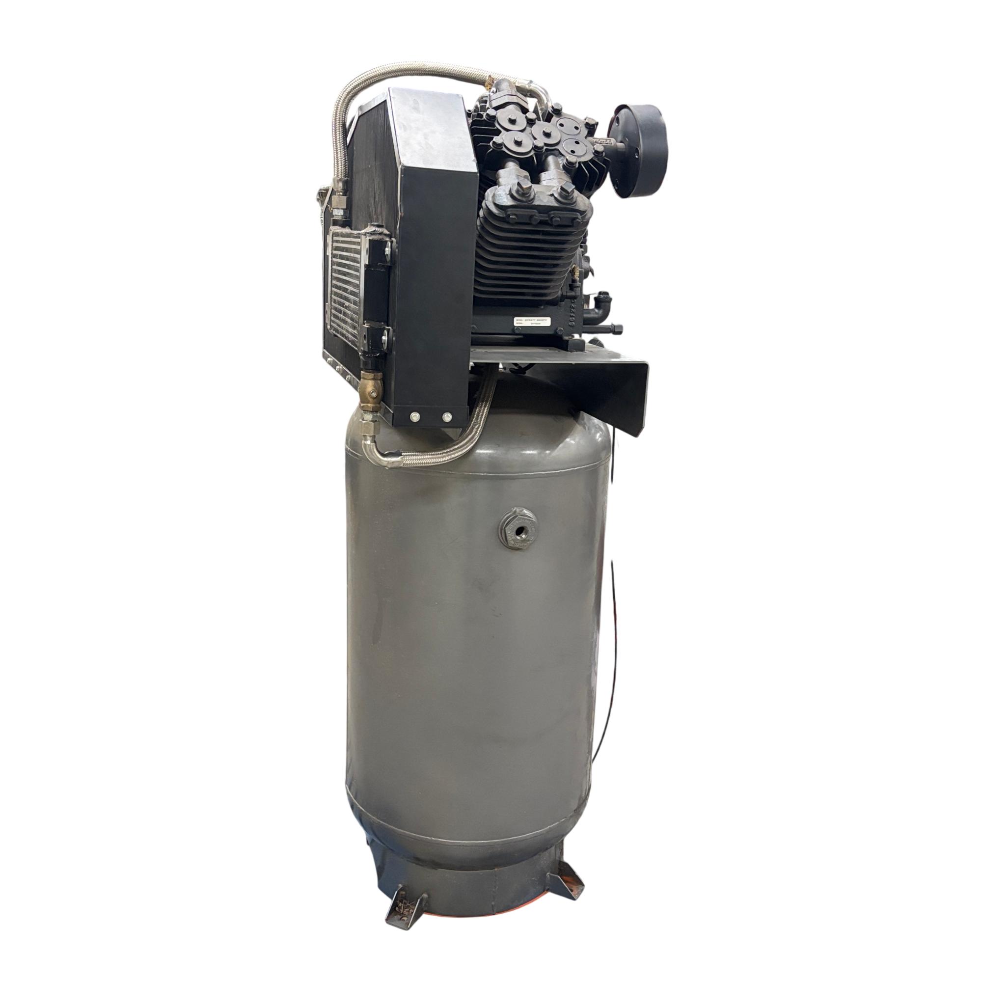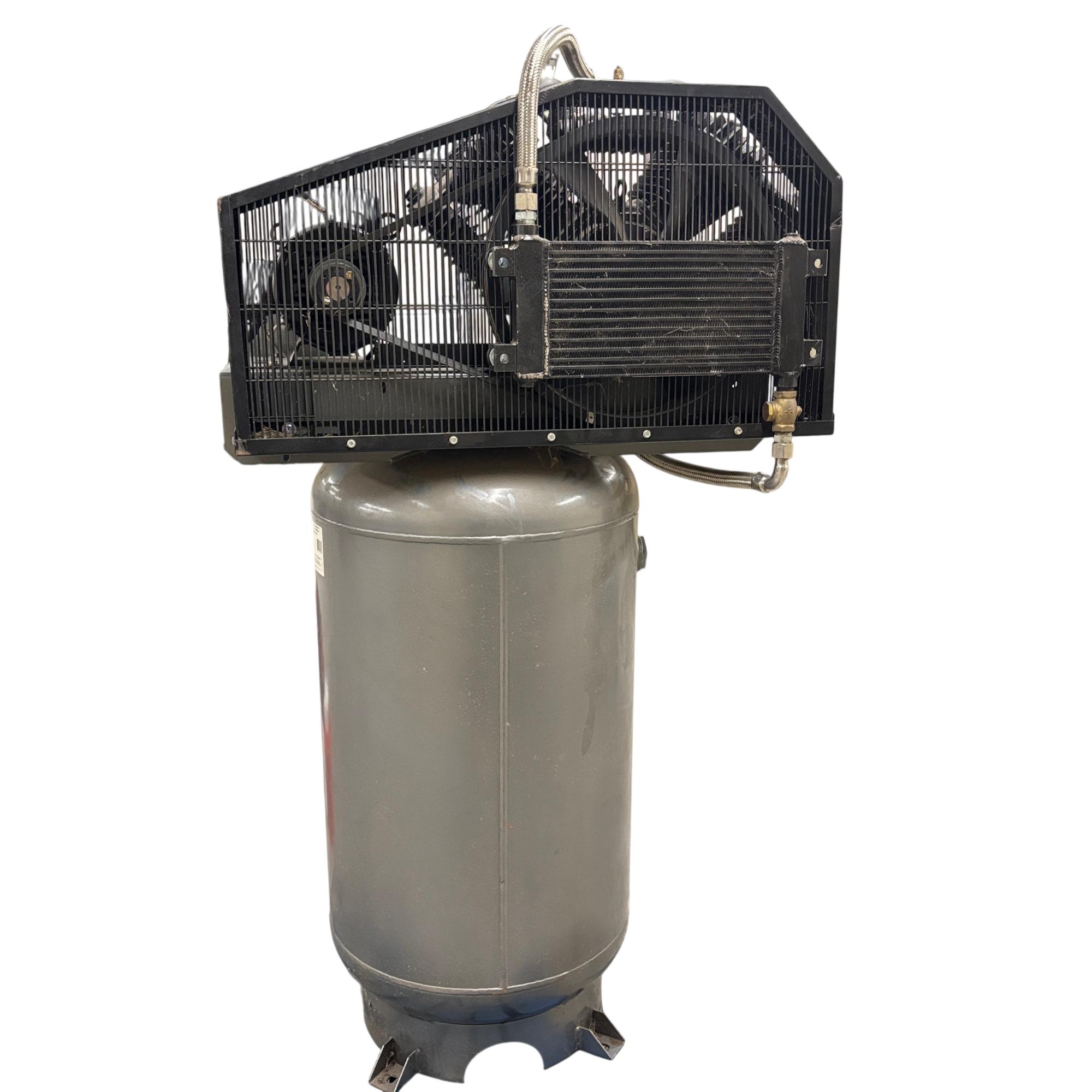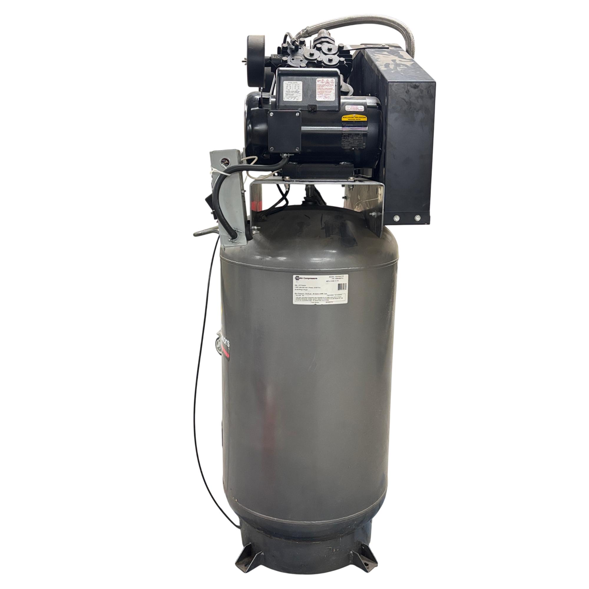 NAPA Air Compressors 80 Gallon 7.5HP Single Phase Air Compressor, Model 82378VATFF features a durable 80-gallon ASME tank and delivers 24 ACFM at 175 psi with a maximum pressure of 175 psi. This industrial-grade unit is powered by a 7.5 horsepower motor running at 208-230 volts single phase, designed for efficient performance in demanding applications. Its robust construction includes a pump model 82-1312202700 and meets California safety standards for unfired pressure vessels.