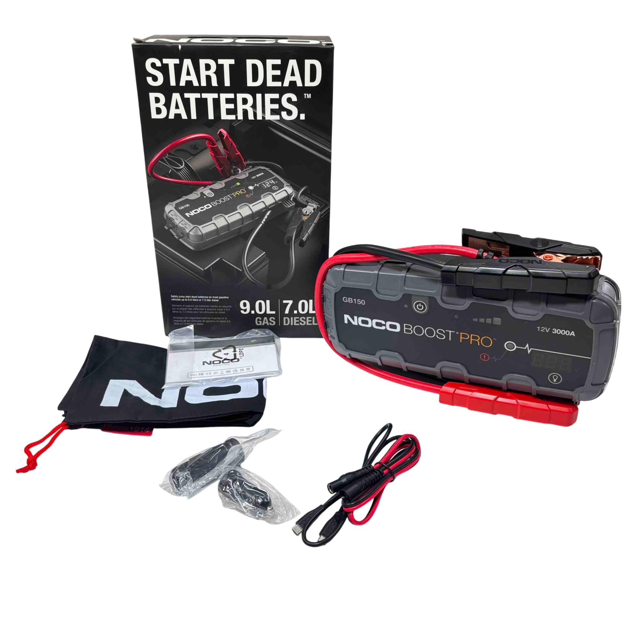 The NOCO Boost Pro GB150 is a powerful 12V jump starter designed for heavy-duty use on gas engines up to 9.0L and diesel engines up to 7.0L. With 3000 amps of peak current, its ideal for quickly reviving dead batteries in trucks, cars, boats, and more. Compact, lightweight, and easy to use, it features spark-proof technology and reverse polarity protection to ensure safety—making it the ultimate roadside companion.