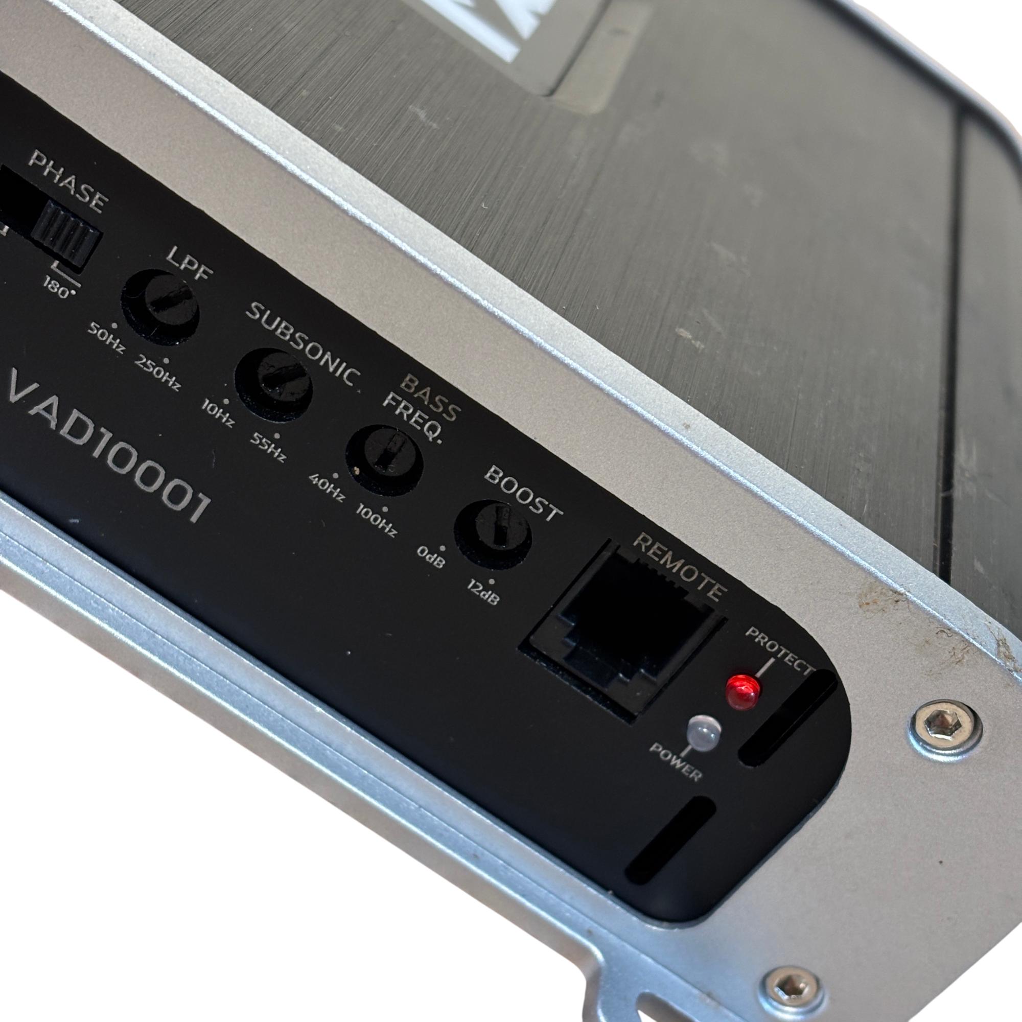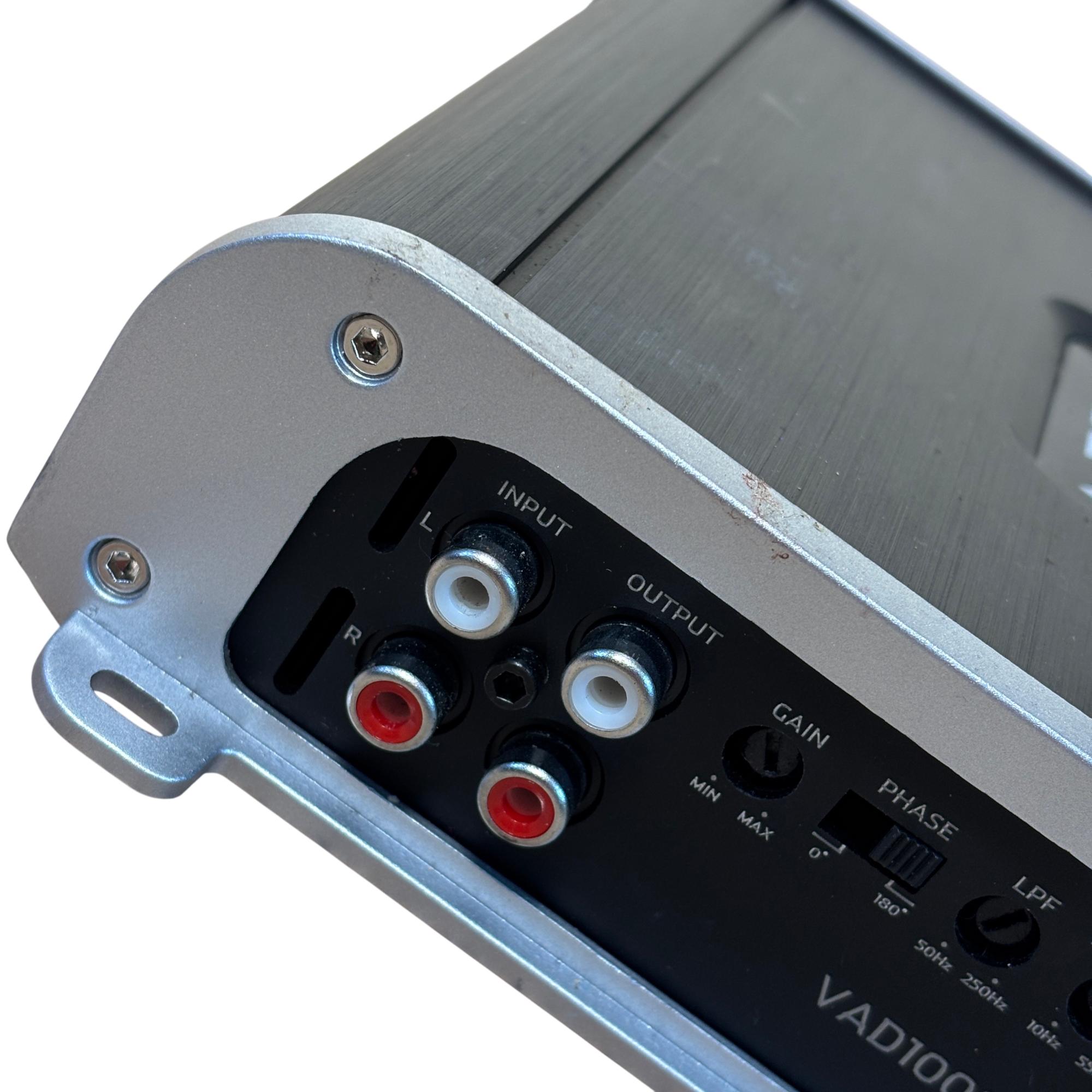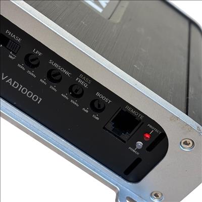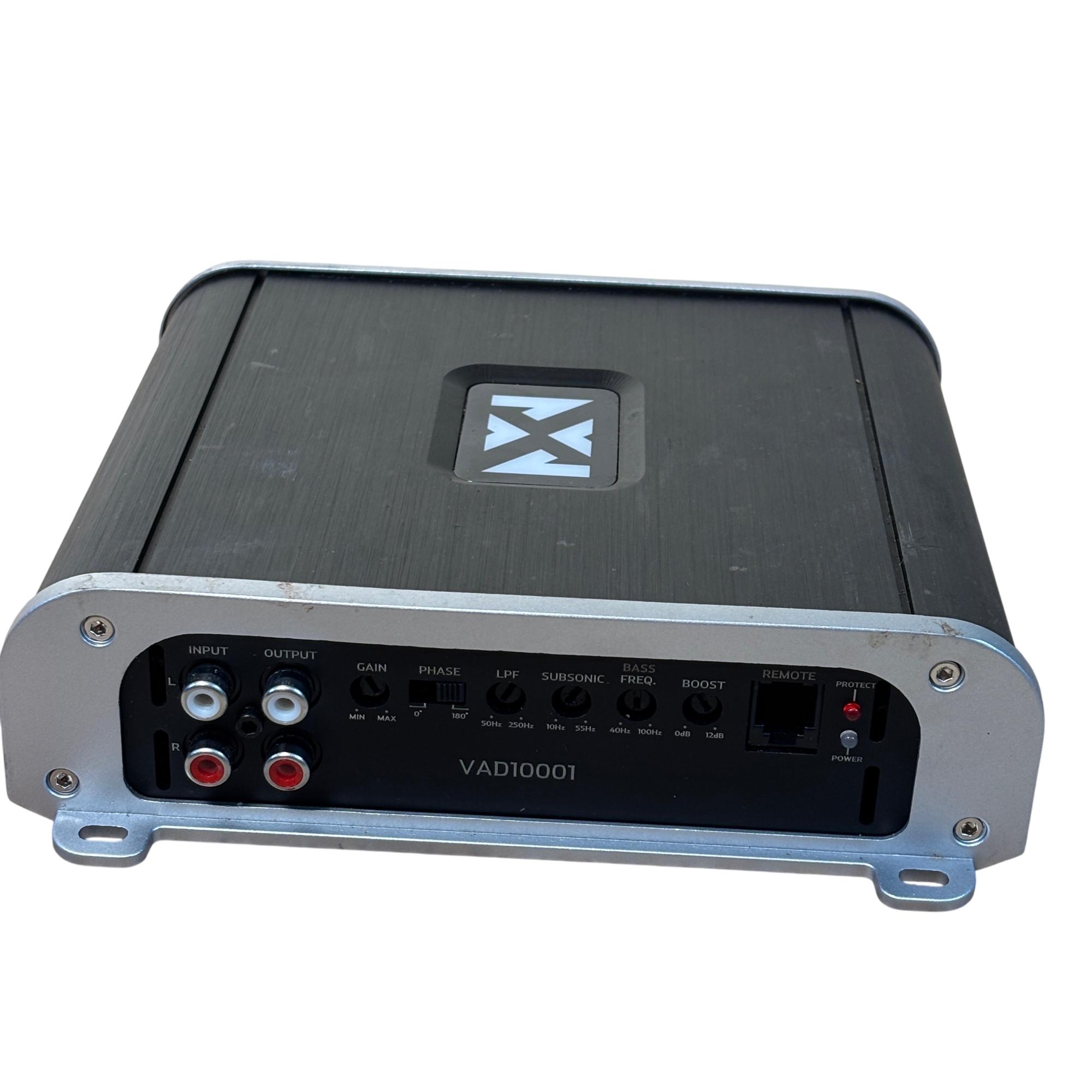 NVX VAD10001 1000W RMS V-Series Class-D Monoblock Car Amplifier delivers powerful and efficient audio performance with a robust 1000-watt output. This compact amplifier features advanced control options including gain, phase, low-pass filter, and subsonic filter adjustments to fine-tune your car audio system for optimal sound quality. Designed with a sleek black casing and silver trim, it ensures both high power handling and a stylish, durable form factor perfect for car audio enthusiasts.