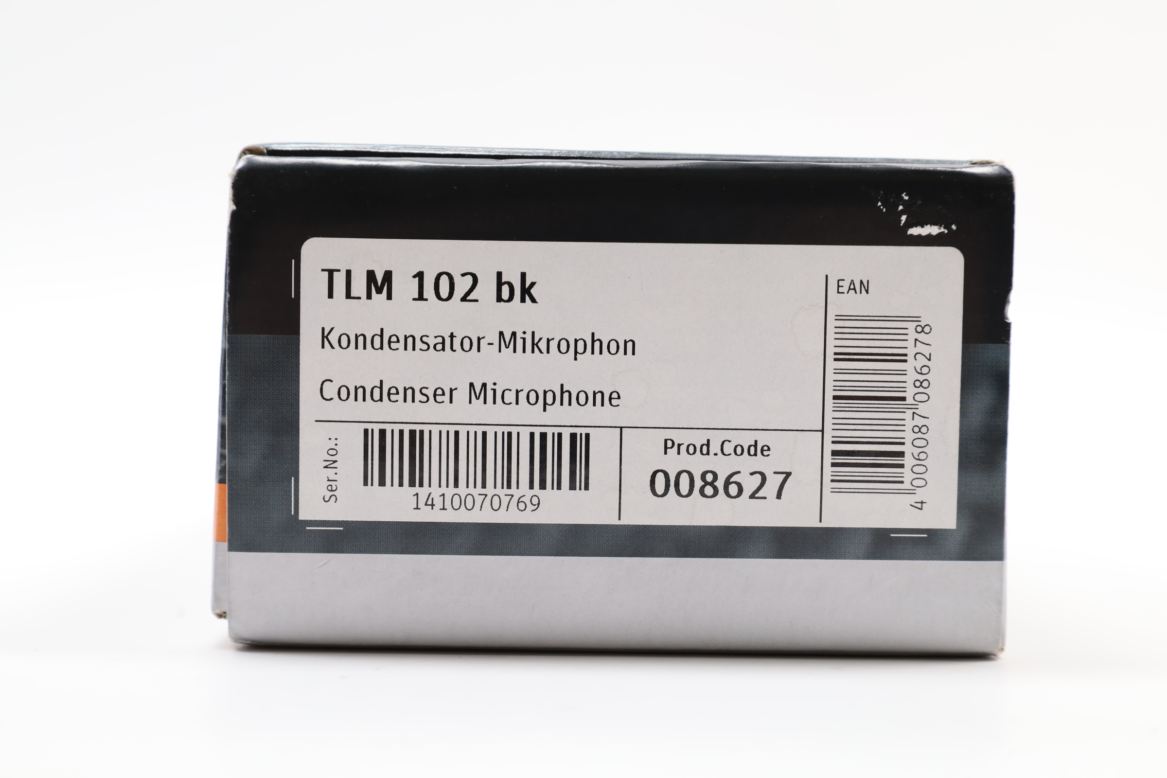 Brings renowned Neumann sound quality to a price point that's inclusive to home producers, working musicians, and independent singer-songwriters. The capsule's high SPL rating of 144 dB permits the recording of percussion, drums, amplifiers, and other loud sound sources clearly and without distortion. With its 8 to 12 kHz treble boost, the TLM 102 imparts a silky vocal presence while avoiding pronounced sibilance. The mic utilizes a cardioid polar pattern to provide directional sound pickup in front of the capsule and strong rejection behavior behind it, yielding less background noise than most other polar responses.