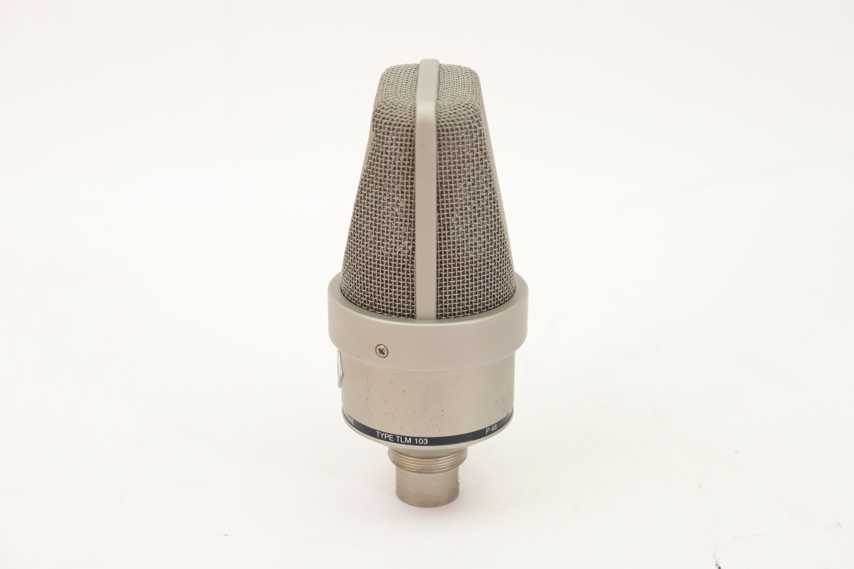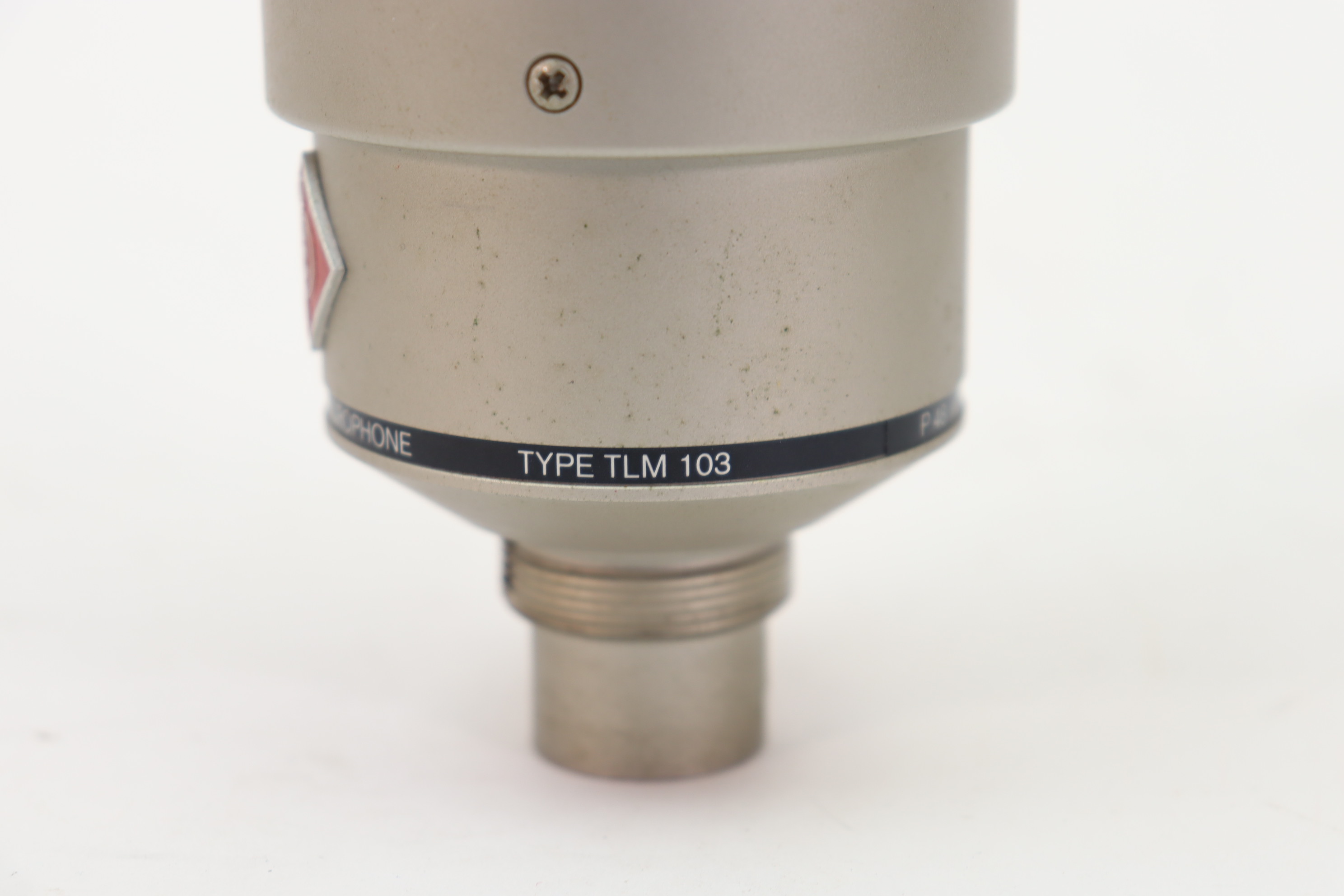 The Neumann TLM 103 Anniversary large-diaphragm cardioid condenser mic boasts a capsule drawn from the U 87 and transformerless circuitry - not to mention classic Neumann sound! The TLM 103 Anniversary is a great mic for any pro or project studio use and, due to its minimal self-noise, it's been used for classical recordings with a wide dynamic range, sampling (especially for very low amplitude sources), and Foley work. This mic is also robust enough for the live stage.