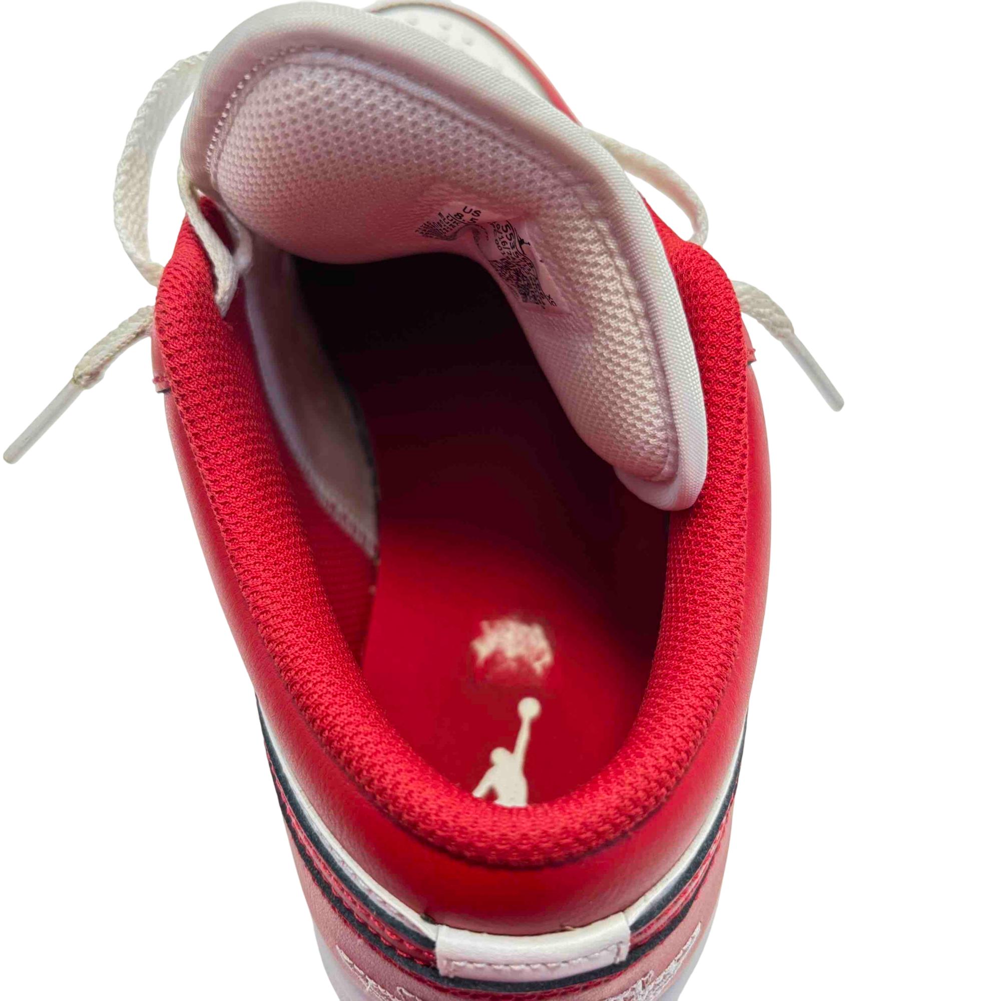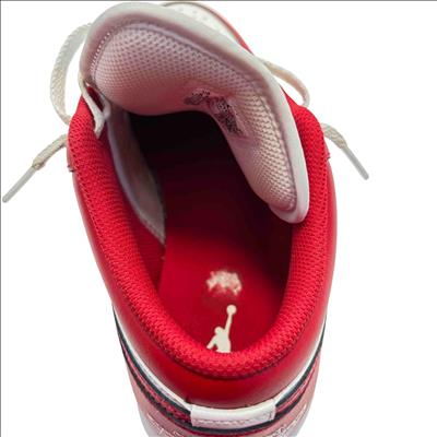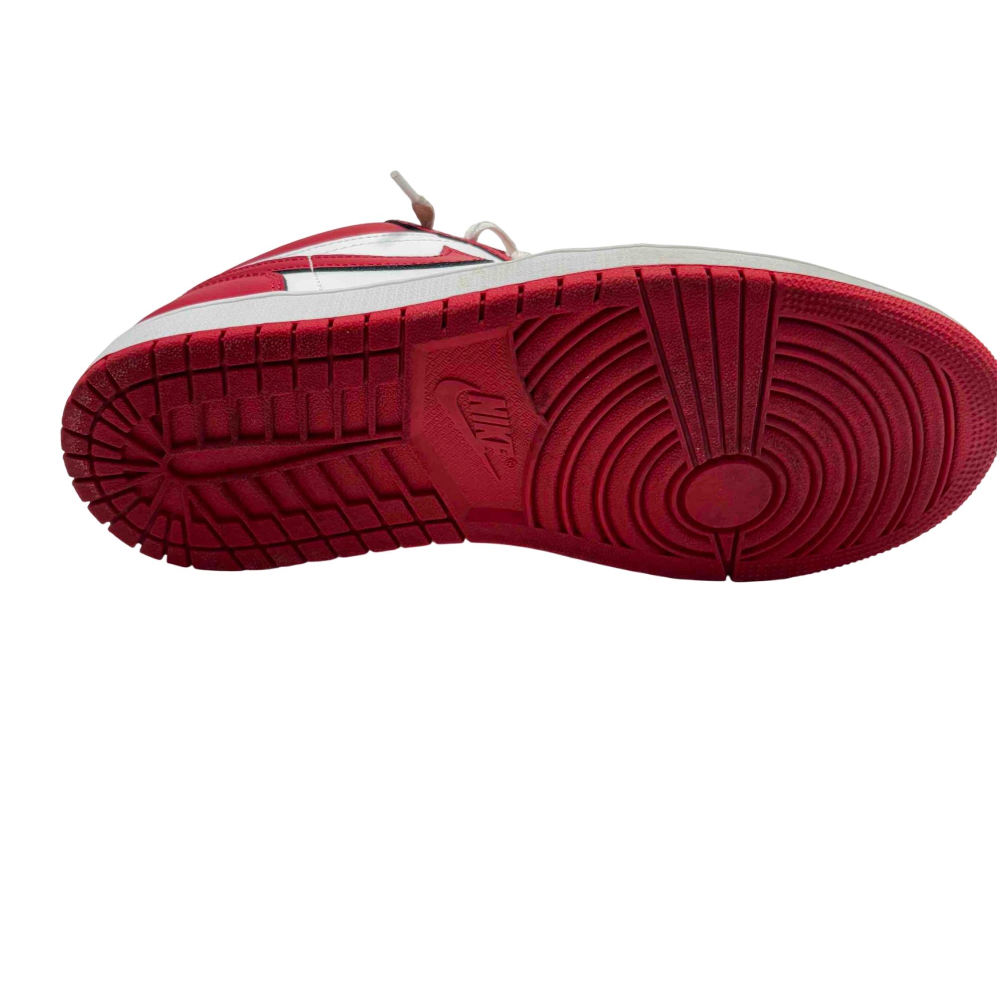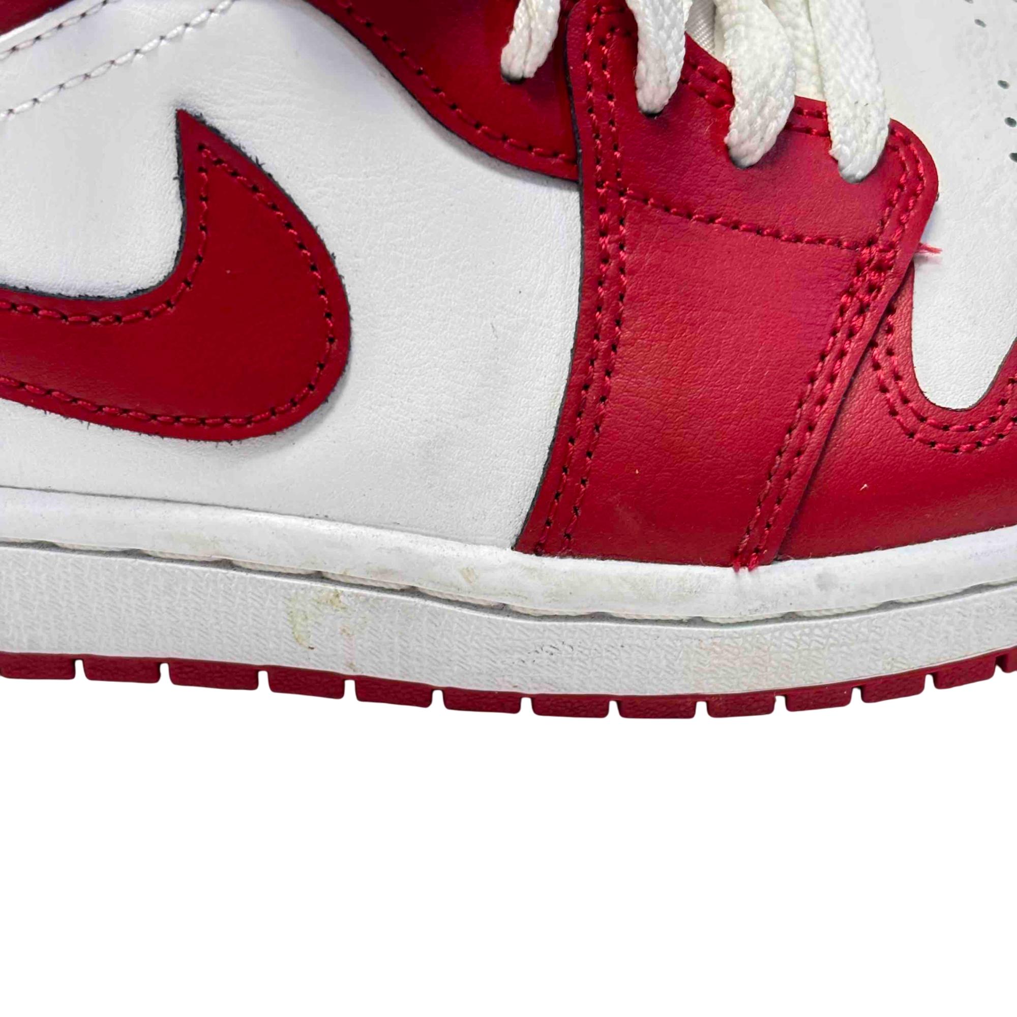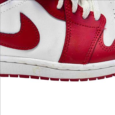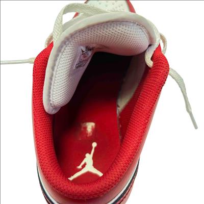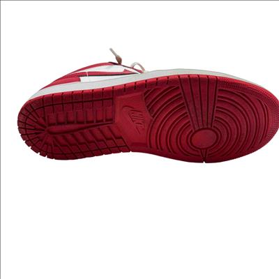 Nike Air Jordan 1 Low Gym Red/White 553558-166 features a classic low-top silhouette with a striking red and white leather upper. These iconic sneakers showcase a durable rubber sole with a circular traction pattern, perfect for basketball and casual wear. Designed for style and performance, they combine vibrant Gym Red accents with clean white tones for a timeless look.