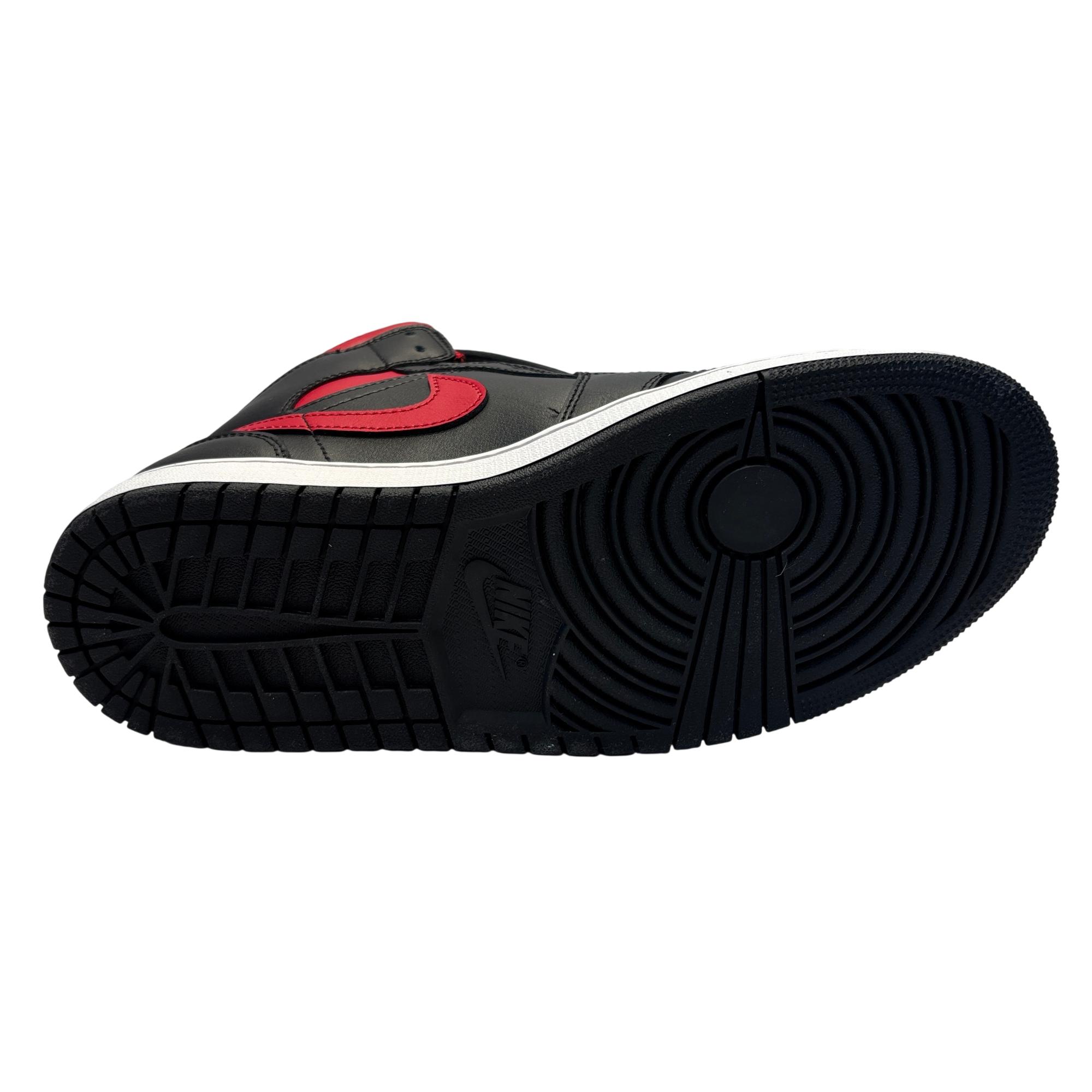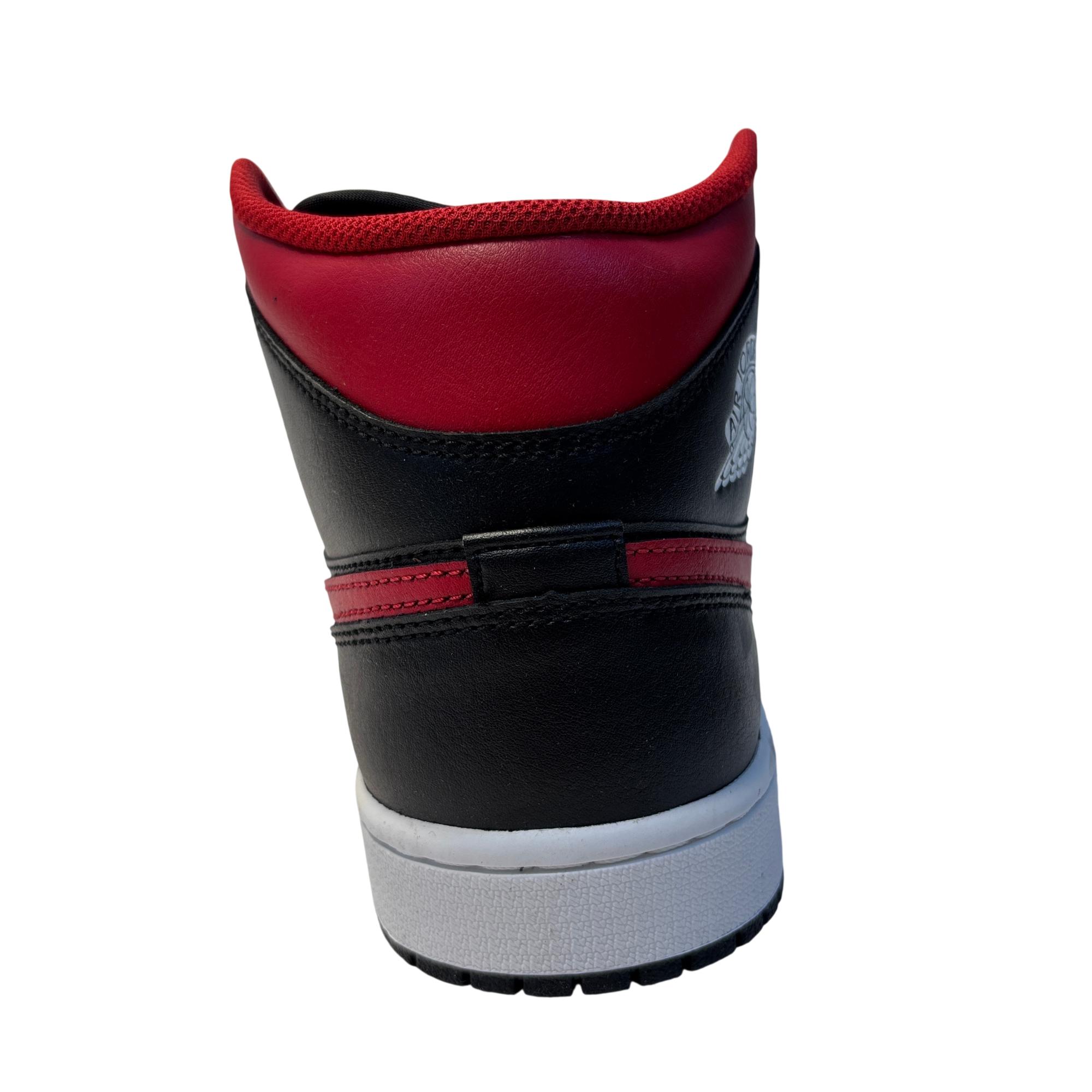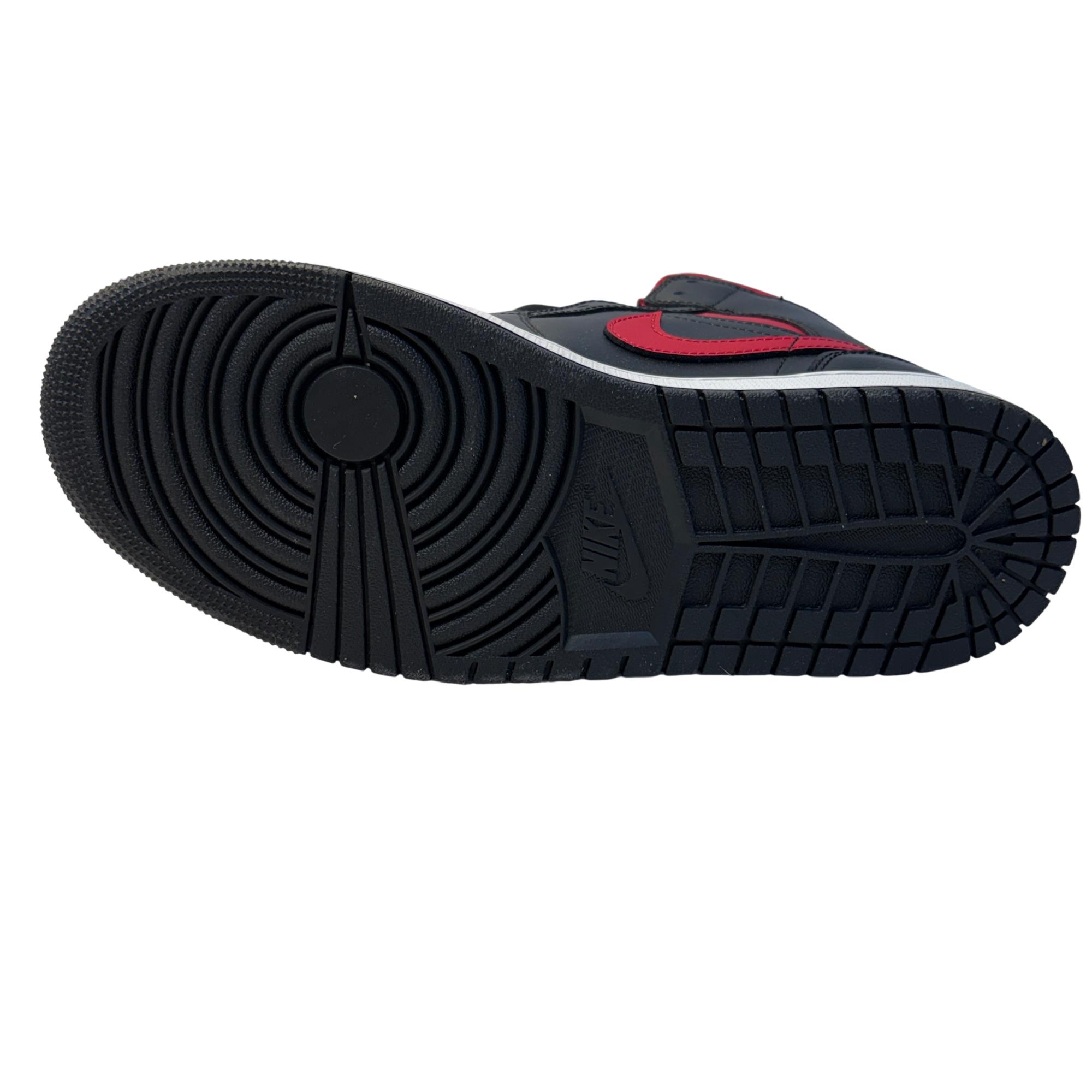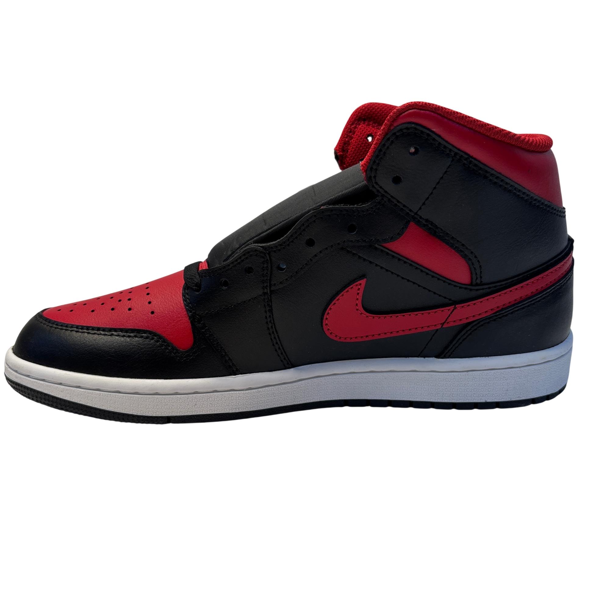 The Nike Air Jordan 1 Mid Bred Twist features a distinctive design that combines red and black leather with subtle white accents, creating a striking contrast. This midsize sneaker offers a classic silhouette with premium materials for durability and style, making it a versatile choice for both casual wear and athletic use.