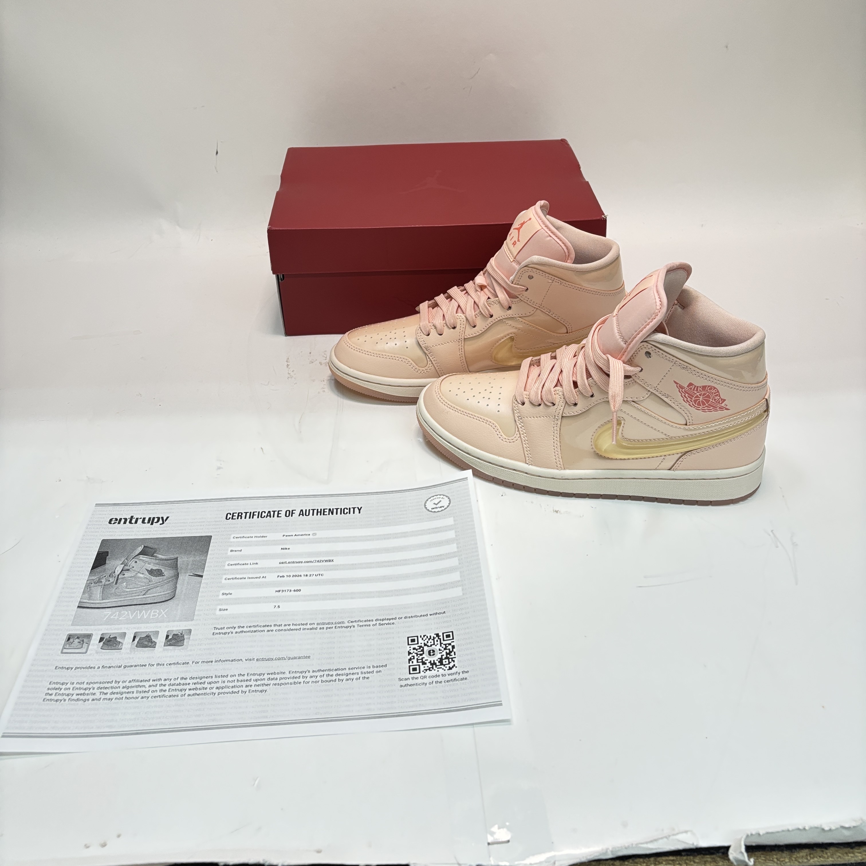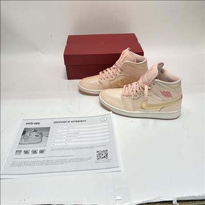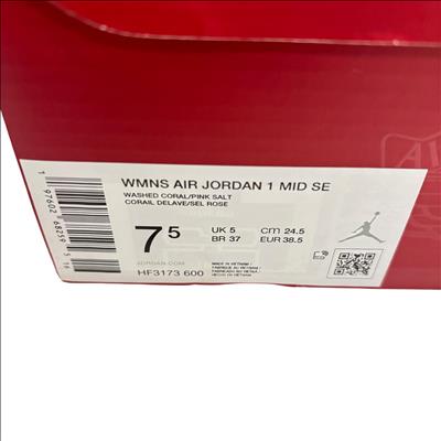 Nike WMNS Air Jordan 1 Mid SE Washed Coral/Pink Salt (HF3173-600) features a stylish mid-top silhouette with a washed coral and pink salt colorway designed for a vibrant, feminine look. This womens sneaker is crafted in Vietnam and showcases premium materials for durable wear and authentic Jordan branding. Available in size 7.5, it combines classic Air Jordan design elements with modern color accents perfect for both casual and athletic use.