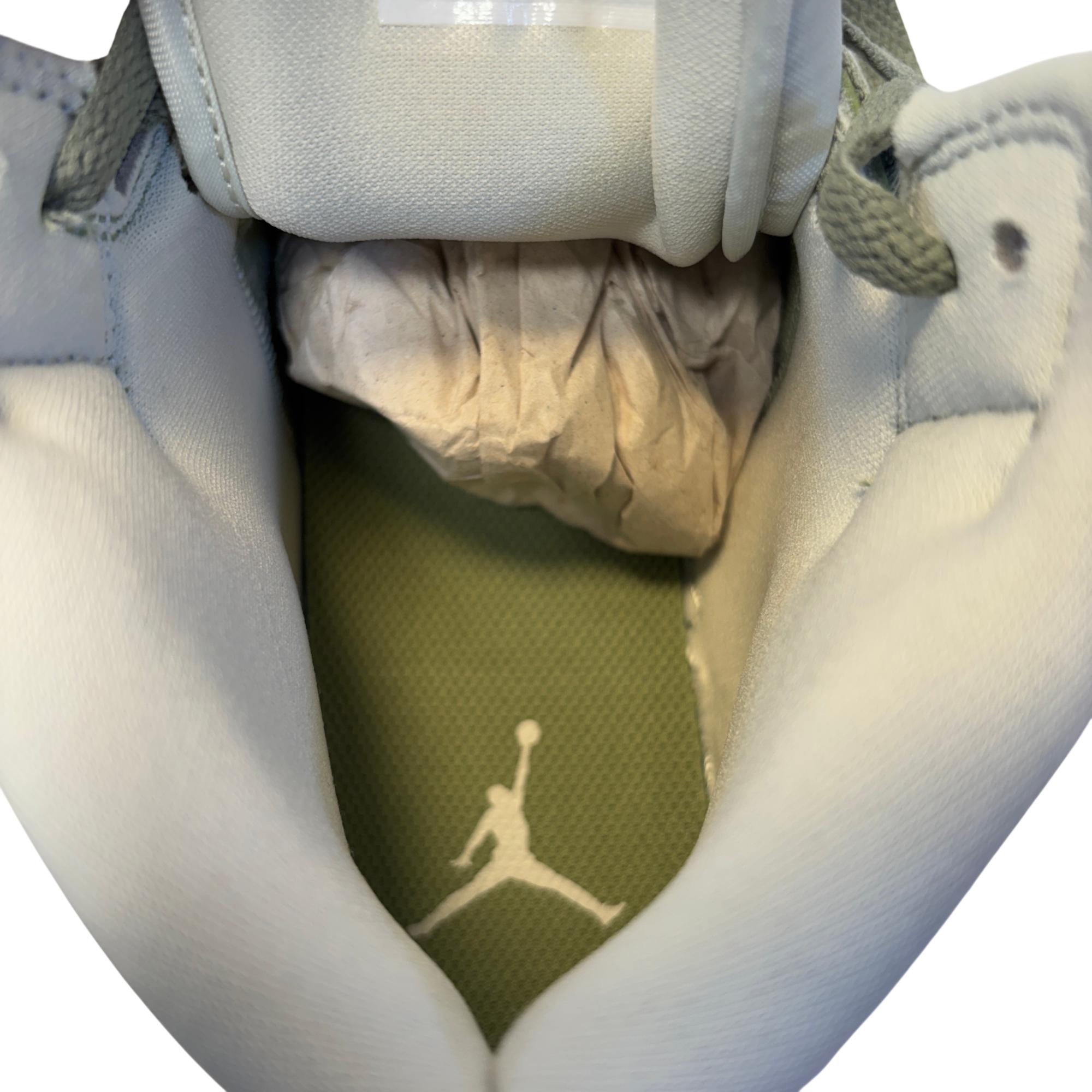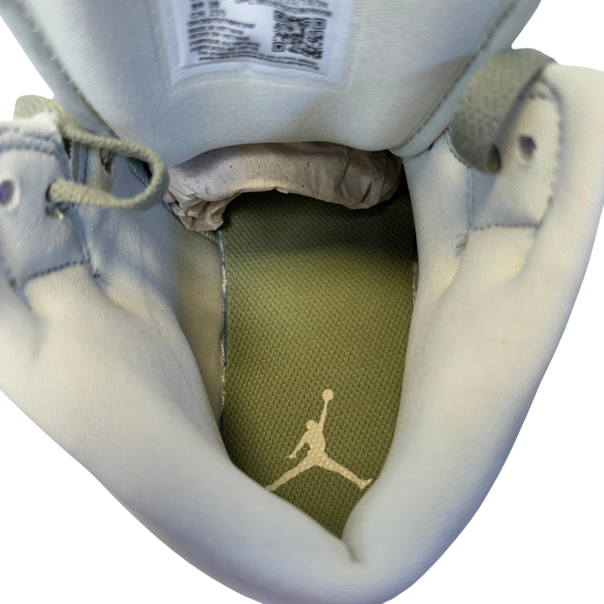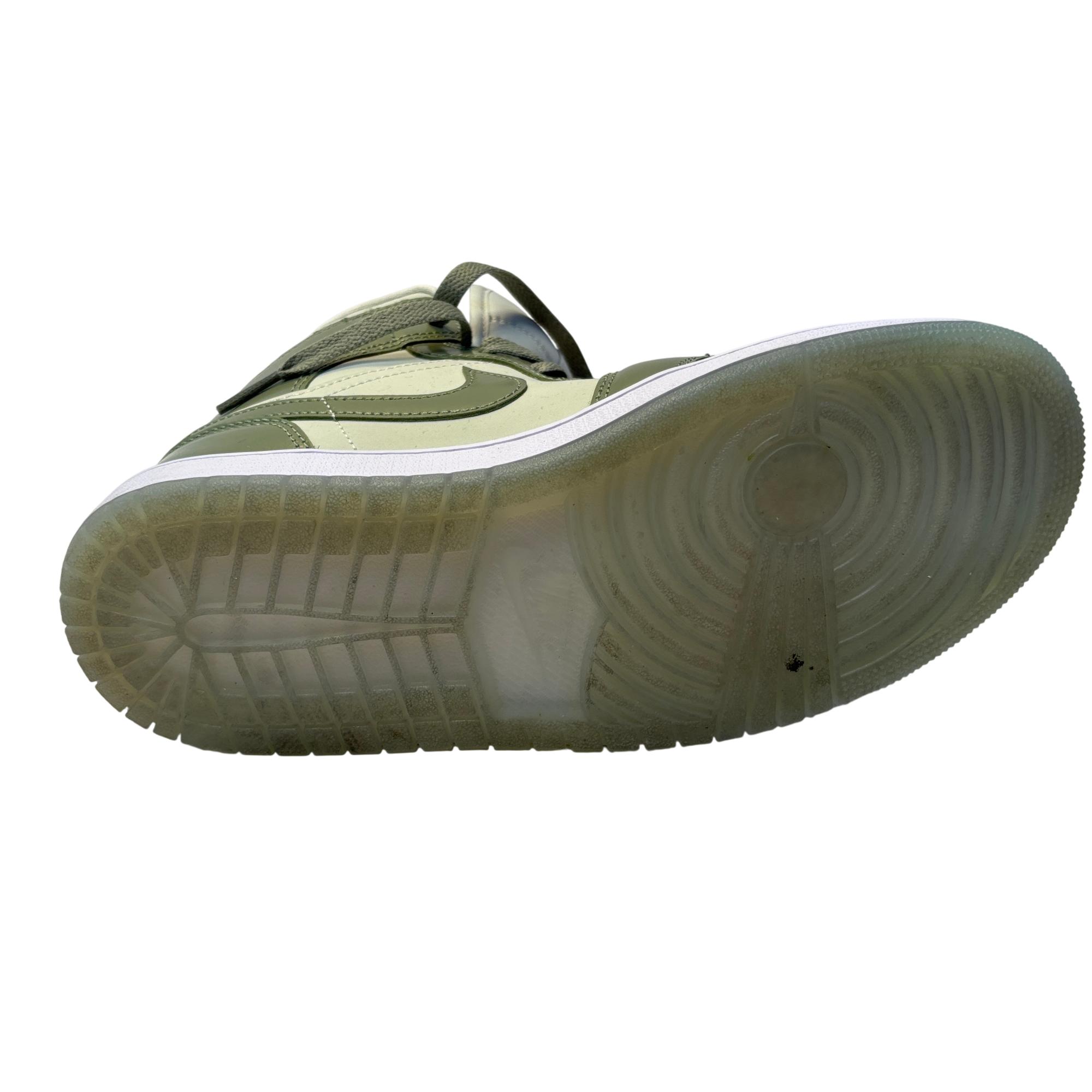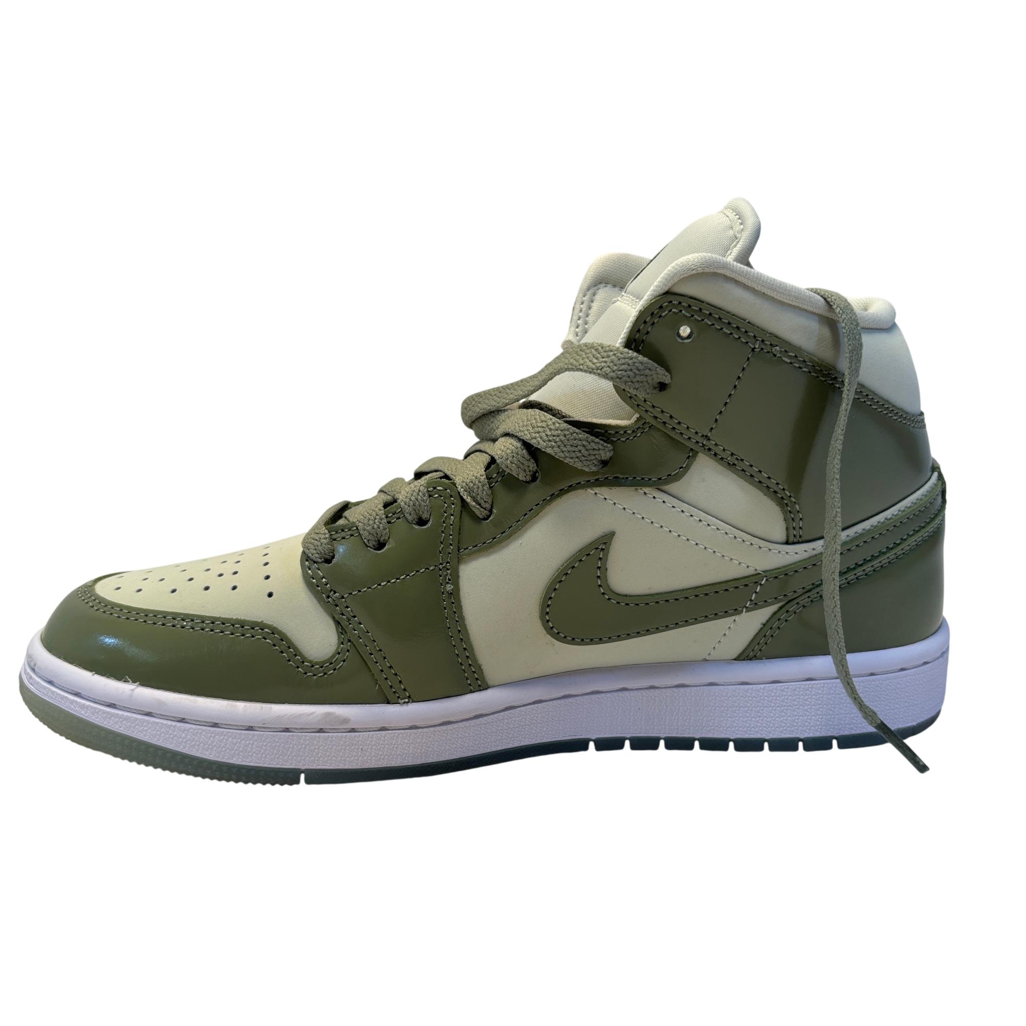 The Nike Air Jordan 1 Mid SE Sea Glass/Oil Green/Metallic Silver features a premium leather upper with a stylish combination of sea glass green, oil green, and metallic silver accents. Designed with a mid-top silhouette, these womens sneakers blend iconic basketball heritage with modern streetwear appeal, making them ideal for both casual and athletic use.