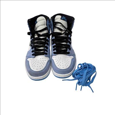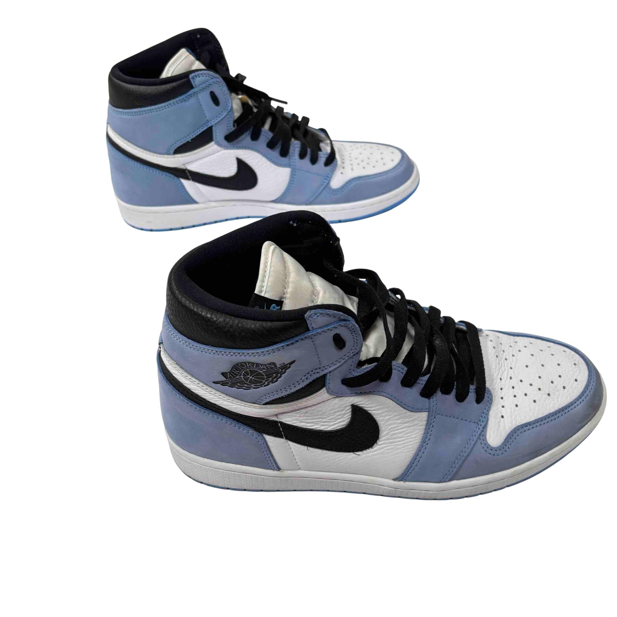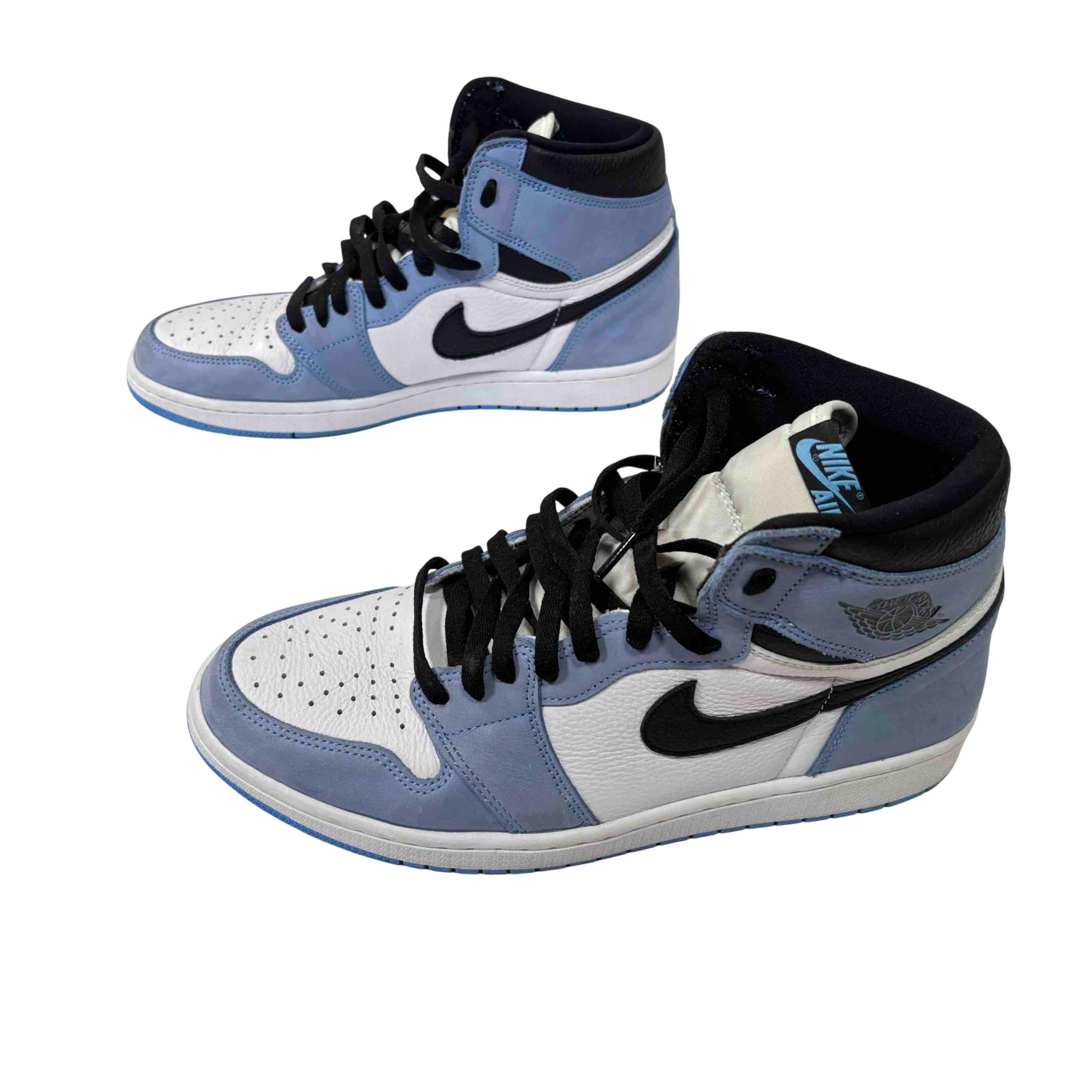 Step up your sneaker game with the coveted Nike Air Jordan 1 Retro High OG University Blue. Featuring premium leather and suede overlays in a classic white and University Blue colorway, these authentic Jordans pay homage to Michael Jordans alma mater. Perfect for collectors and streetwear enthusiasts alike, this pair includes extra blue laces and iconic Nike Air branding for signature style.