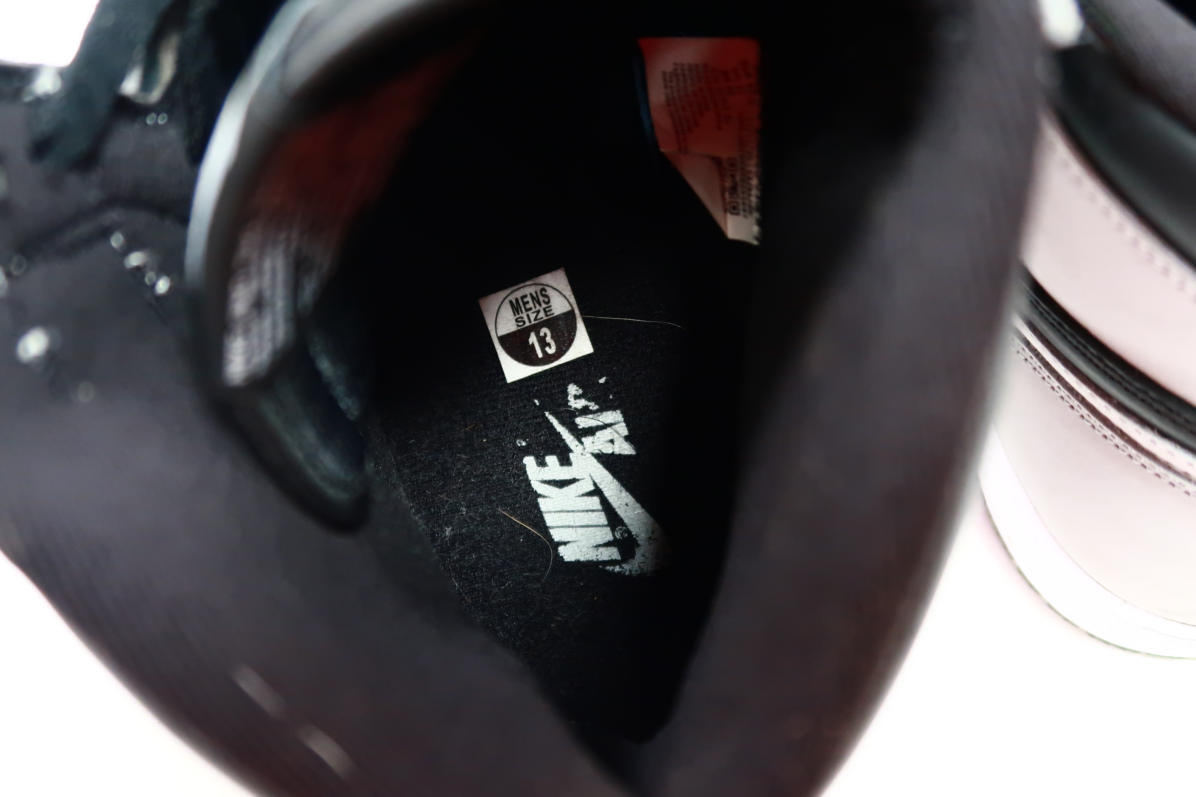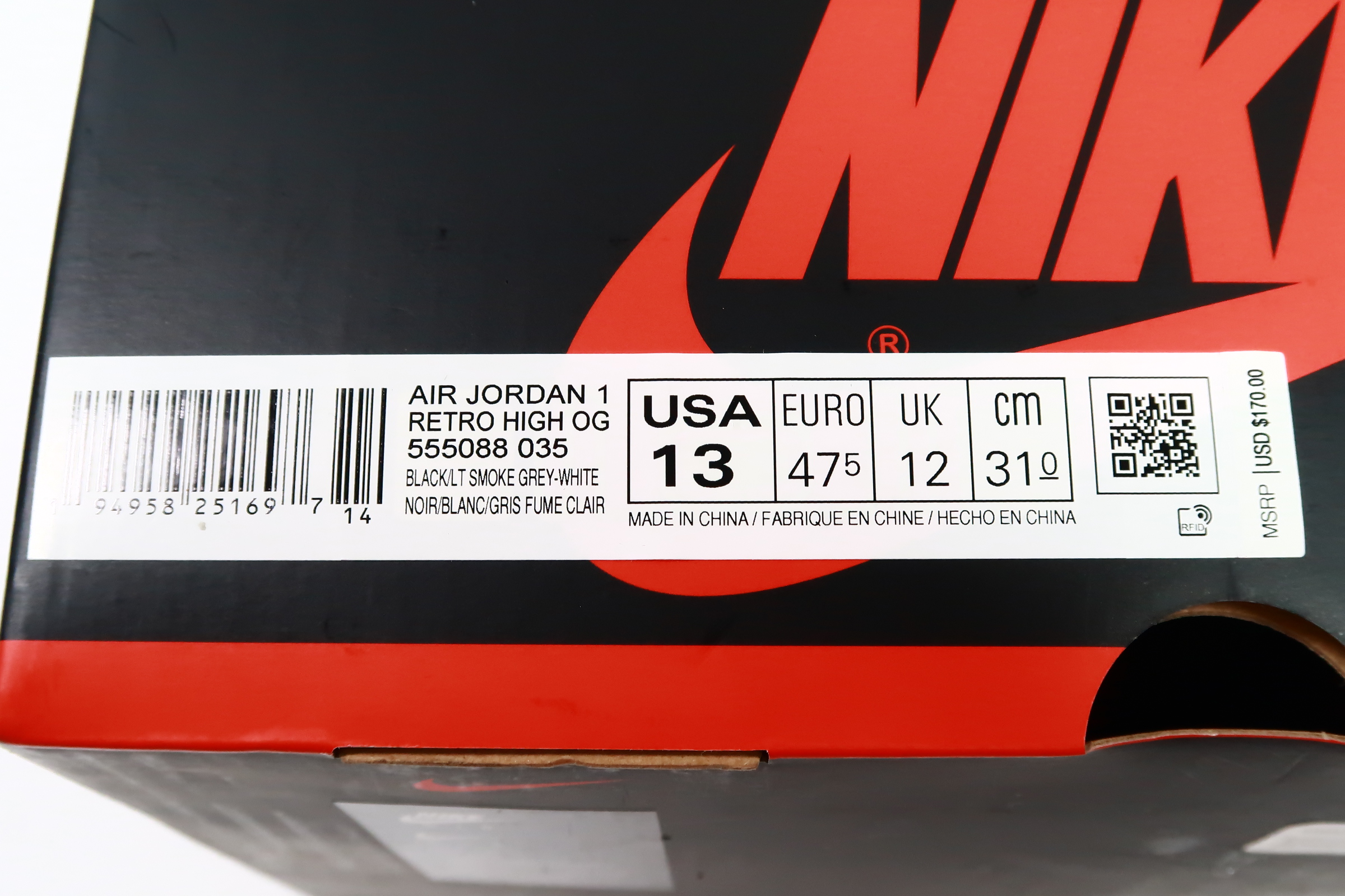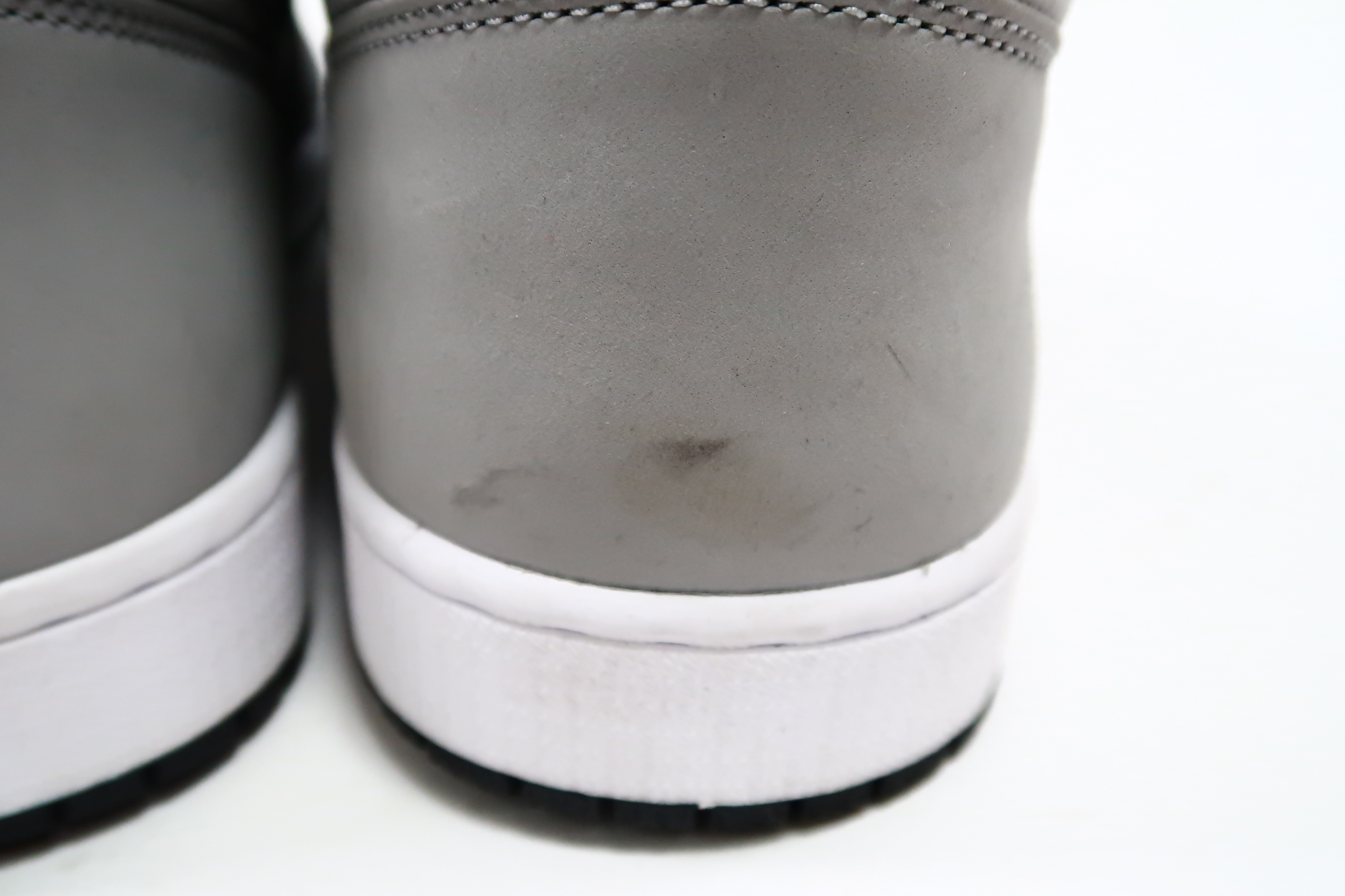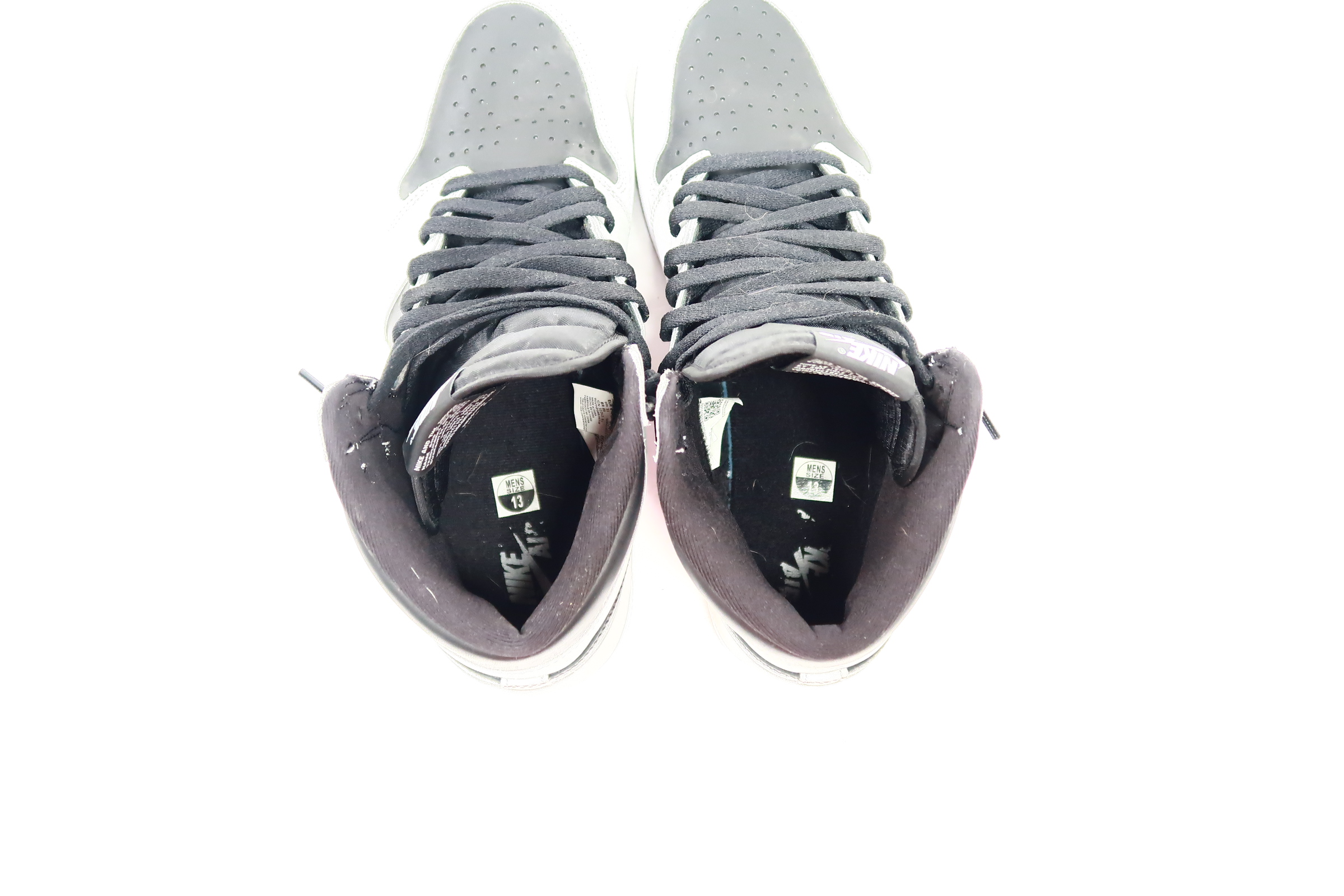 The upper of the Air Jordan 1 Shadow 2.0 is made of a black leather base with Light Smoke Grey overlays. A classic Wings logo appears on the lateral ankle wrap while a woven Nike Air label is stitched atop the tongue to complete the look.