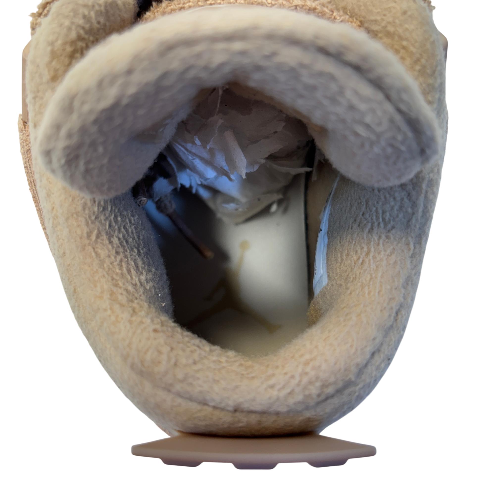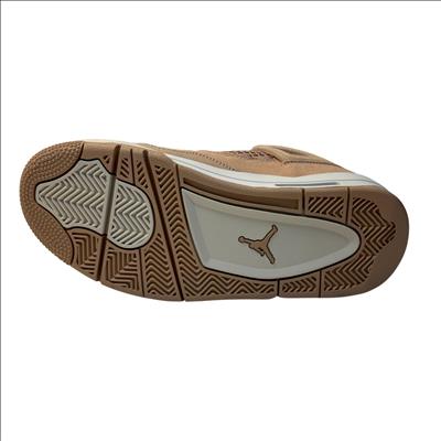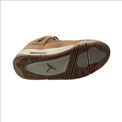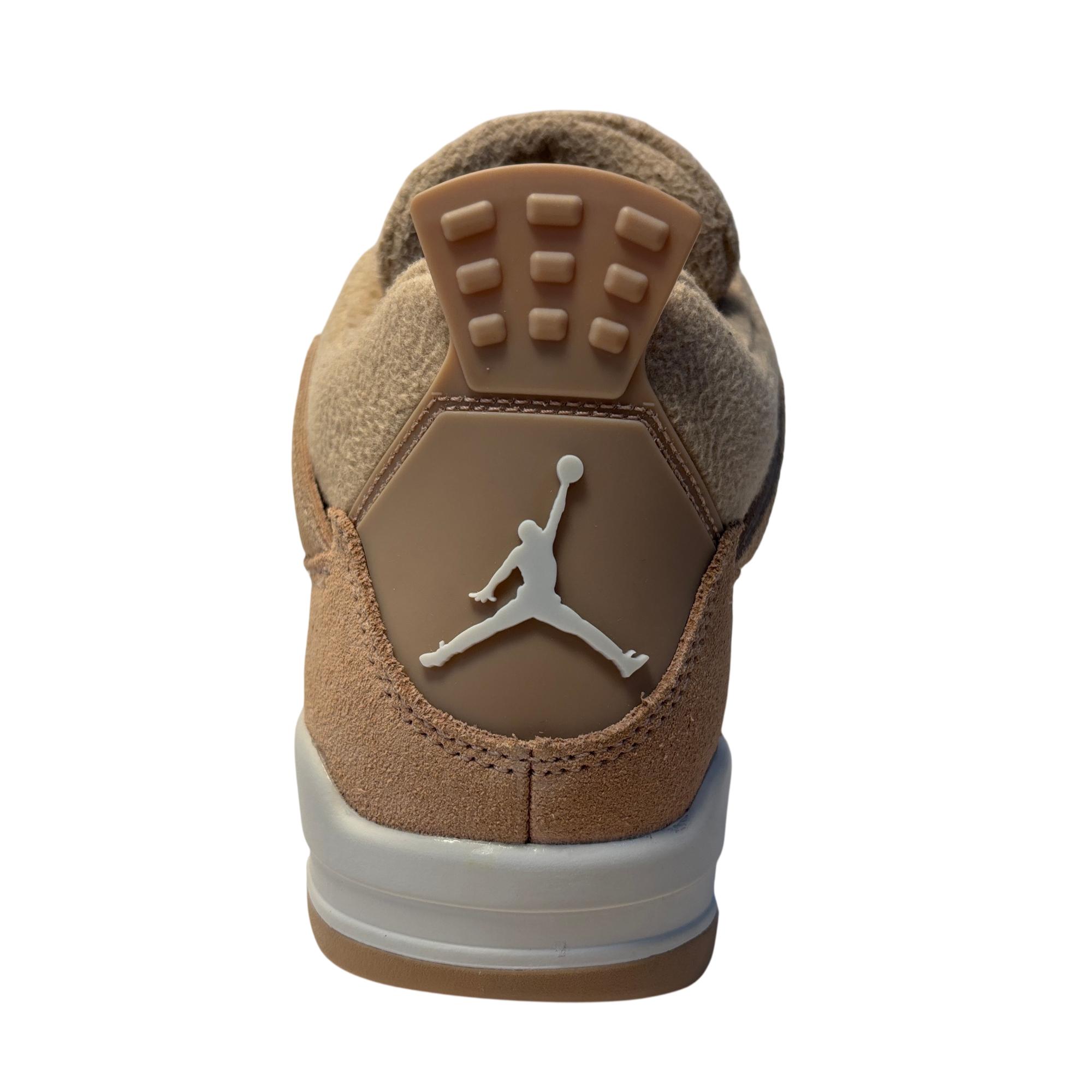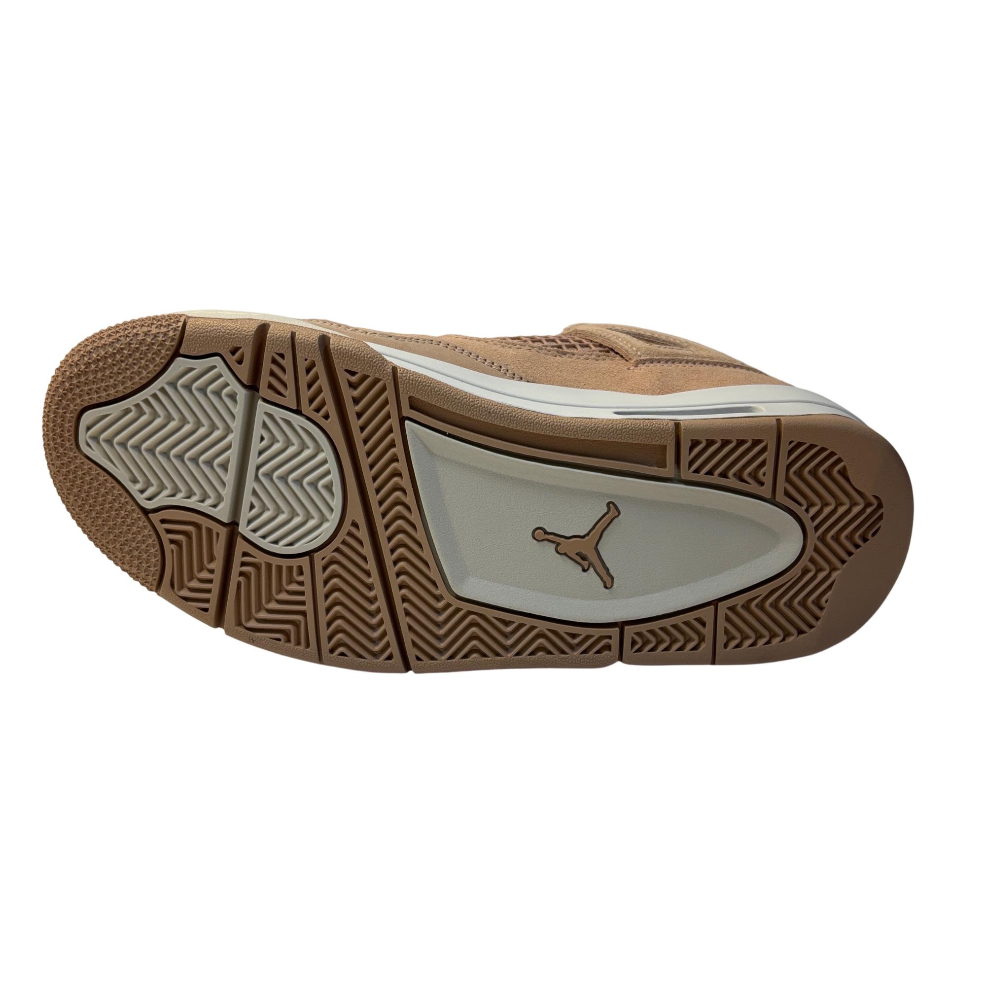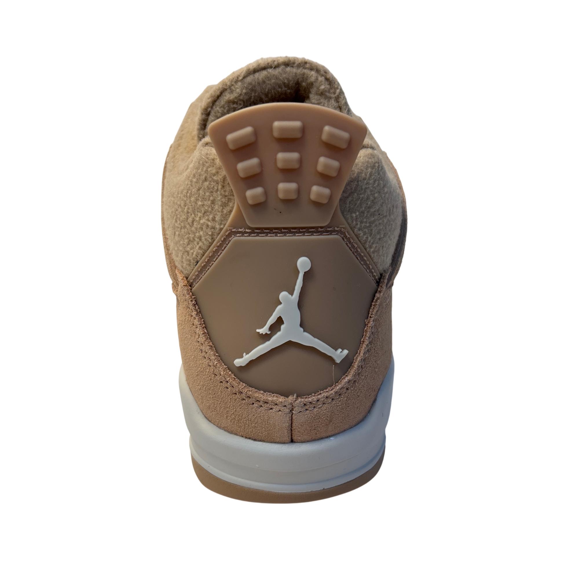 The Nike Air Jordan 4 Retro Cozy Girl sneakers feature a stylish beige colorway combining rubber, mesh, and fleece materials for a comfortable and breathable fit. These sneakers showcase a modern design inspired by classic basketball footwear, offering versatile performance for casual and athletic wear.