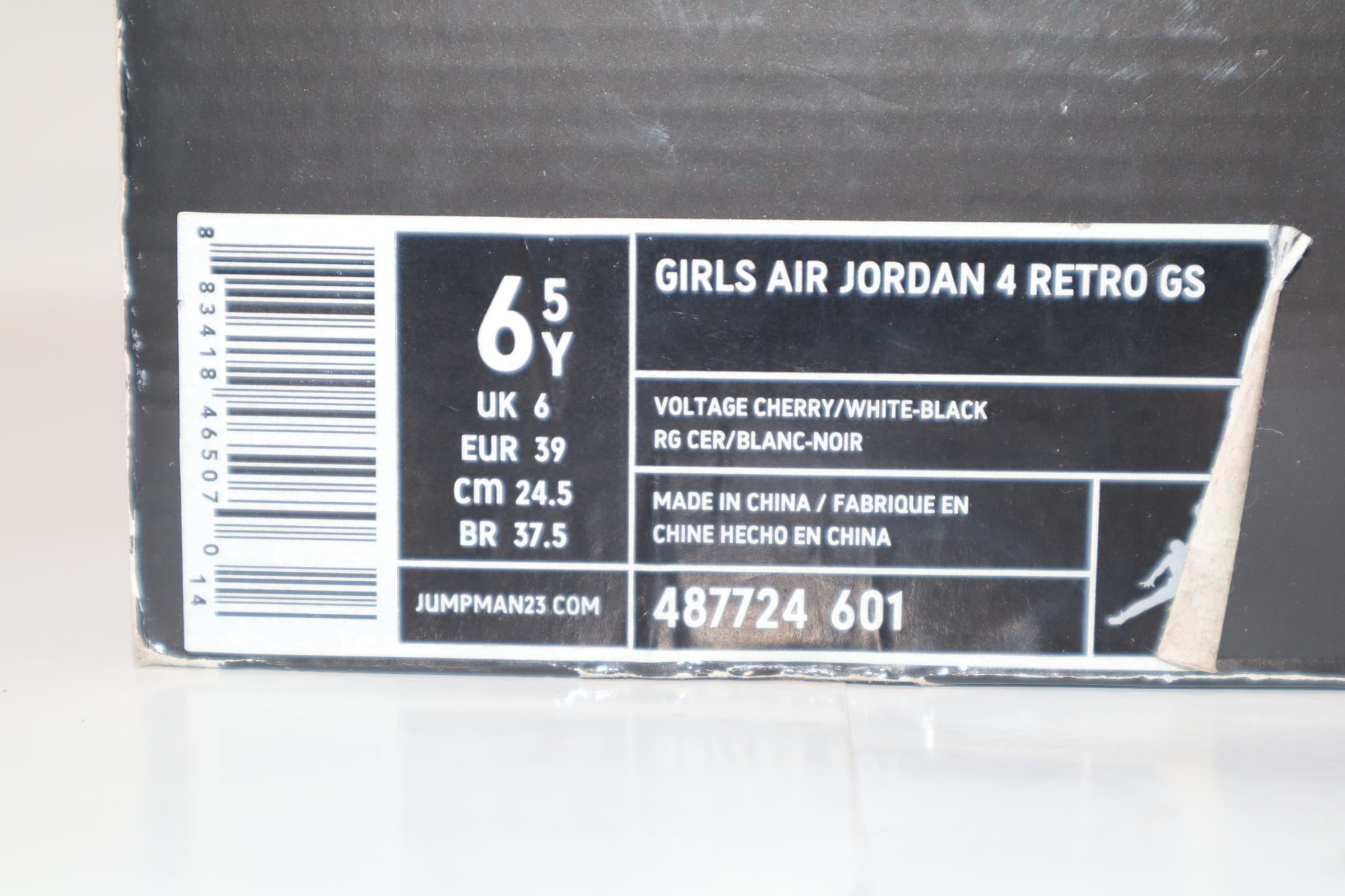 Nike Air Jordan 4 Retro GS 587724 601 Voltage Cherry/White-Black Girl's Sneakers Size 6.5