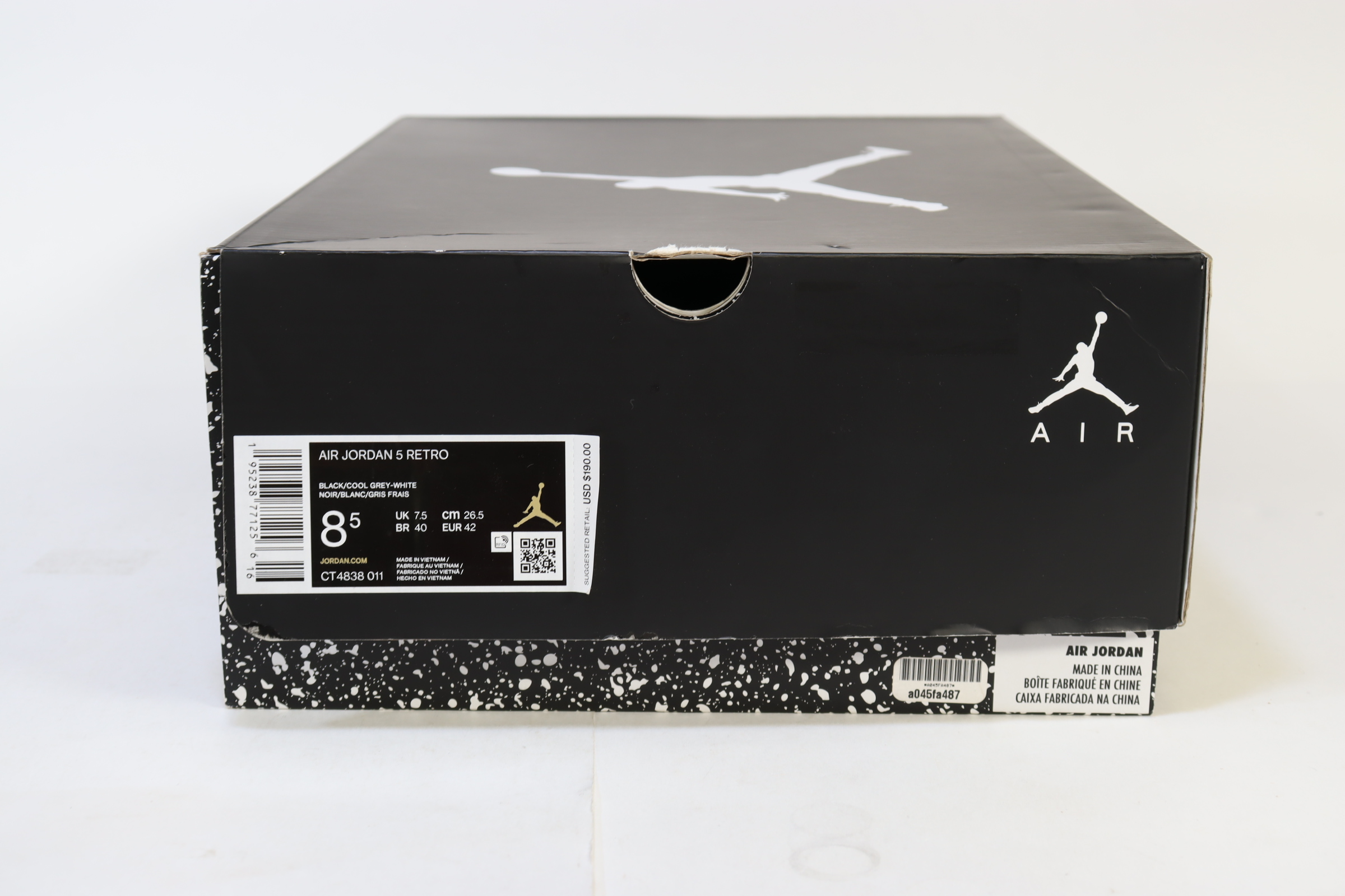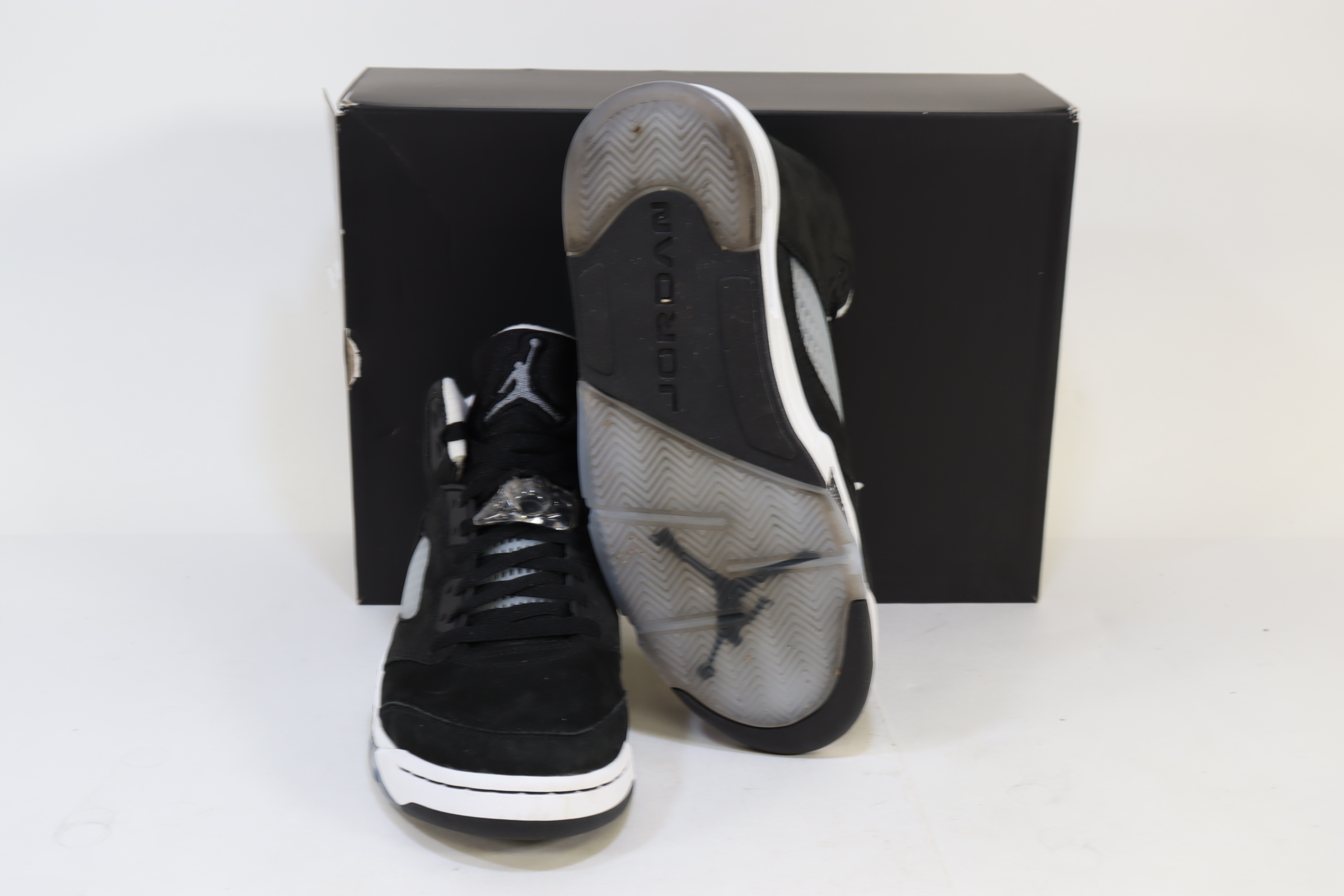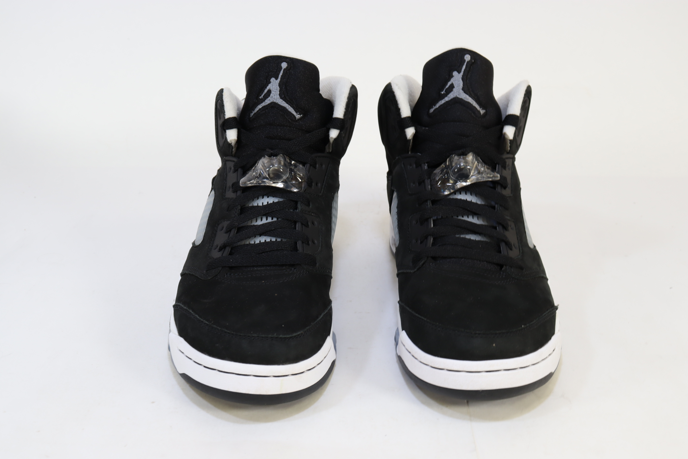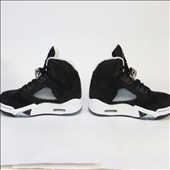 An all-black suede upper and between a white midsole, a black and white speckled shark-tooth design along the midsole resembles the night sky and its stars. An icy outsole completes the look, recalling the sneaker's OG place in history—the Air Jordan 5 was the first Jordan Brand signature sneaker to feature a translucent sole.