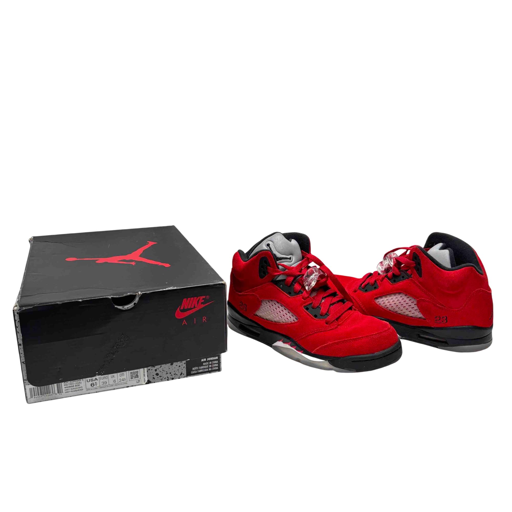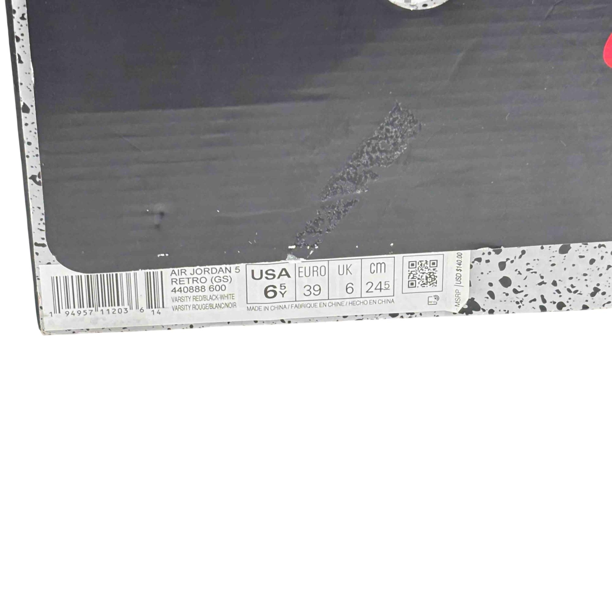Stand out with the iconic Nike Air Jordan 5 Retro GS in Varsity Red, crafted with premium suede and featuring signature Jordan details like the visible Air sole and translucent outsole. The Varsity Red/Black-White colorway combines bold style with legendary comfort, making it a must-have for sneaker enthusiasts and collectors alike. Don't miss the chance to own a classic piece of sneaker history that delivers both looks and performance.