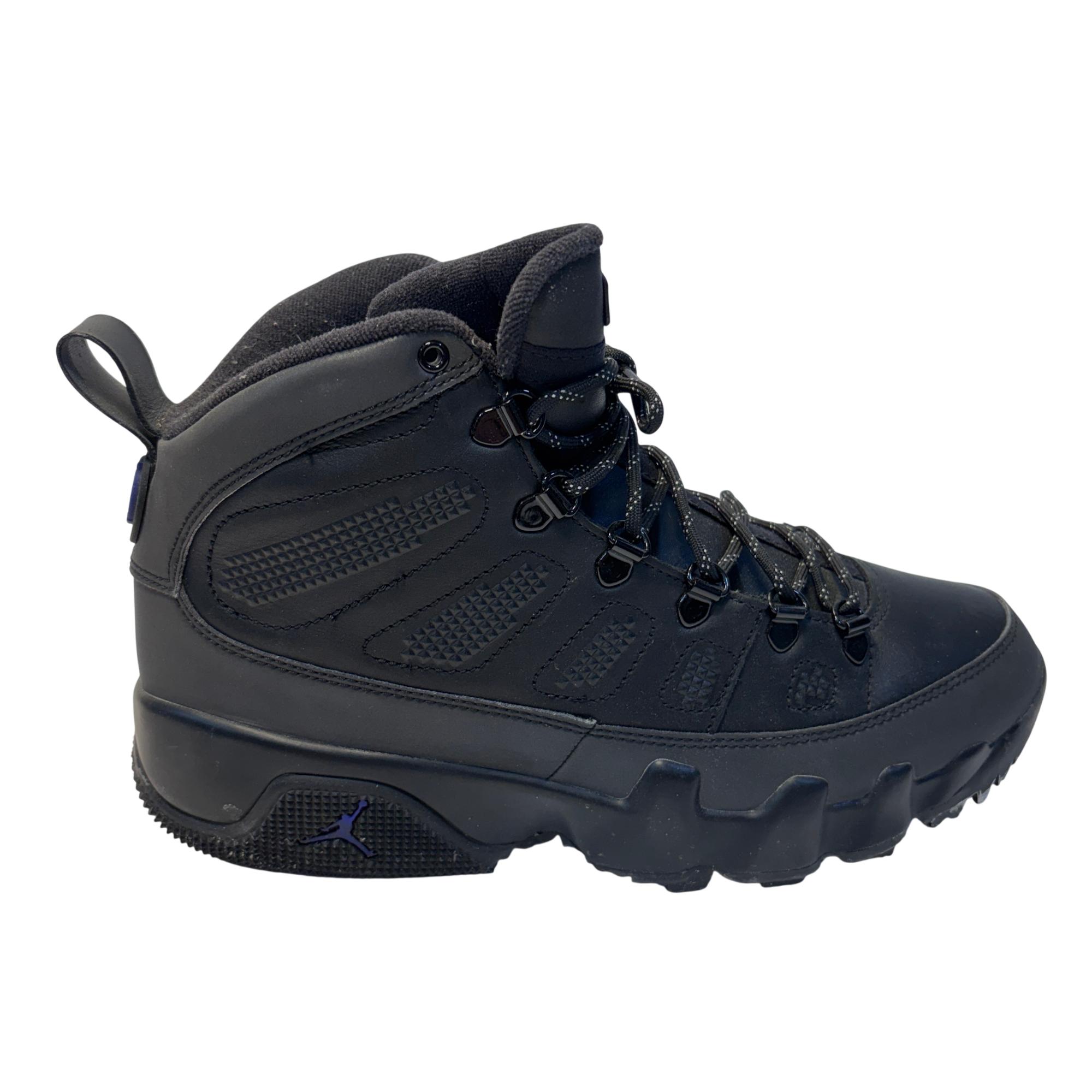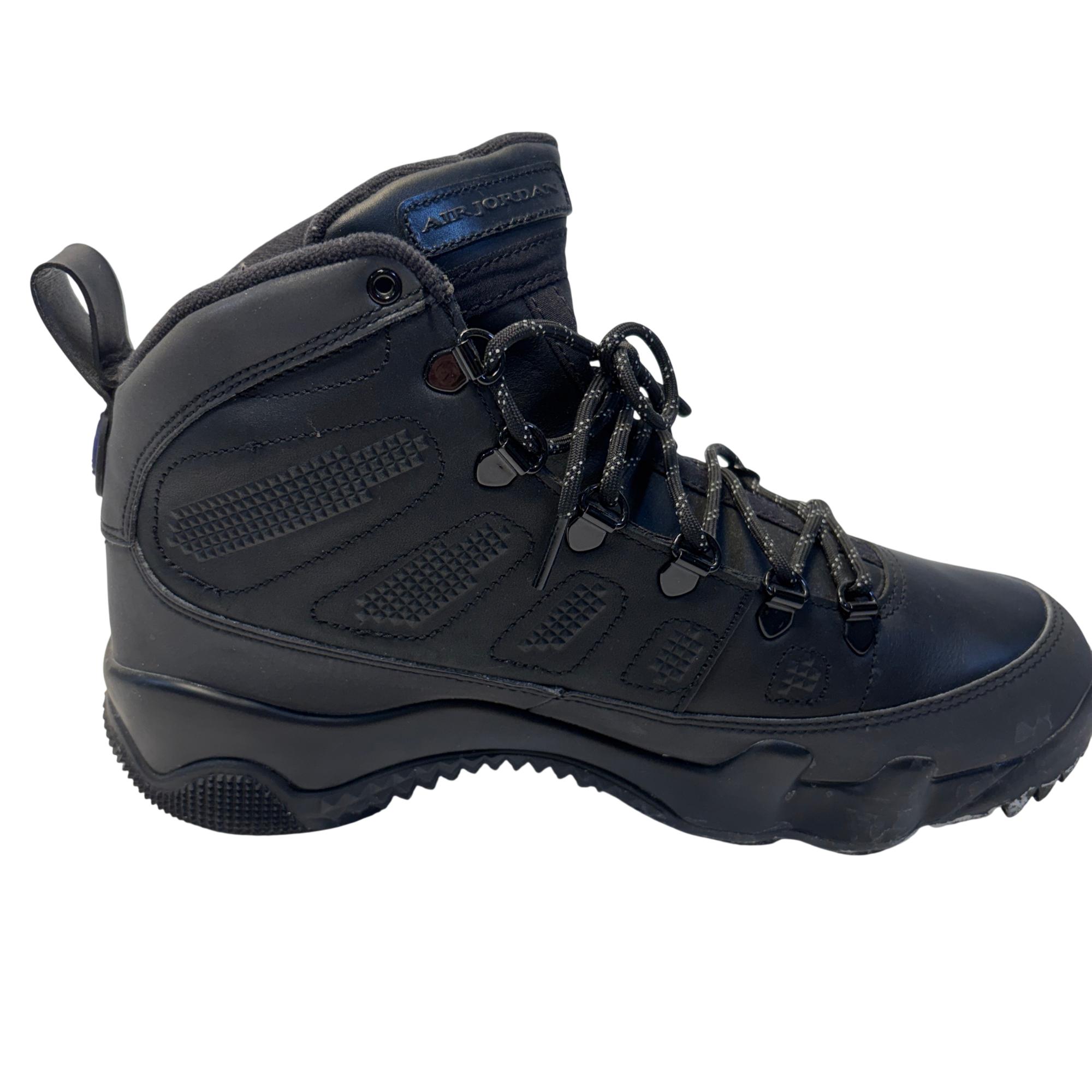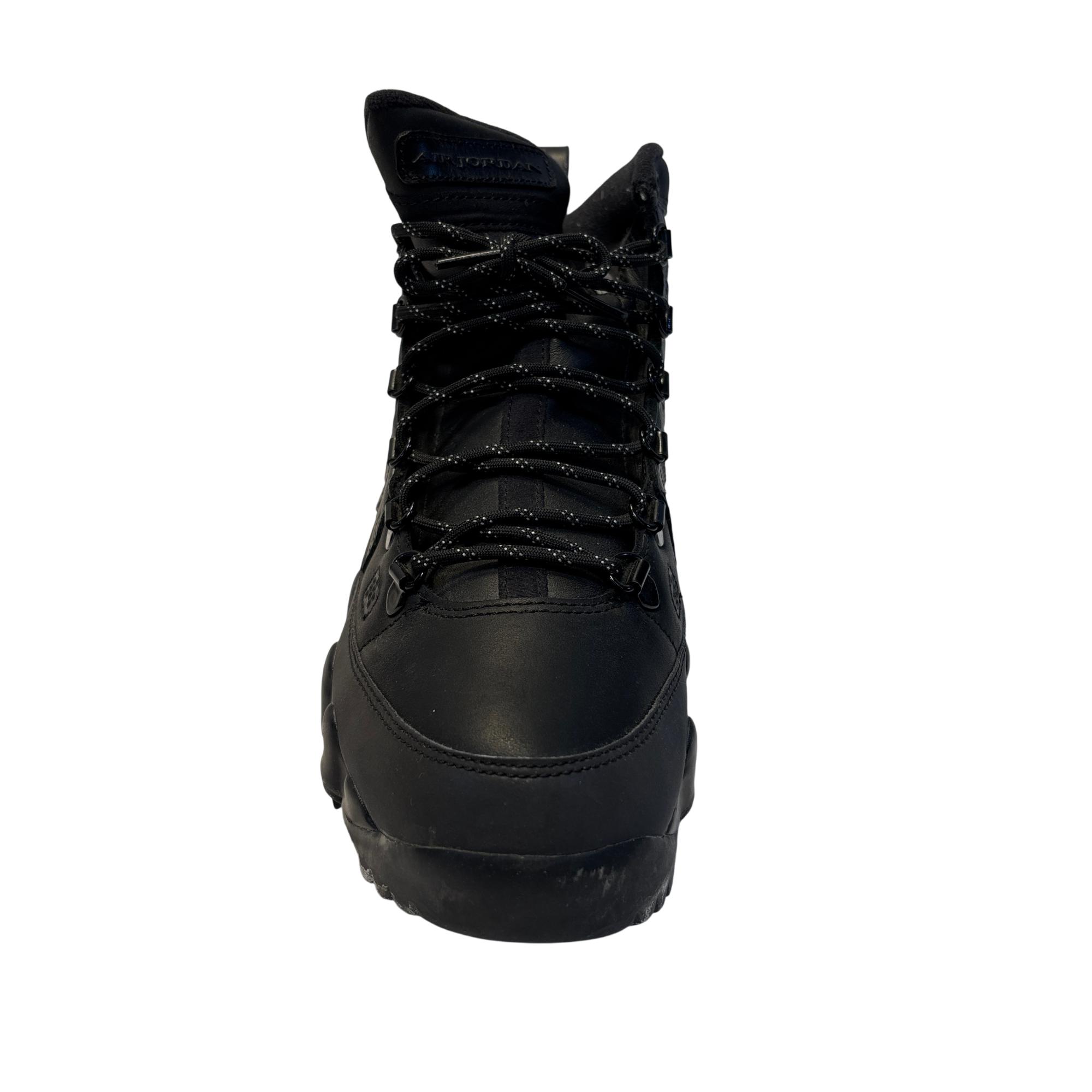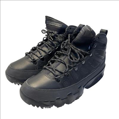 The Nike Air Jordan 9 Retro Boot NRG features a sleek black design with durable leather construction and secure lacing for a comfortable fit. These boots combine classic sneaker style with rugged outdoor functionality, making them ideal for both streetwear and active use.