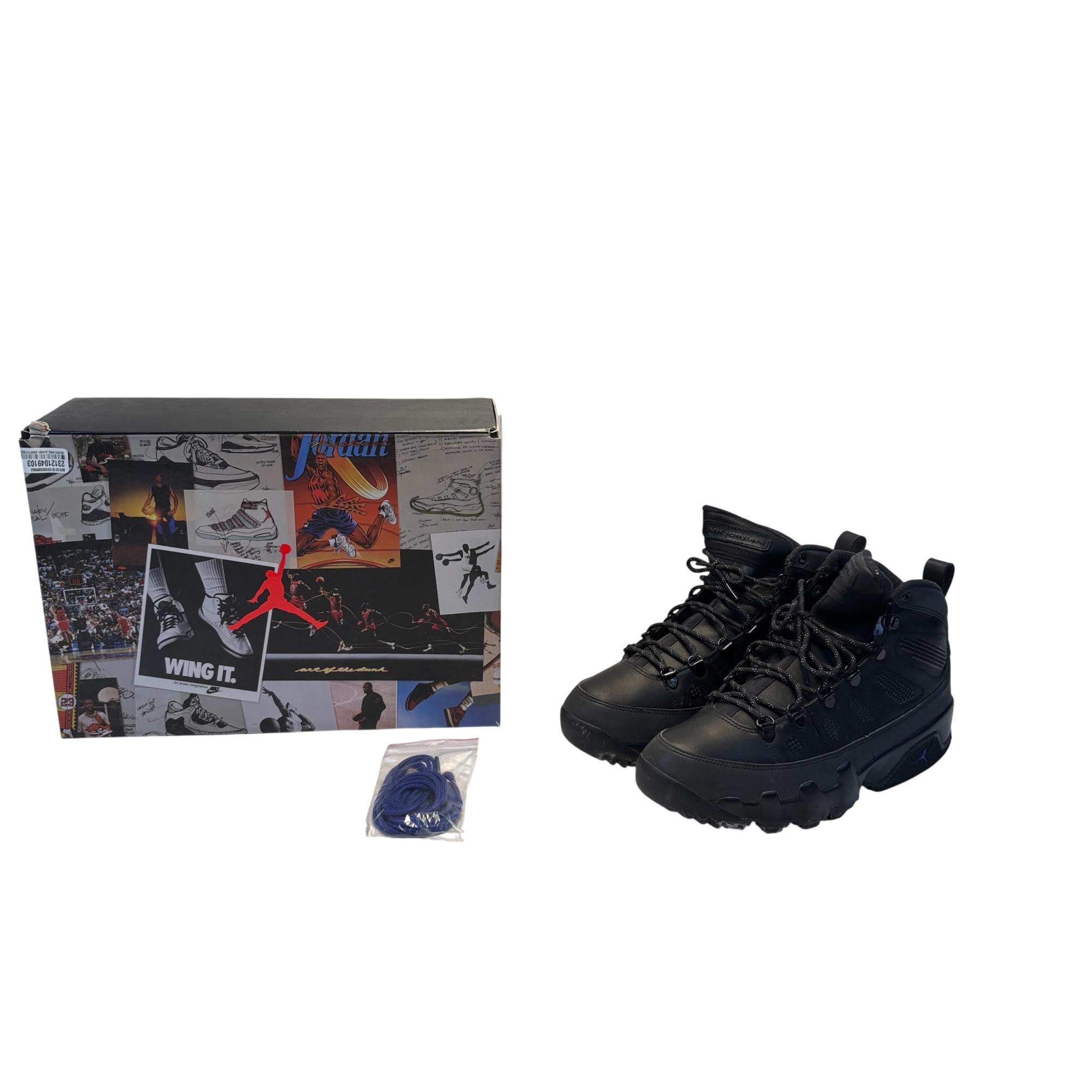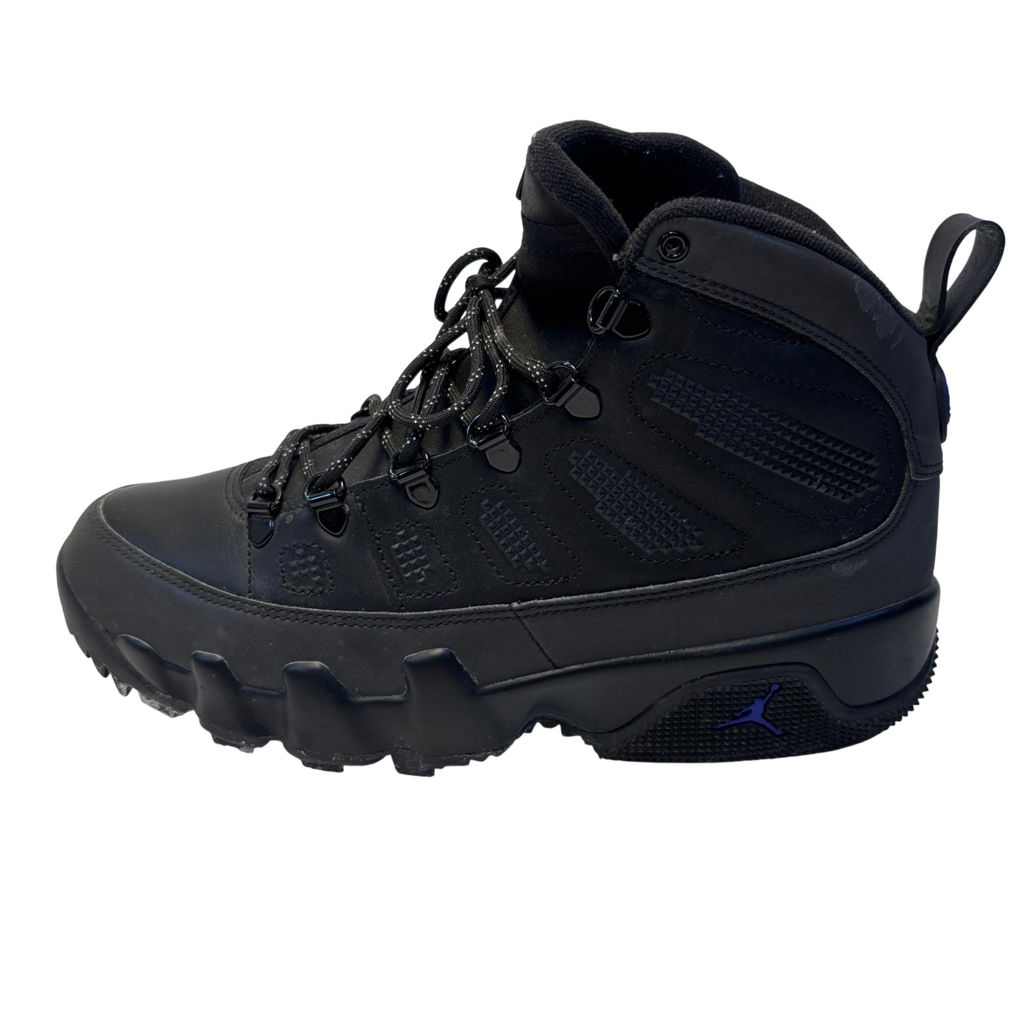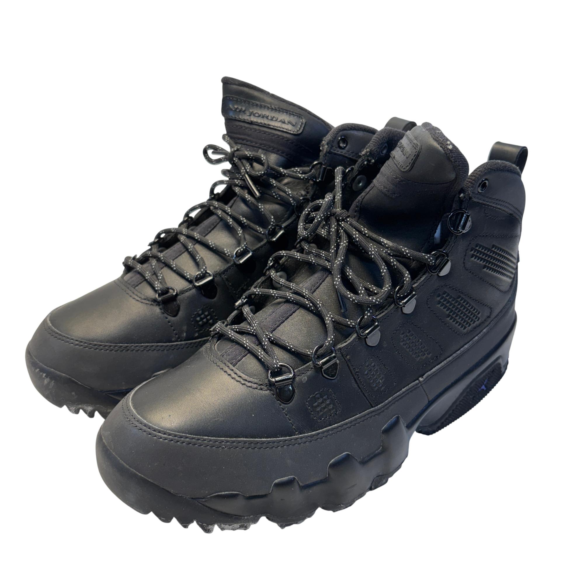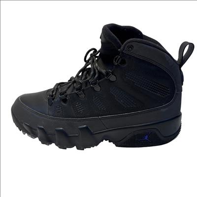 The Nike Air Jordan 9 Retro Boot NRG features a sleek black design with durable leather construction and secure lacing for a comfortable fit. These boots combine classic sneaker style with rugged outdoor functionality, making them ideal for both streetwear and active use.