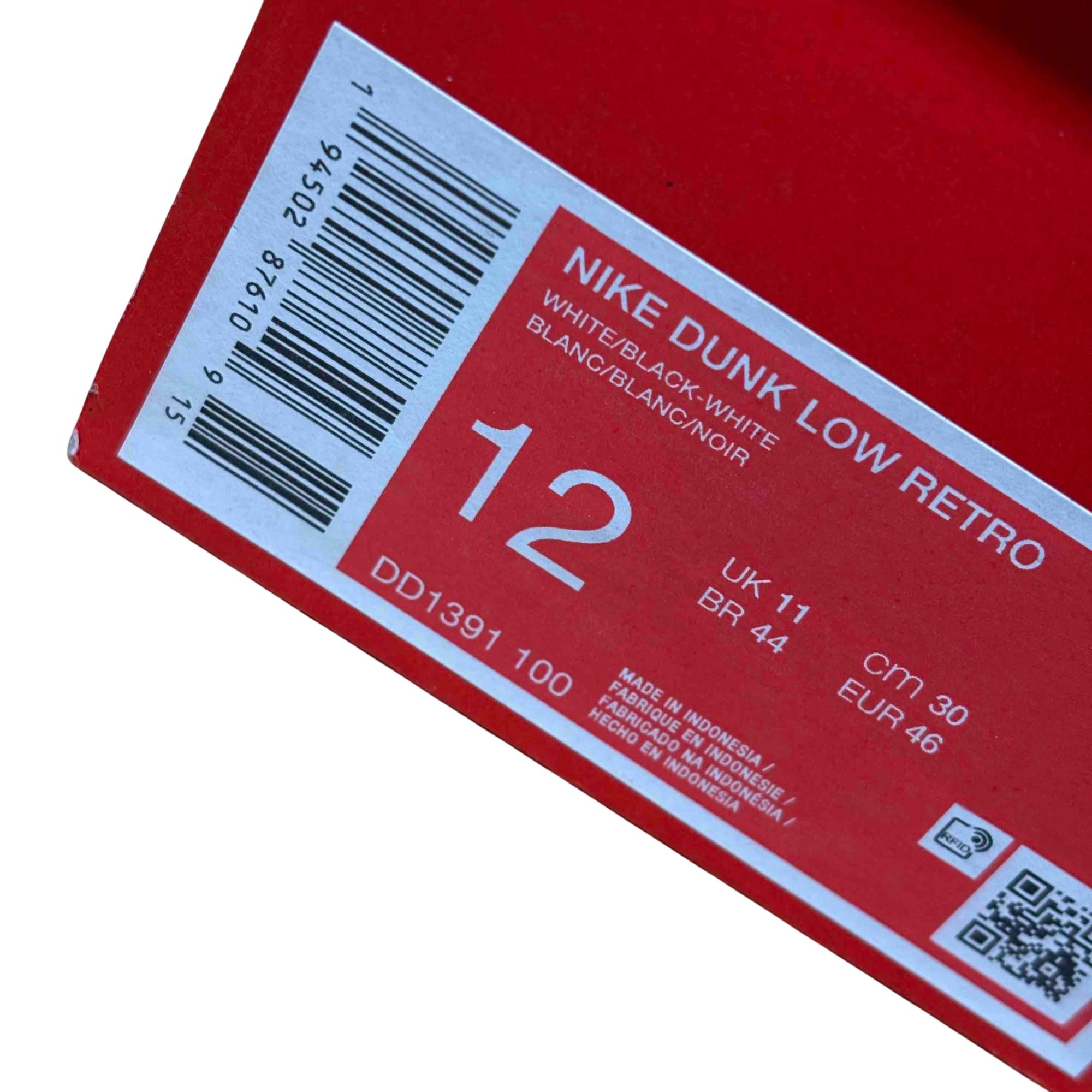 Step up your sneaker game with the iconic Nike Dunk Low Retro in the classic White/Black-White colorway. Featuring a timeless design, these sneakers blend performance and style, making them a must-have for any wardrobe. Crafted from premium materials, they promise durability and comfort for everyday wear.