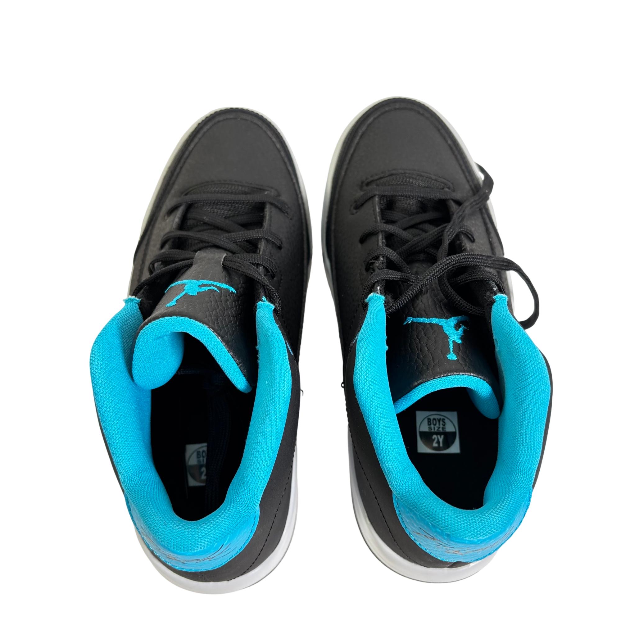 Nike Air Jordan Kids Flight Origin 3 in Black and Blue Lagoon features a mid-top design that offers excellent ankle support and a stylish look for active children. These sneakers combine durable materials with a innovative sole for versatile use in running, basketball, and everyday wear, making them a top choice for young athletes seeking both performance and comfort.