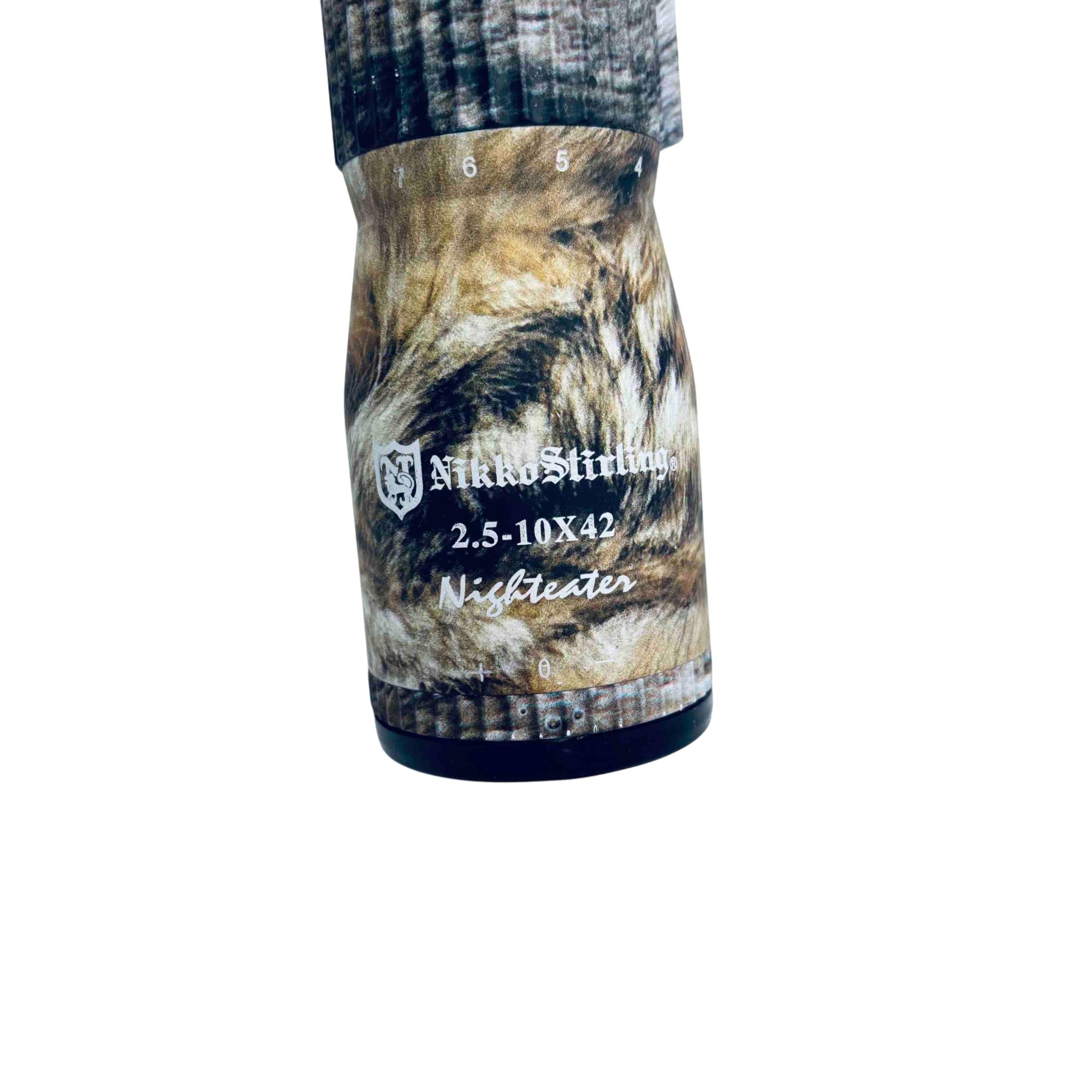 Enhance your shooting precision with the Nikko Stirling Nighteater 2.5-10x42 4Plex Target Master Scope. This high-performance optic device features an electronic reticle with multiple illumination settings for optimal visibility in various lighting conditions. Its robust design and advanced optics make it the perfect companion for sports enthusiasts and target shooting aficionados.
