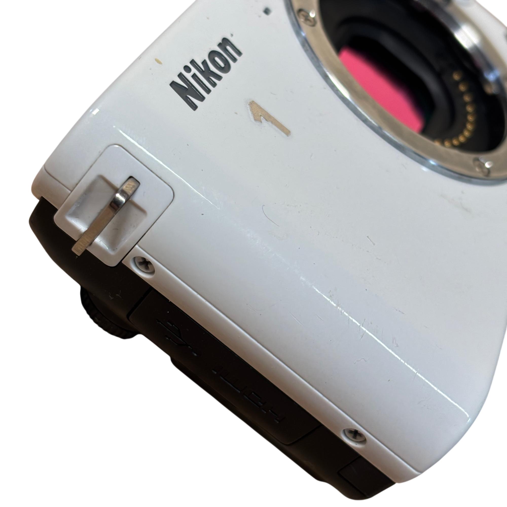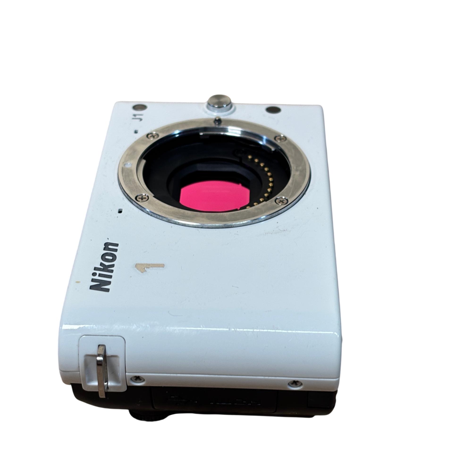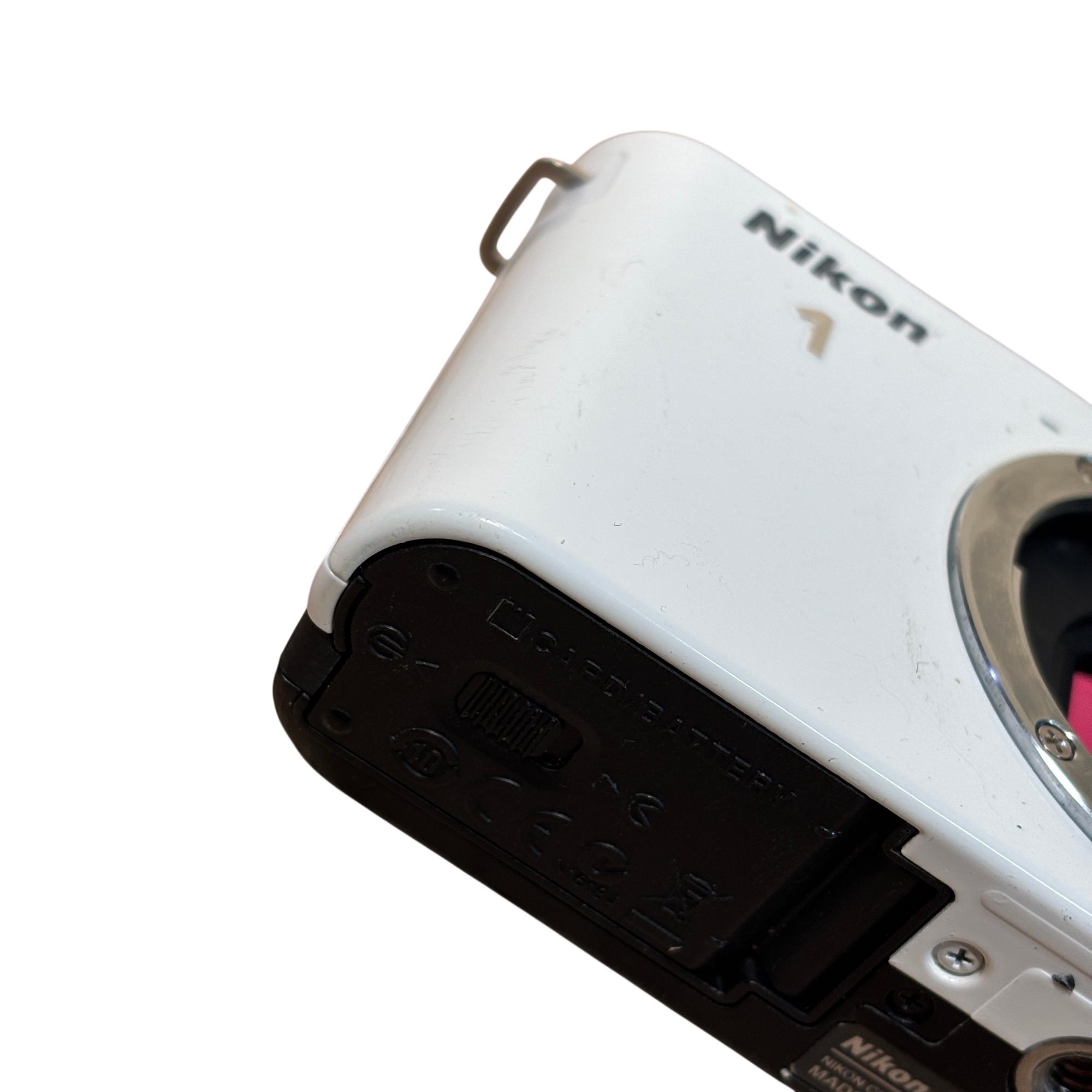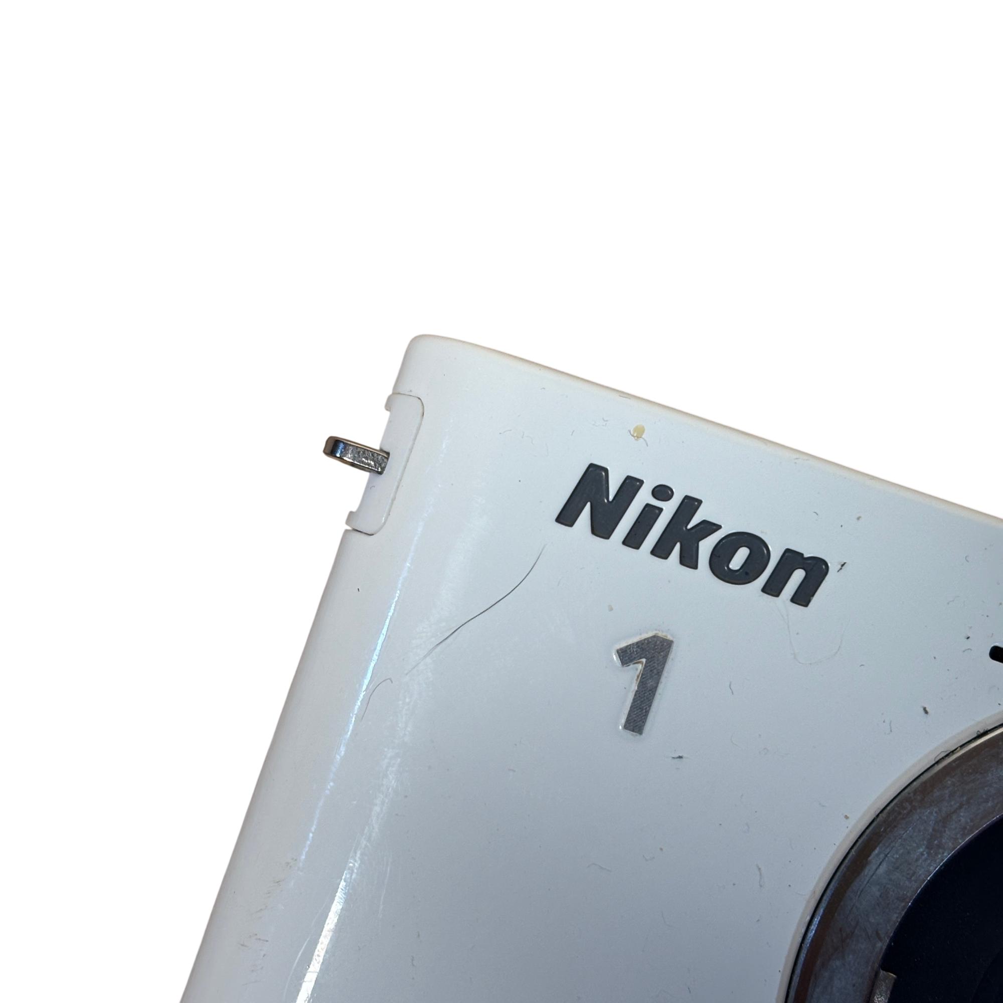 Nikon 1 J1 Mirrorless Digital Camera Kit (White) with 10-30mm VR Lens delivers high-resolution 10.1 megapixel images with a compact and lightweight design ideal for on-the-go photography. Featuring a versatile 10-30mm Vibration Reduction lens, this mirrorless camera offers fast autofocus and excellent image stabilization for sharp, clear photos in various shooting conditions.