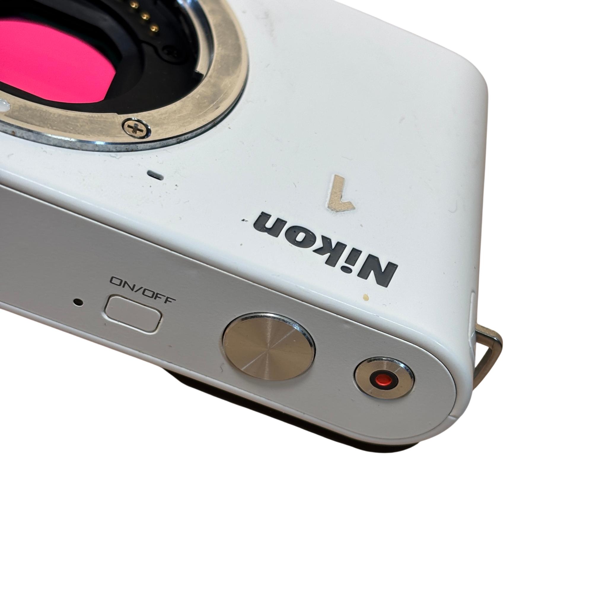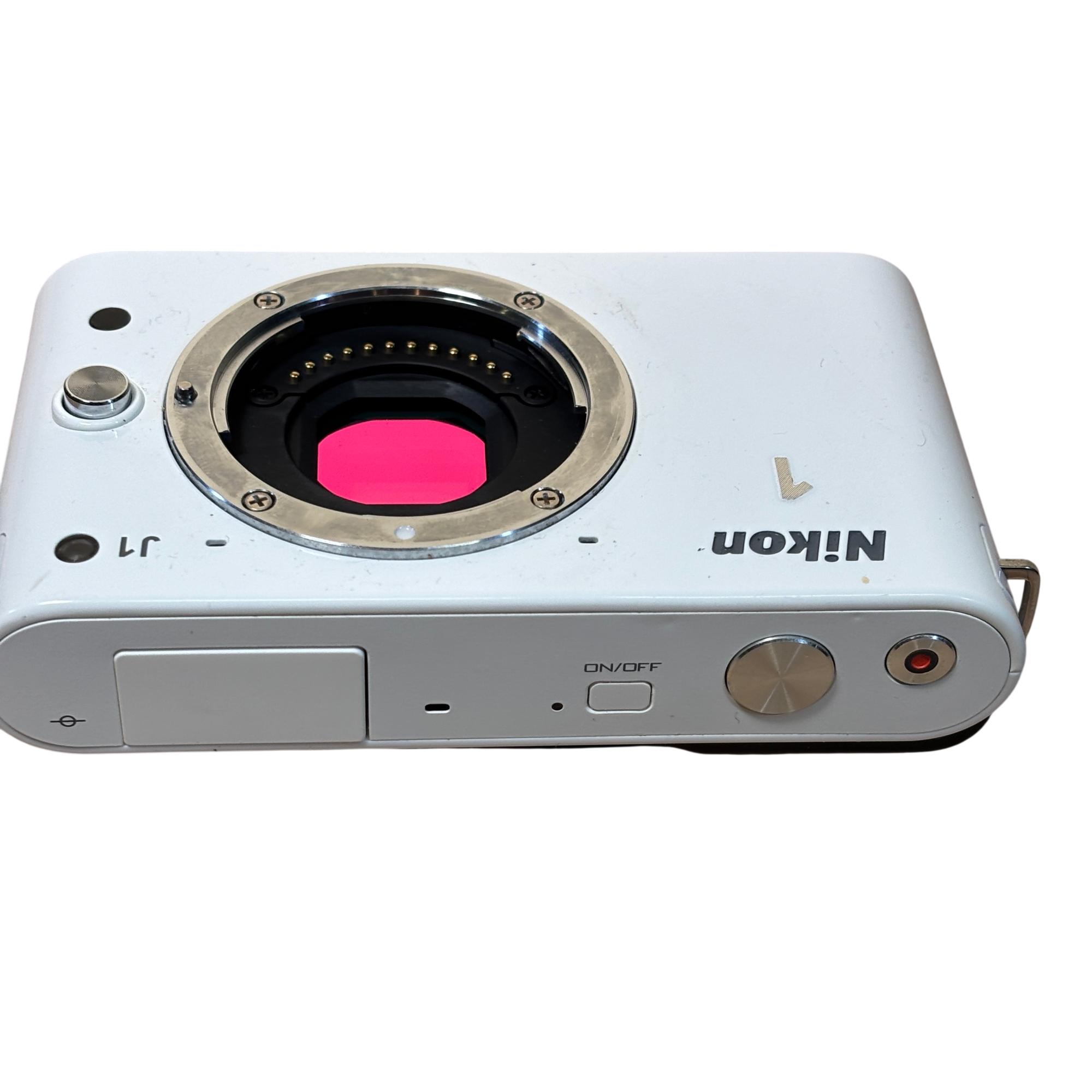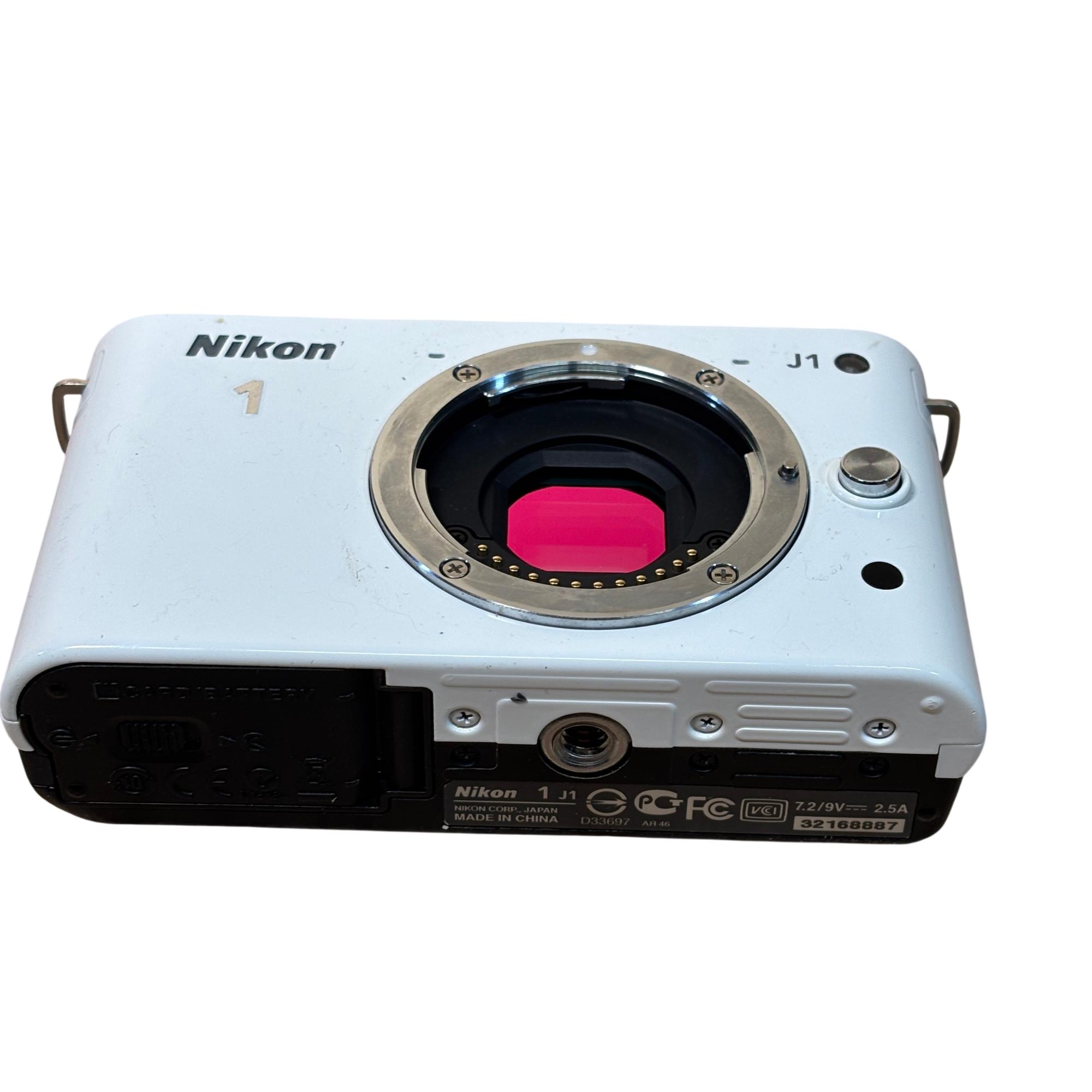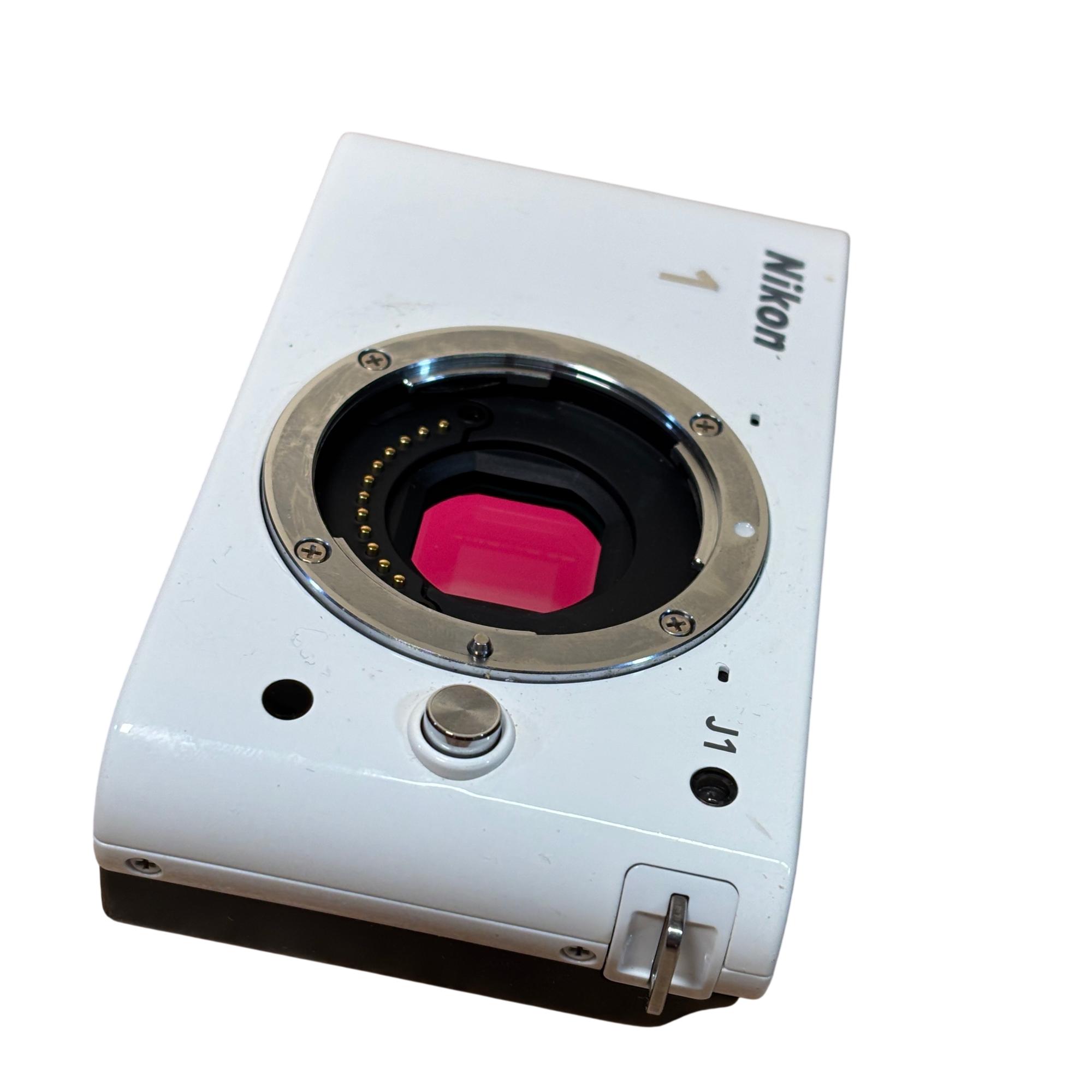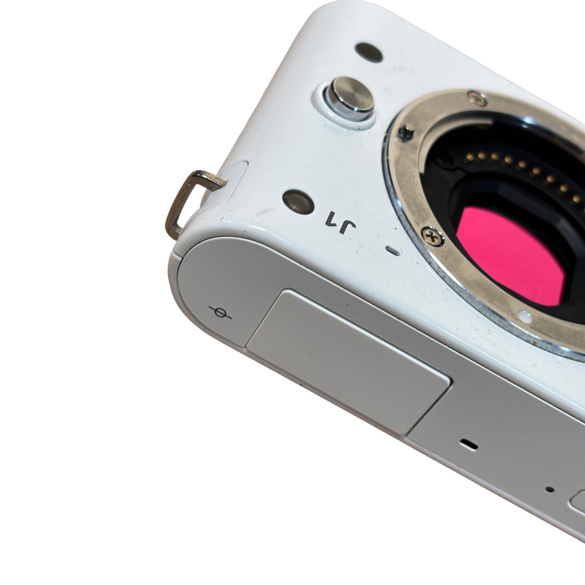 Nikon 1 J1 Mirrorless Digital Camera Kit (White) with 10-30mm VR Lens delivers high-resolution 10.1 megapixel images with a compact and lightweight design ideal for on-the-go photography. Featuring a versatile 10-30mm Vibration Reduction lens, this mirrorless camera offers fast autofocus and excellent image stabilization for sharp, clear photos in various shooting conditions.