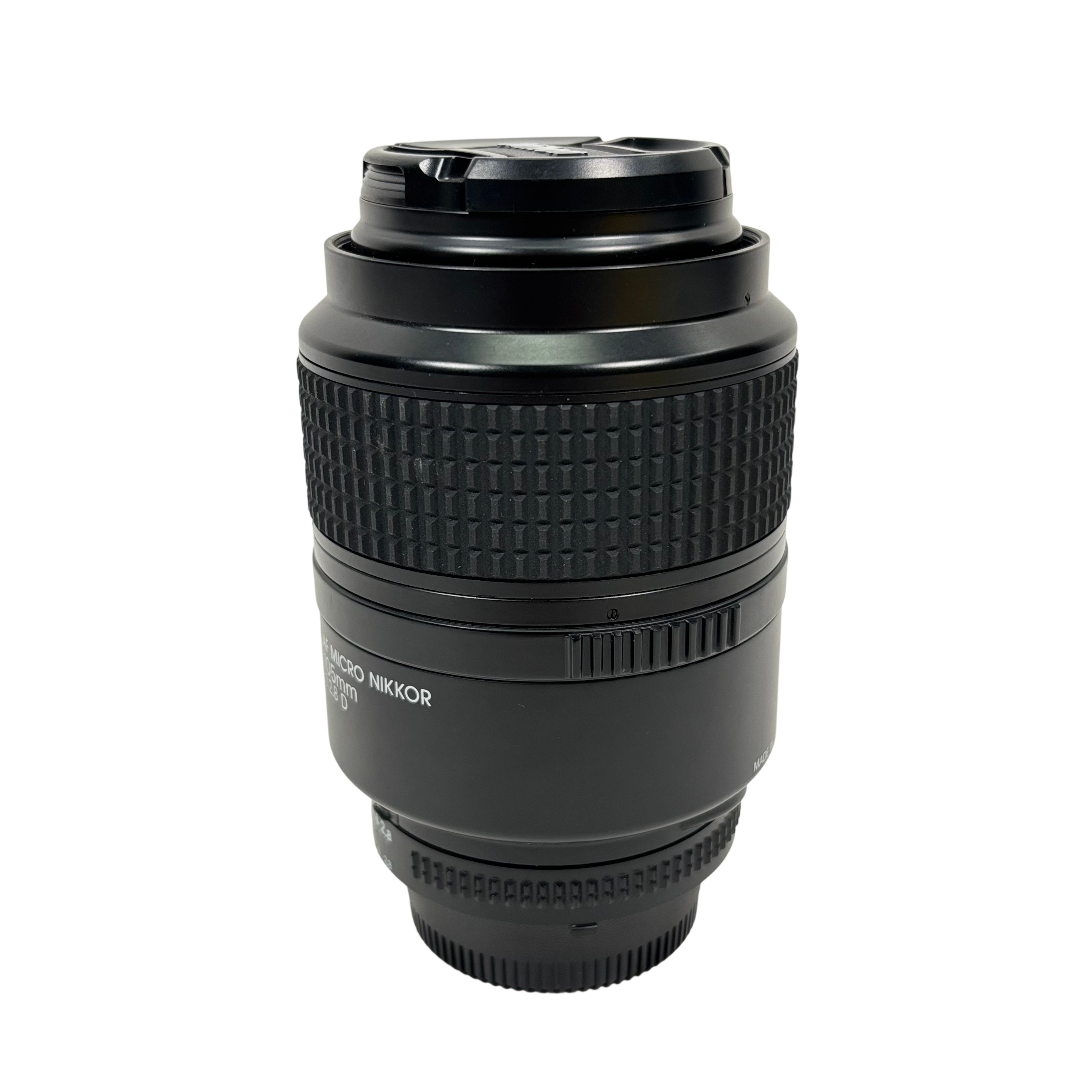 The Nikon AF Micro Nikkor 105mm 1:2.8D is a professional-grade macro lens designed for Nikon F-mount cameras. Featuring a bright f/2.8 aperture and 105mm focal length, this lens delivers sharp, high-contrast images with excellent close-up capabilities at 1:1 magnification. It supports autofocus with manual override and includes an aperture ring for precise control. Made in Japan with durable metal and plastic construction, this lens is ideal for photographers seeking detailed macro shots and versatile portraiture.