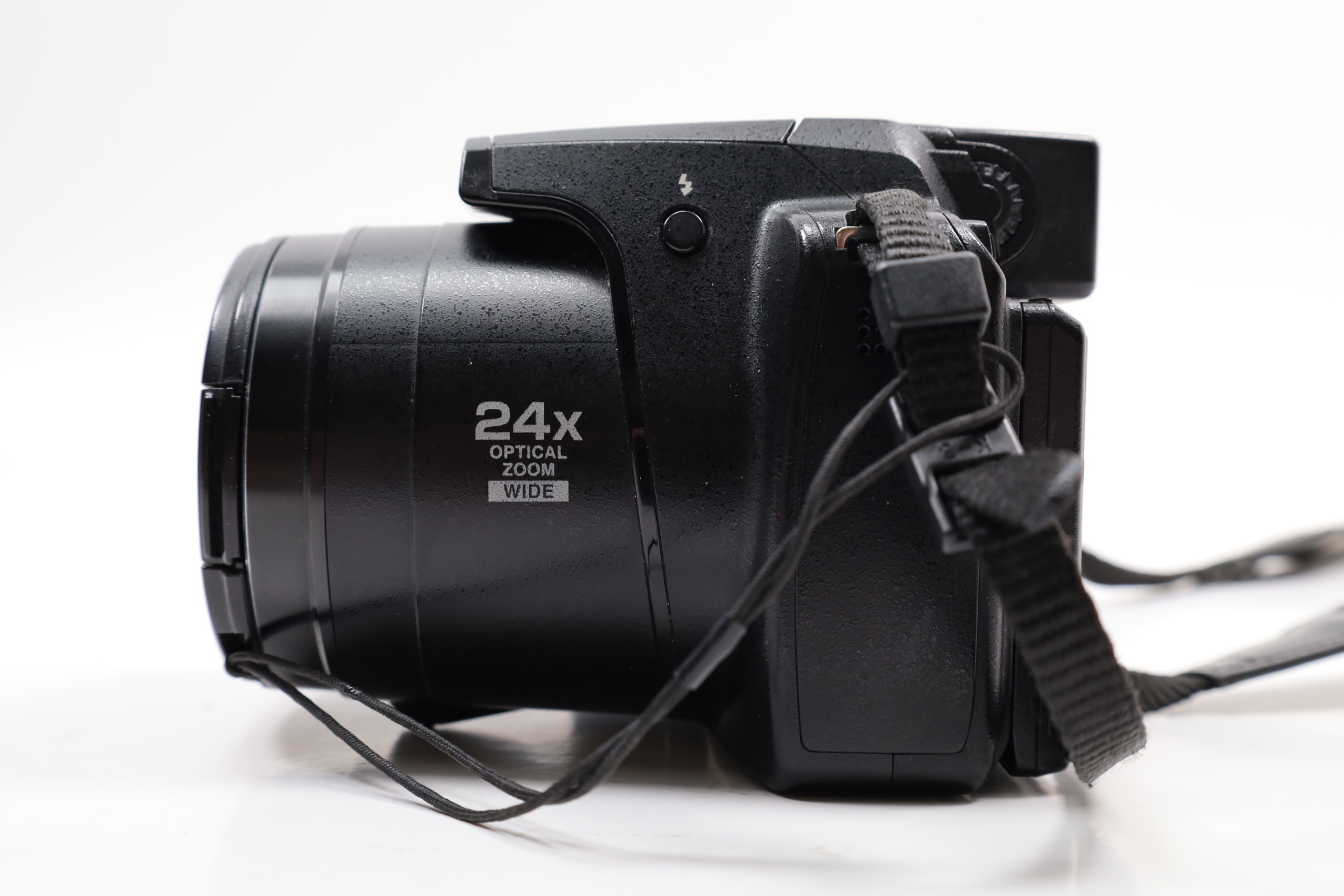 Offers a versatile 24x wide-angle zoom lens (26-624mm) for capturing everything from wide landscapes to telephoto sports shots. The 3" vari-angle LCD allows for easy composition from various angles, and the optical VR image stabilization ensures sharp images by reducing camera shake. With features like sports continuous mode, which captures up to 15 frames per second, and high sensitivity up to ISO 6400, this camera excels in action and low-light conditions. The best shot selector mode automatically saves the sharpest image from up to 10 continuous shots, while auto and manual exposure modes provide flexibility for different shooting scenarios.