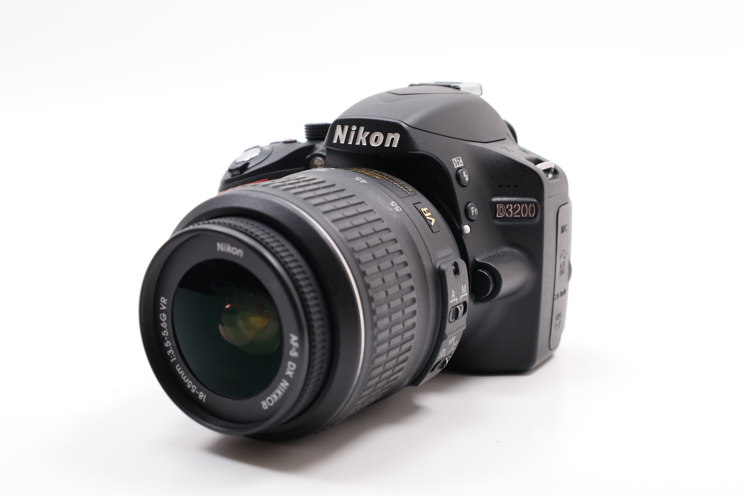 A 24.2MP DX-format digital SLR camera that delivers high-resolution JPEG and RAW photos, as well as full HD 1080p video at 30 fps. It features an EXPEED 3 image processor for superior color fidelity and fine tonal gradations, and a 3.0" 921k-dot LCD for clear framing and playback. The included AF-S NIKKOR 18-55mm lens with Vibration Reduction is ideal for a variety of shooting scenarios. The camera's 11-point autofocus system ensures quick and accurate focusing, while its ISO range of 100-6400, expandable to 12800, allows for great shots in various lighting conditions. Capable of continuous shooting up to 4 fps and equipped with a 420-pixel RGB sensor for precise exposure metering, the D3200 is both powerful and user-friendly, featuring in-camera guidance for easy operation.