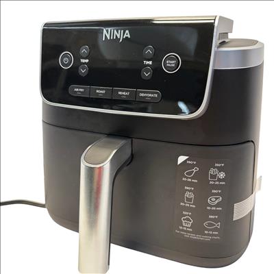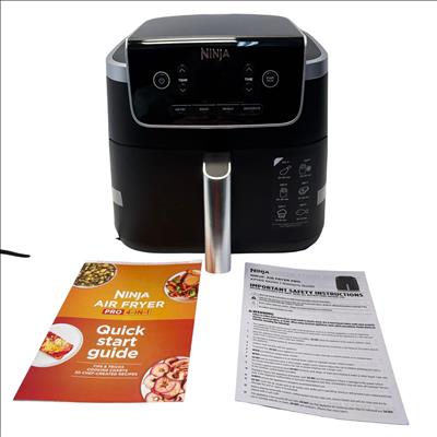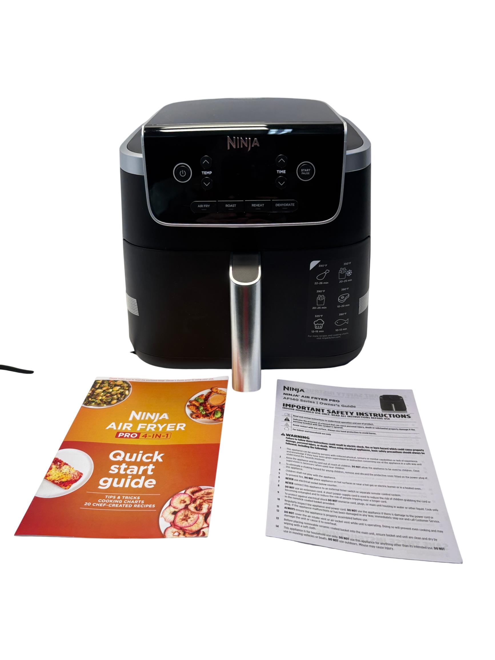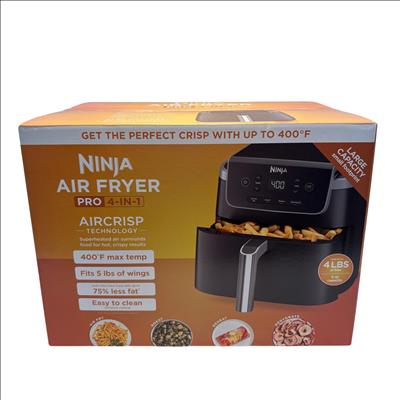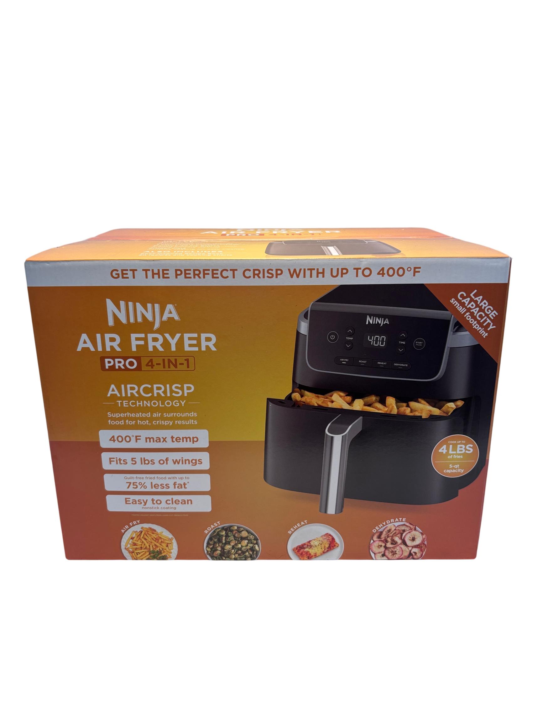 The Ninja Air Fryer Pro 4-in-1 5 QT Digital Air Fryer offers versatile cooking with air fry, roast, reheat, and dehydrate functions. It features a large 5-quart capacity and a maximum temperature of up to 400 degrees Fahrenheit for hot, crispy results using superheated air technology. Designed with a compact footprint and easy-to-clean nonstick coating, this appliance makes preparing guilt-free meals simple and efficient.