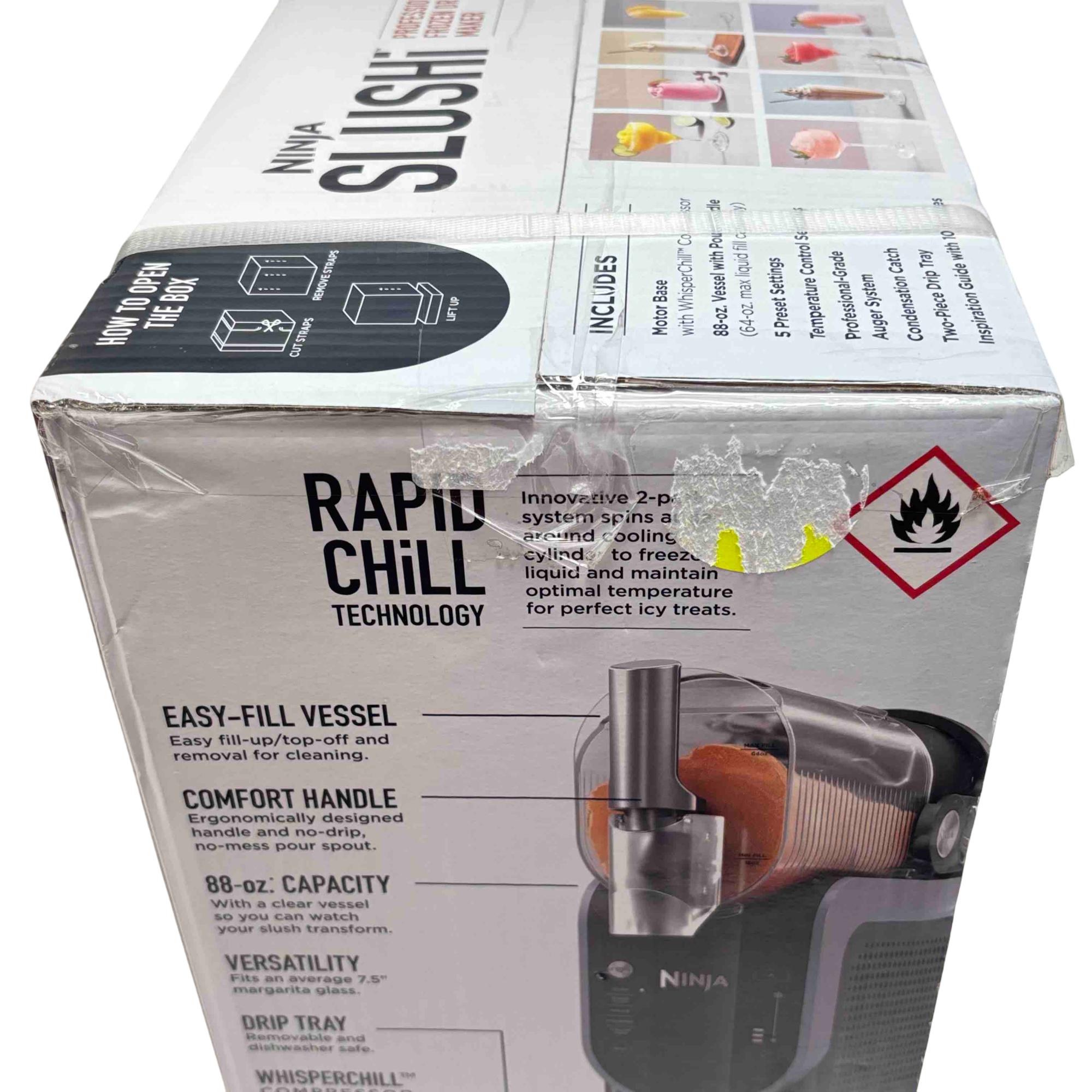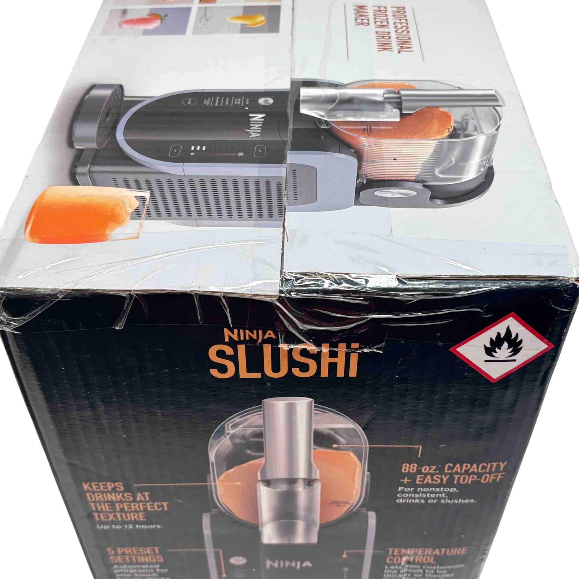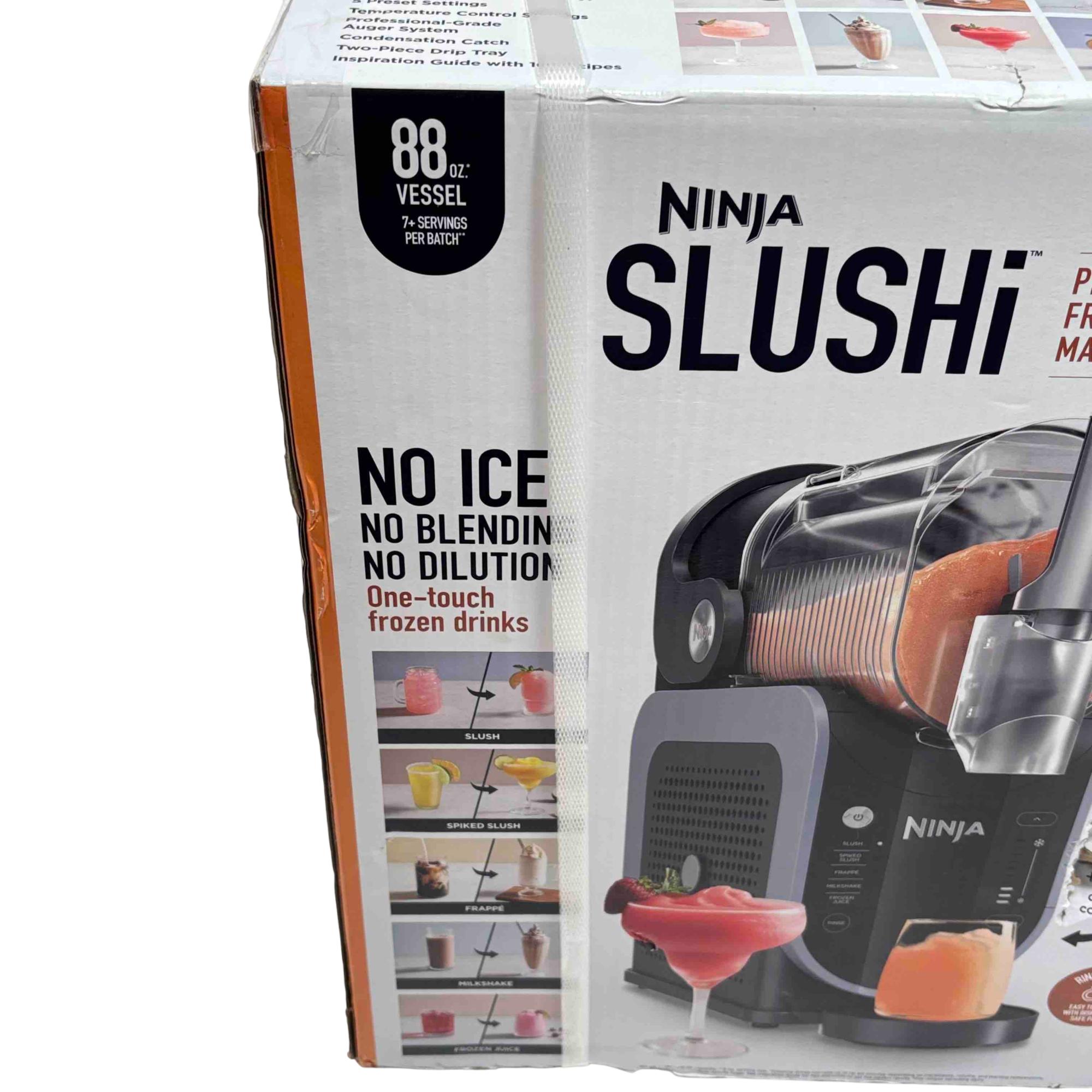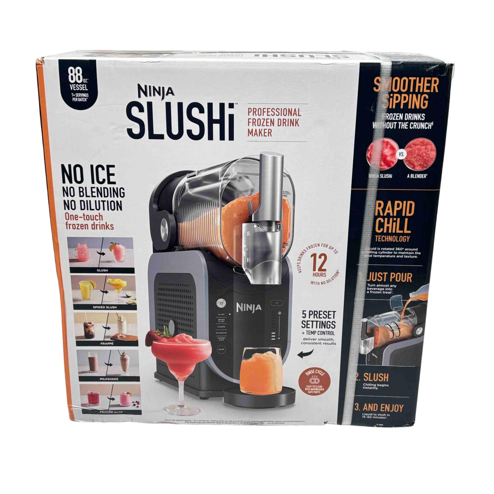 Experience the ultimate convenience and performance with the Ninja SLUSHi Professional Frozen Drink Maker, model FS301. With its large 88oz vessel, rapid chill technology, and 5 one-touch preset settings, this machine delivers smooth, perfectly textured frozen drinks, slushies, milkshakes, and more without ice, blending, or dilution. Perfect for parties or family gatherings, you can enjoy up to 12 hours of frozen drinks with easy-clean, dishwasher-safe parts.