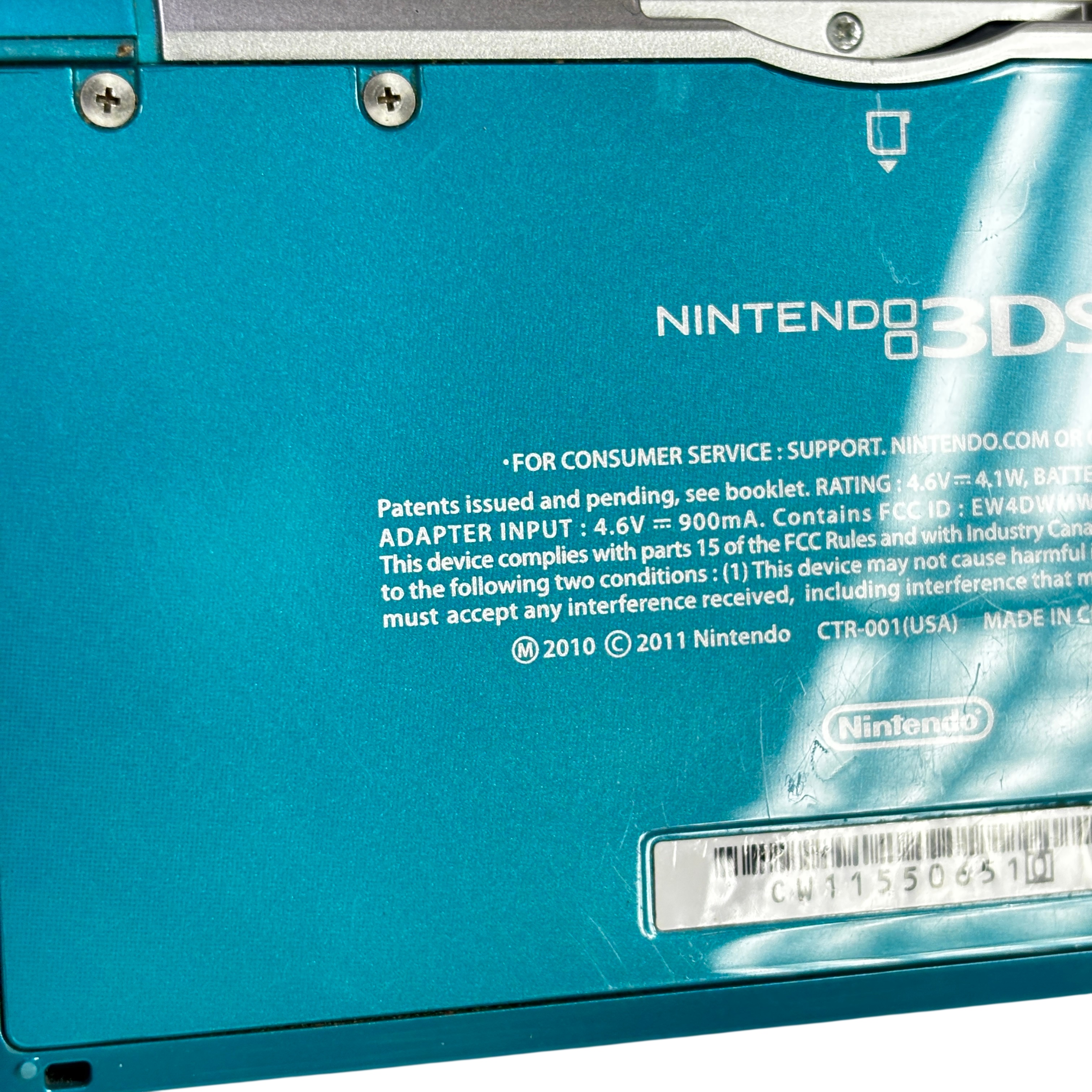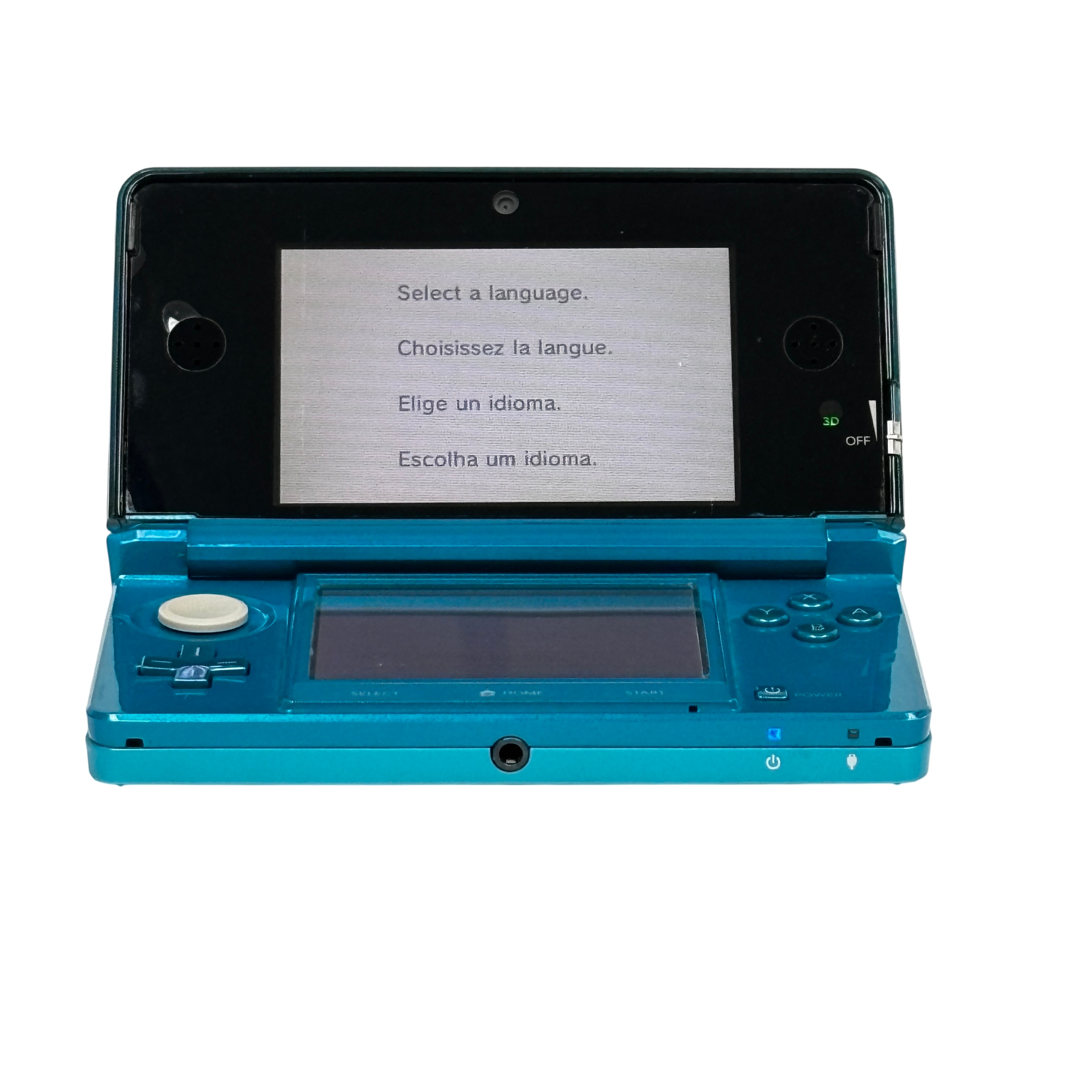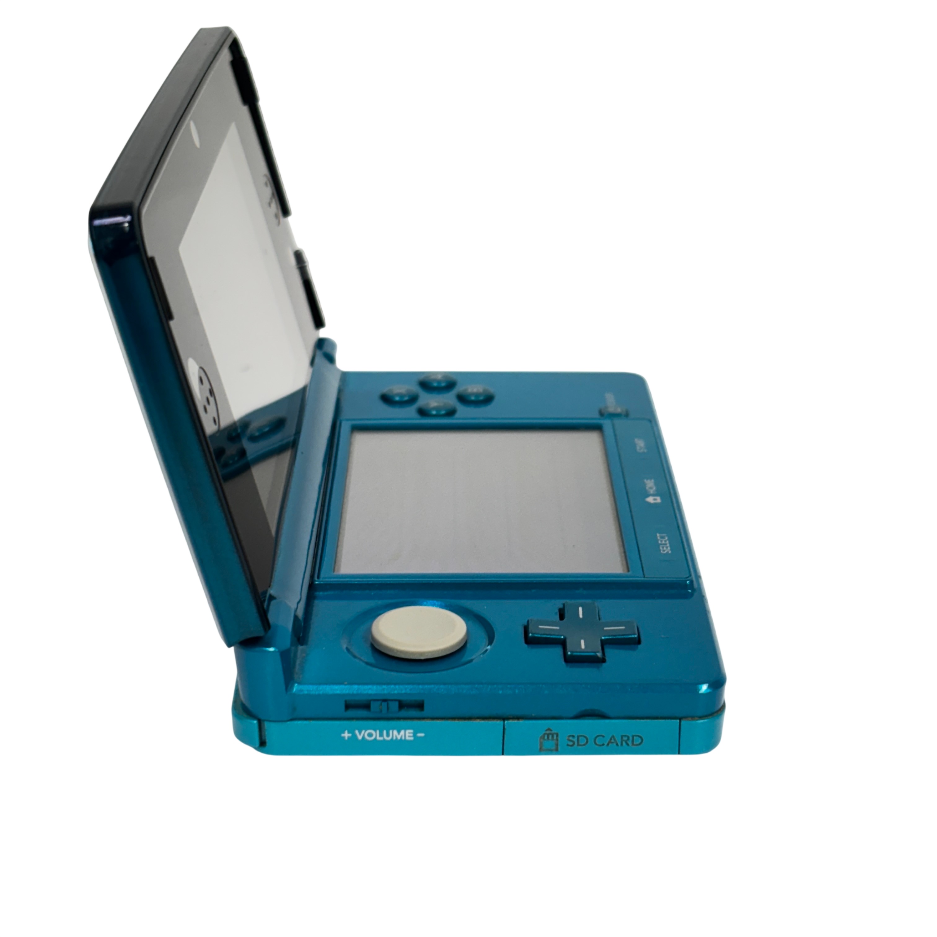 The Nintendo 3DS CTR-001 handheld gaming console in Aqua Blue offers immersive 3D gameplay without the need for glasses. Featuring dual screens with a touchscreen interface, wireless connectivity, and an SD card slot, this model supports a wide range of Nintendo games. Included in this set are the original charger and stylus, making it ready for on-the-go gaming.