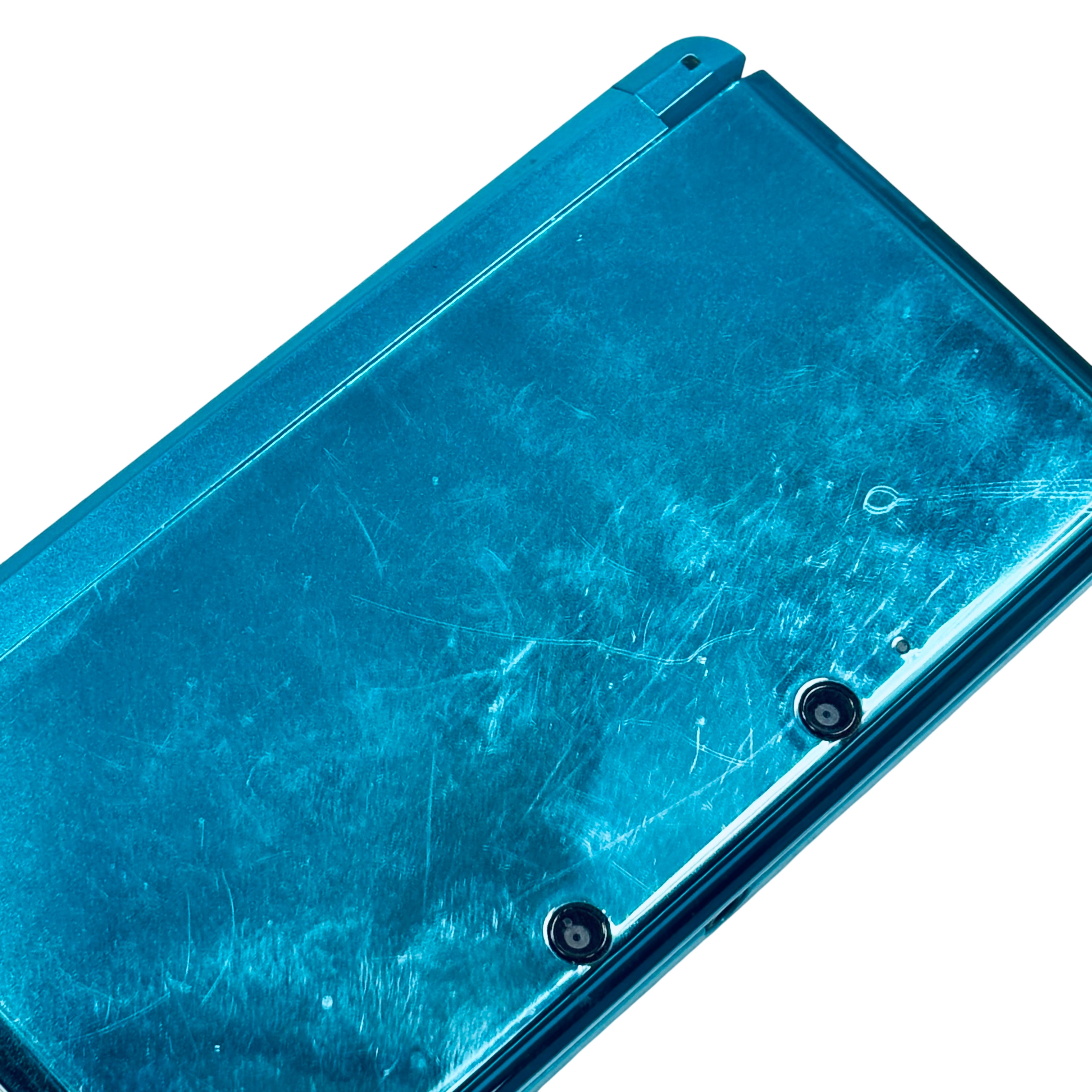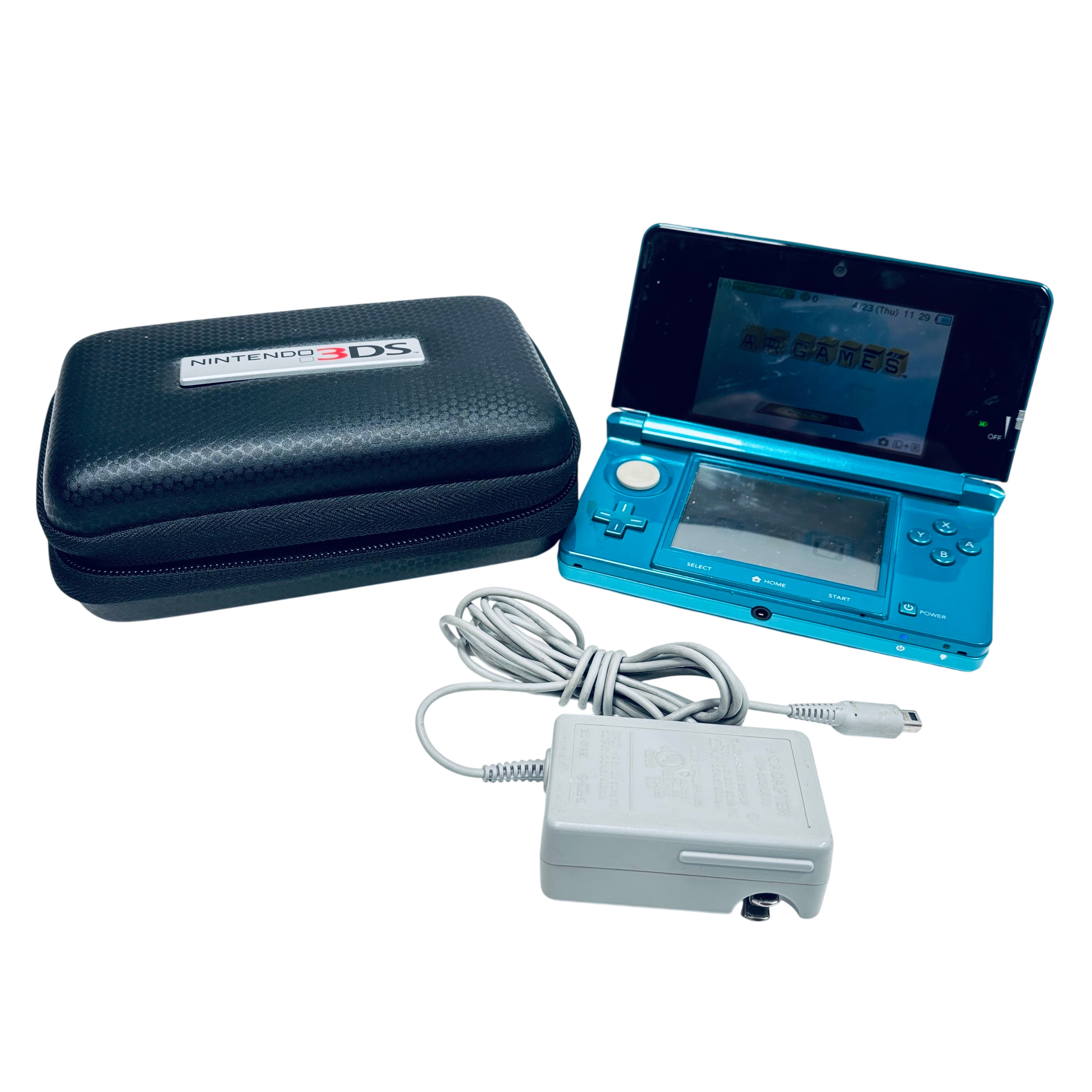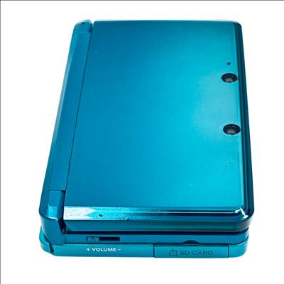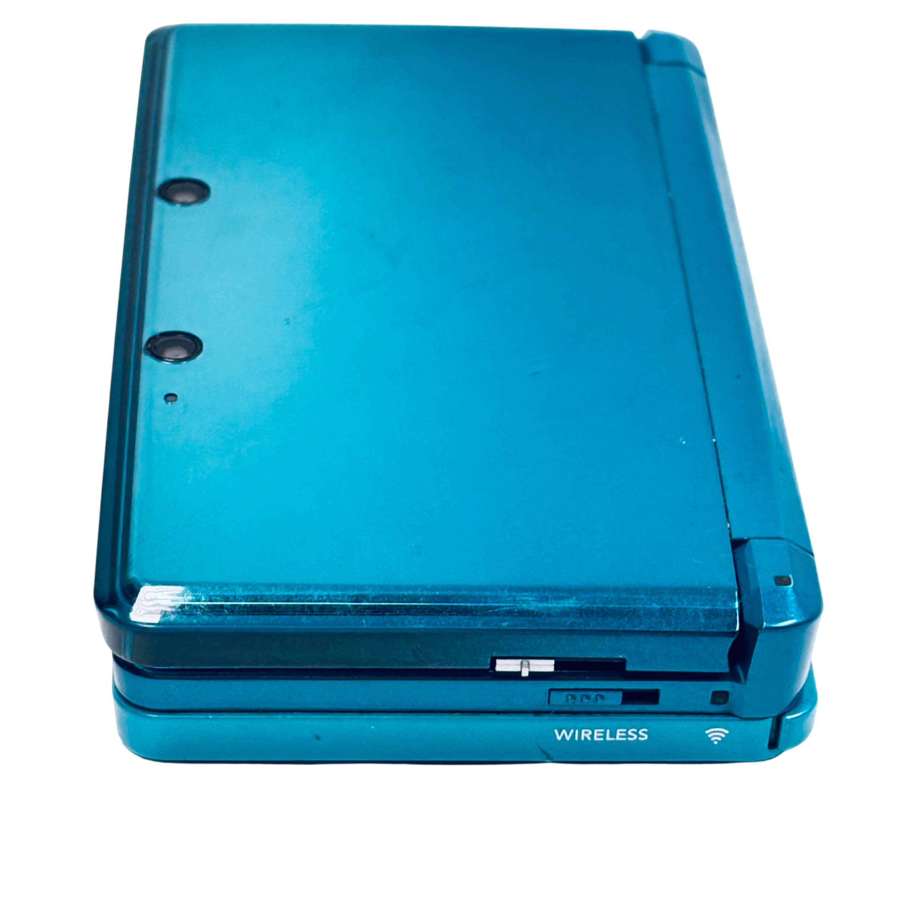 Nintendo CTR-001 Teal Nintendo 3DS System is a portable handheld gaming console featuring dual screens with a 3D stereoscopic top display and a touch-sensitive bottom screen. This model includes built-in Wi-Fi connectivity, support for AR Games, and uses a rechargeable lithium-ion battery with a 4.6V adapter input. The teal-colored console comes with a charger and a protective carrying case, making it ideal for gaming on the go. Compact and lightweight, it measures approximately 5.31 inches in length, 3.54 inches in width, and 0.94 inches in height, weighing just 0.35 pounds.