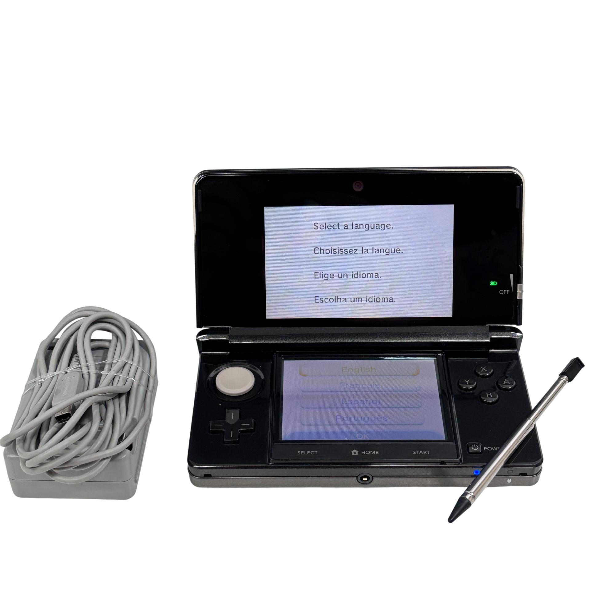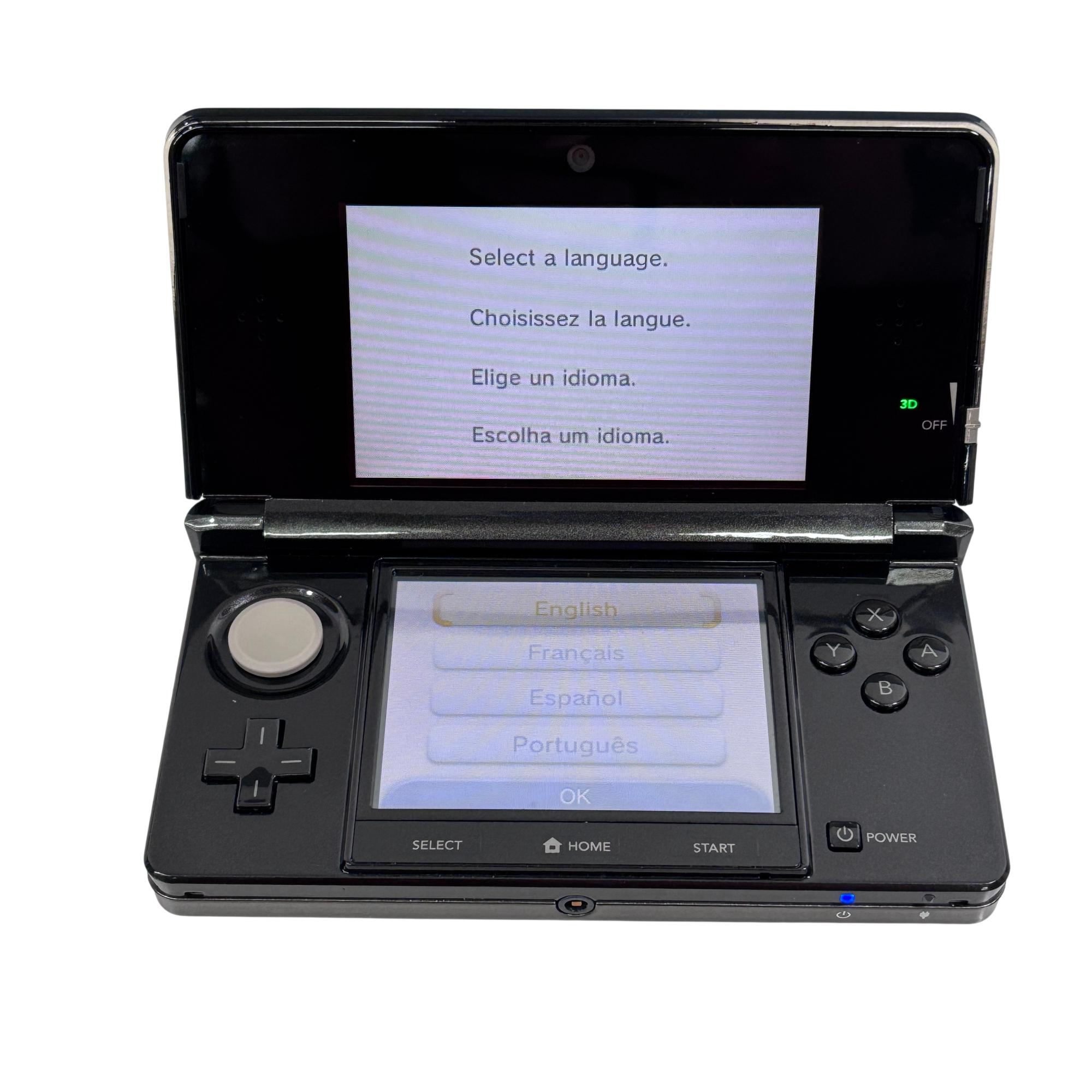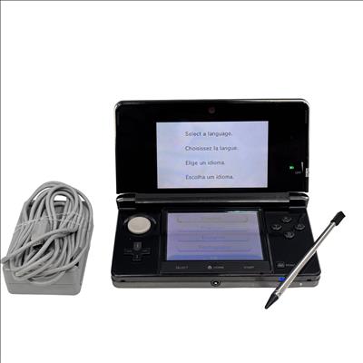 The Nintendo 3DS features a sleek black rectangular design with dual screens and a responsive stylus for enhanced gameplay. This portable gaming device supports multiple languages and offers versatile controls including traditional buttons and touchscreen input, making it ideal for on-the-go entertainment.