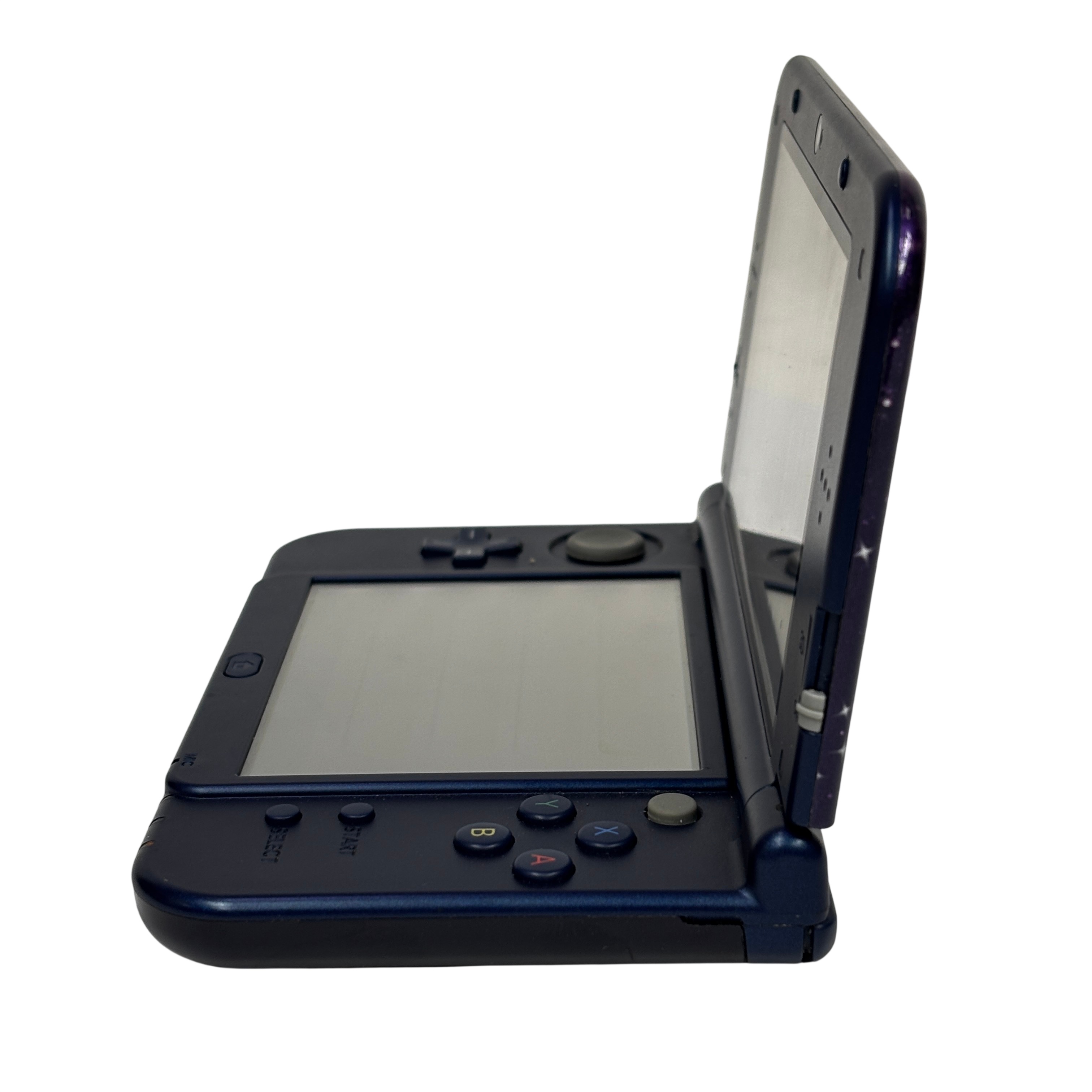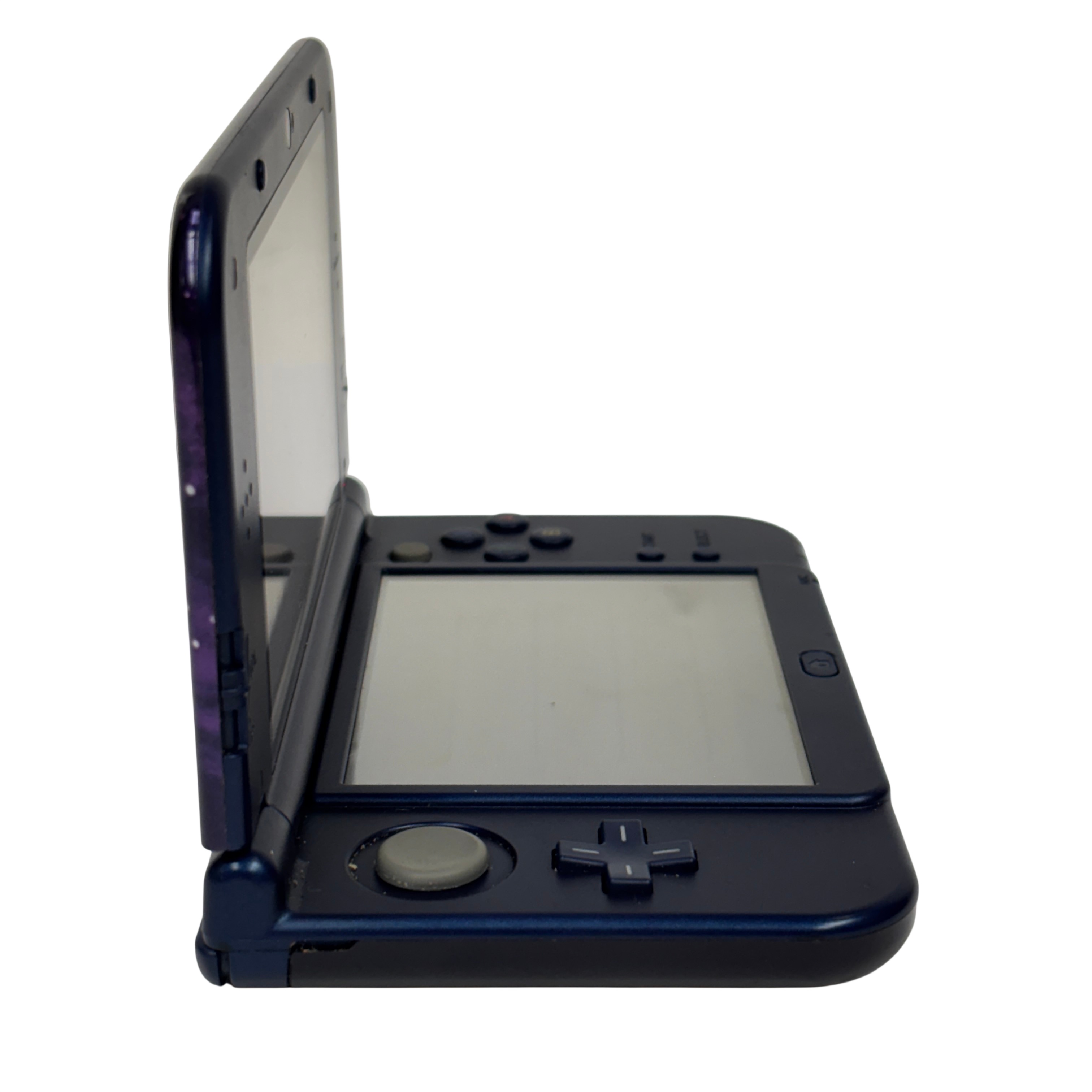 The New Nintendo 3DS XL Galaxy Edition (Model RED-001) is a handheld gaming console featuring dual screens with 3D capability and a striking galaxy blue finish. This edition includes a lithium-ion battery rated at 3.7V and comes with a charger. With improved processing power and ergonomic controls compared to previous models, it offers an enhanced gaming experience for fans and collectors alike.