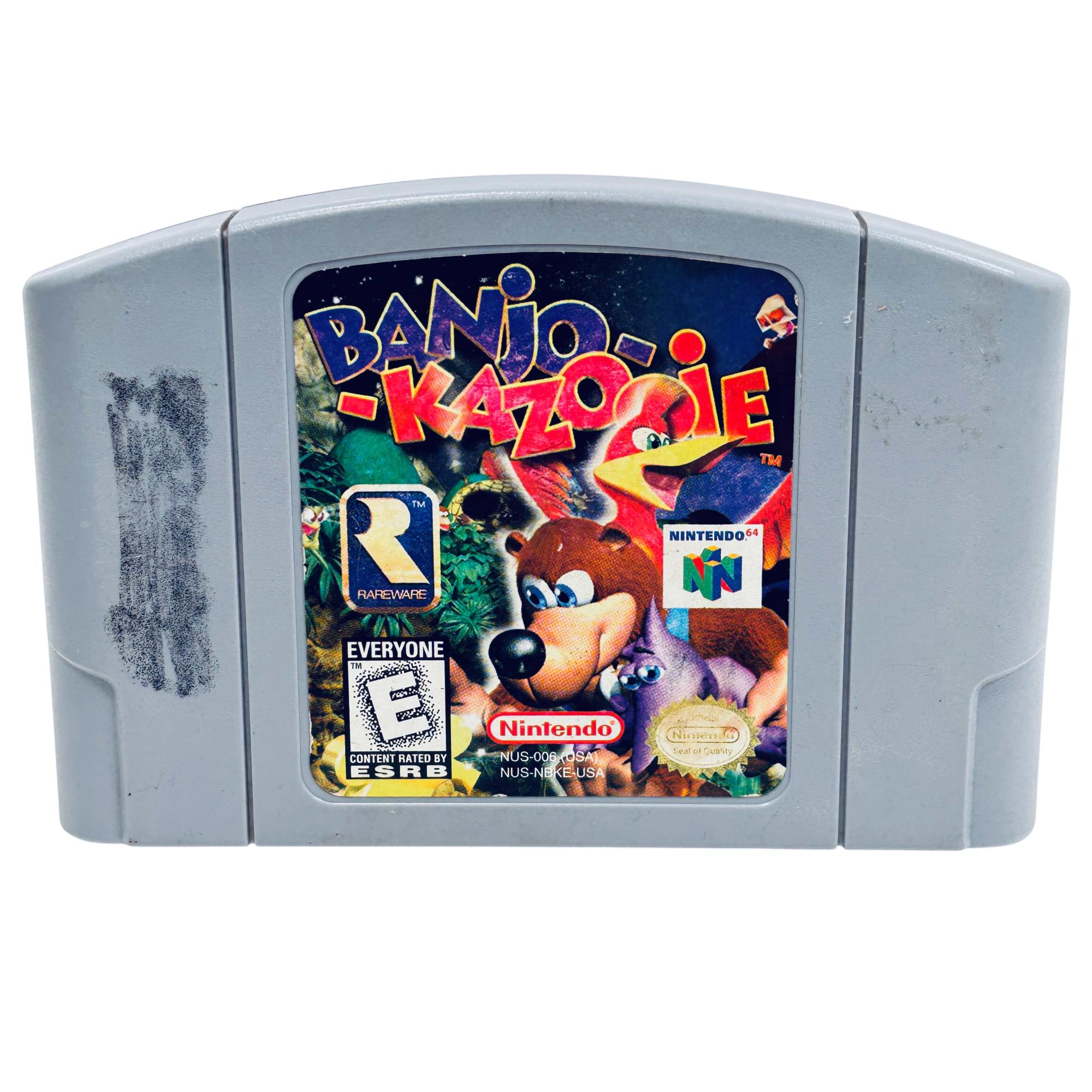 Banjo-Kazooie (Nintendo 64, 1998) by Rareware is a classic platformer game featuring a vibrant world filled with puzzles and colorful characters. Designed for the Nintendo 64 system, this game cartridge delivers an immersive adventure with detailed graphics and engaging gameplay. It is widely recognized for its creative level design and nostalgic appeal among retro gaming enthusiasts.