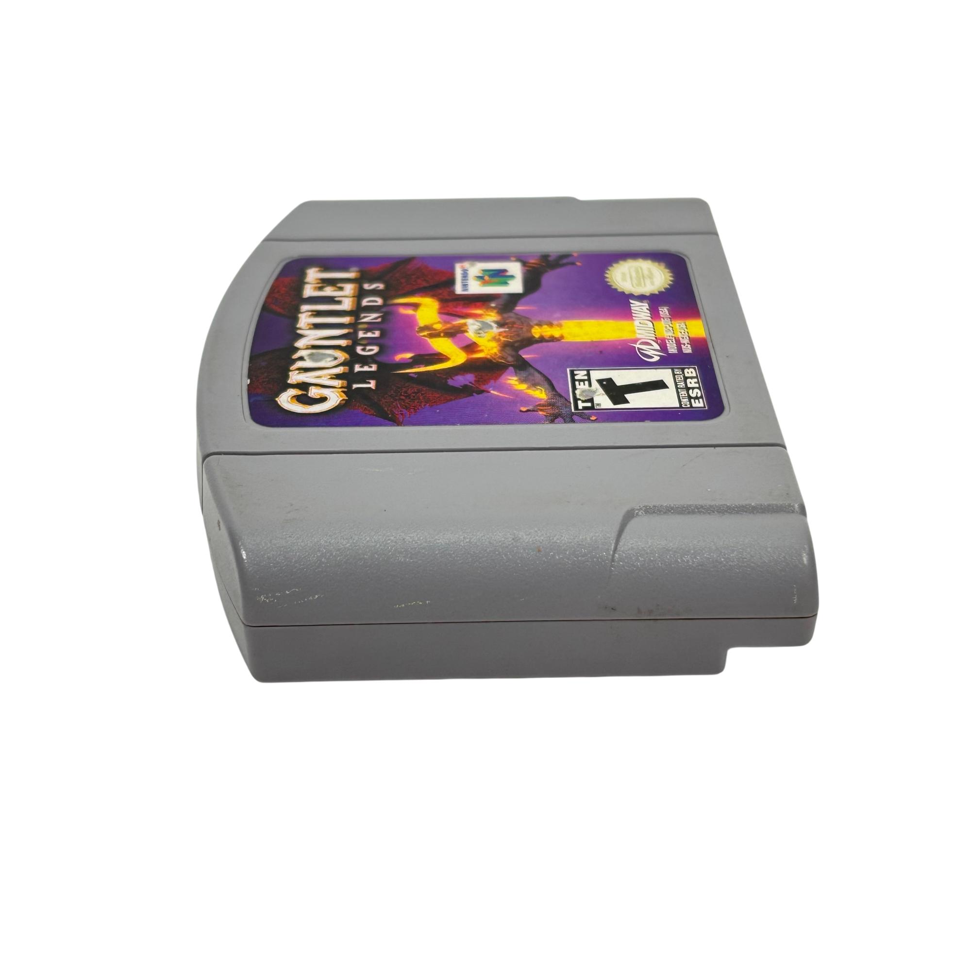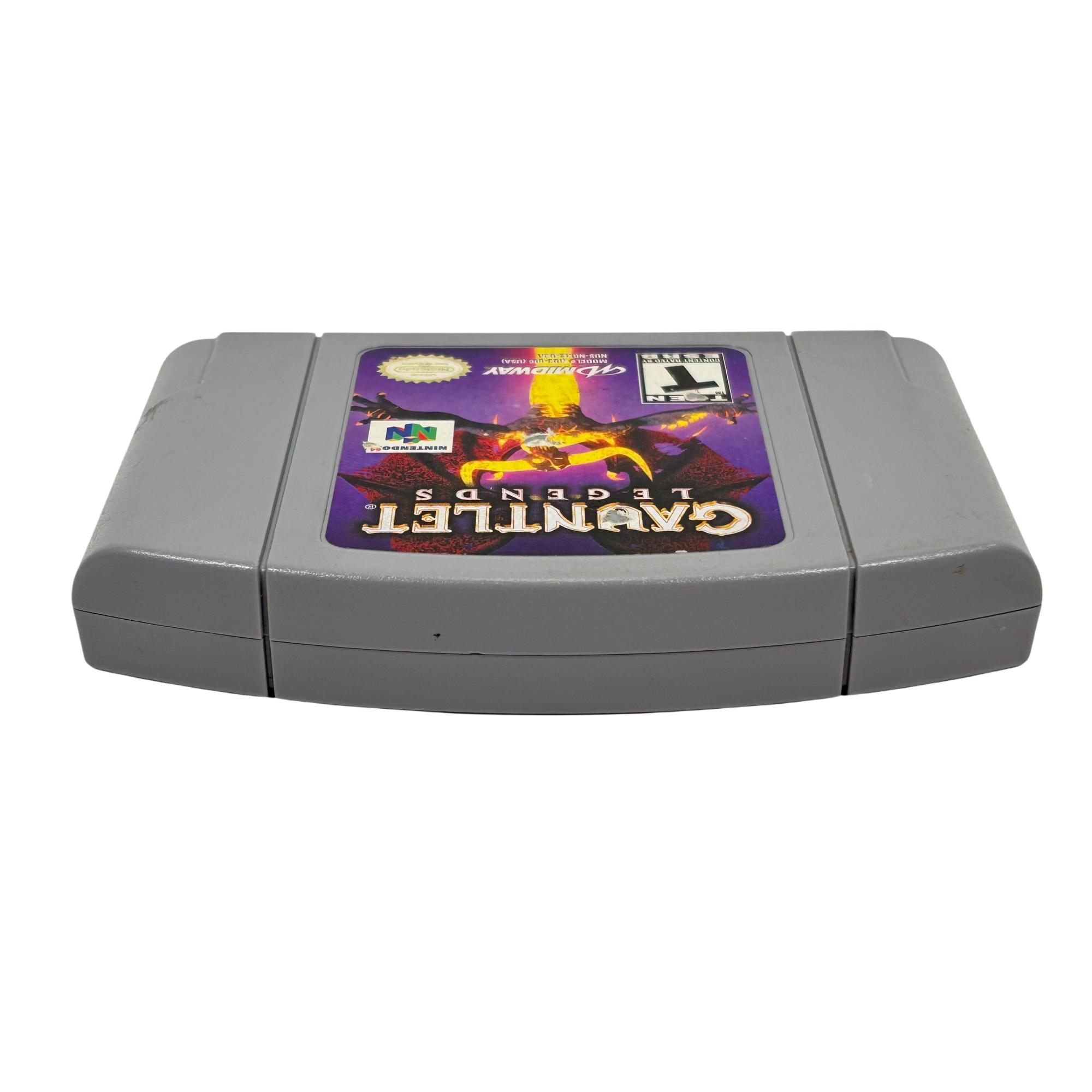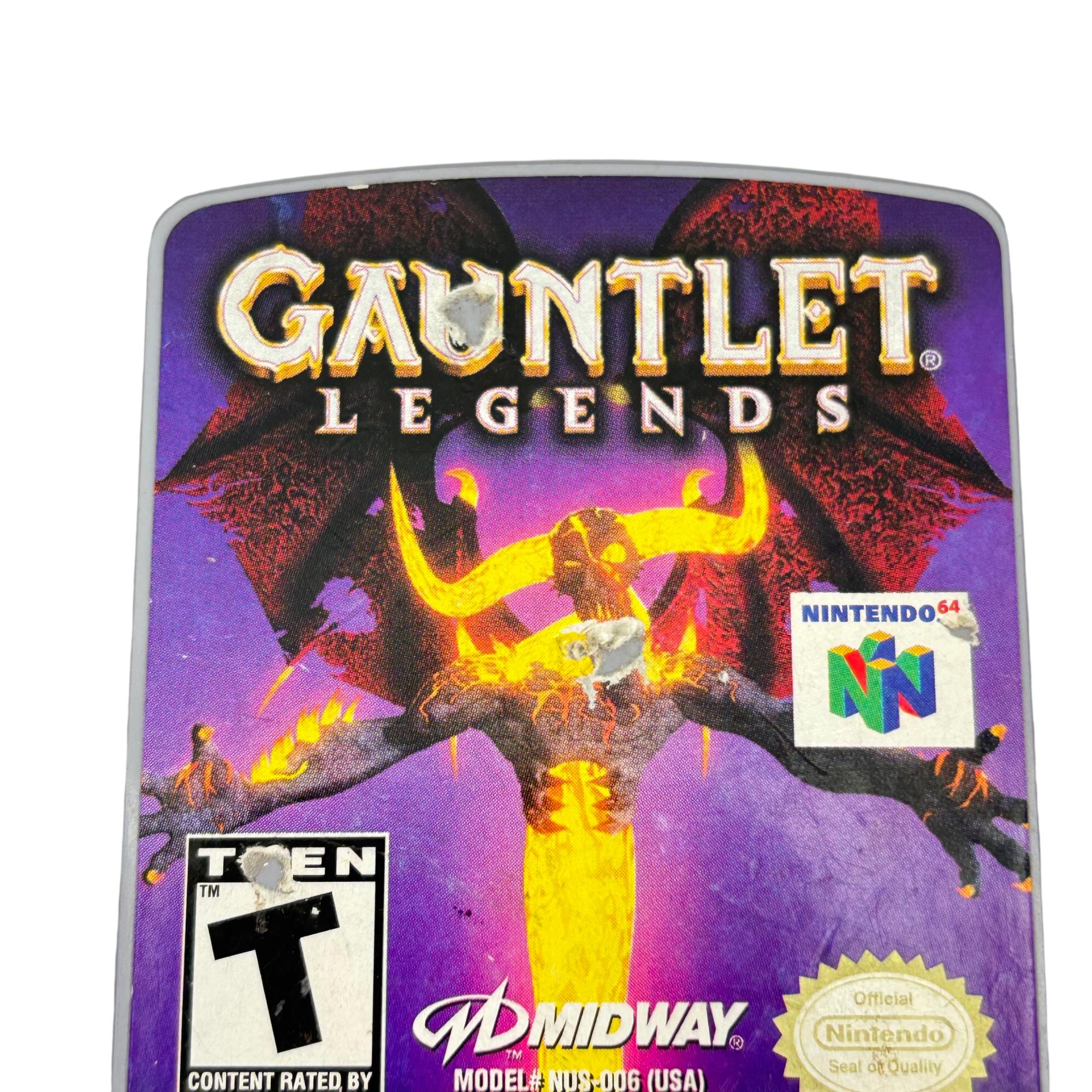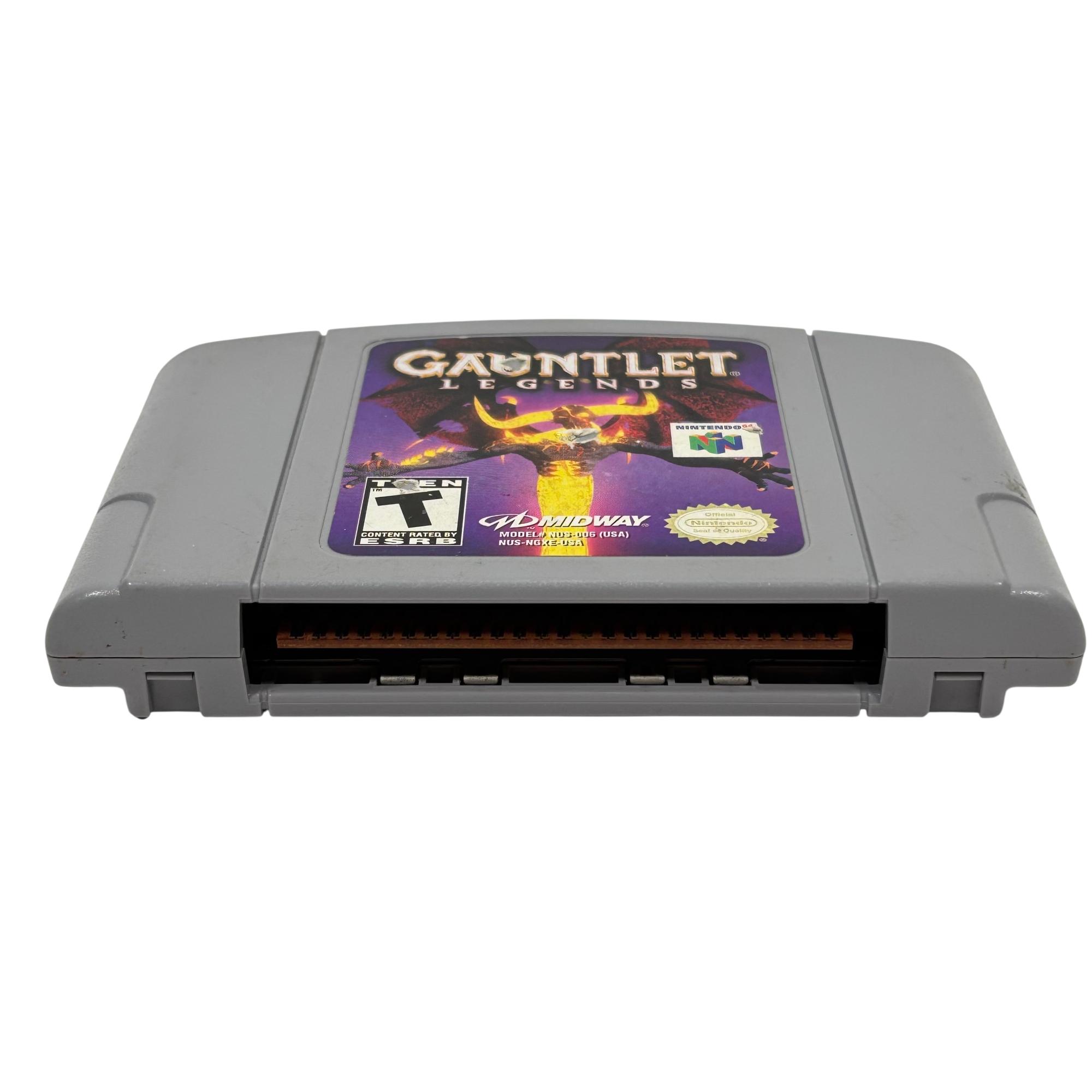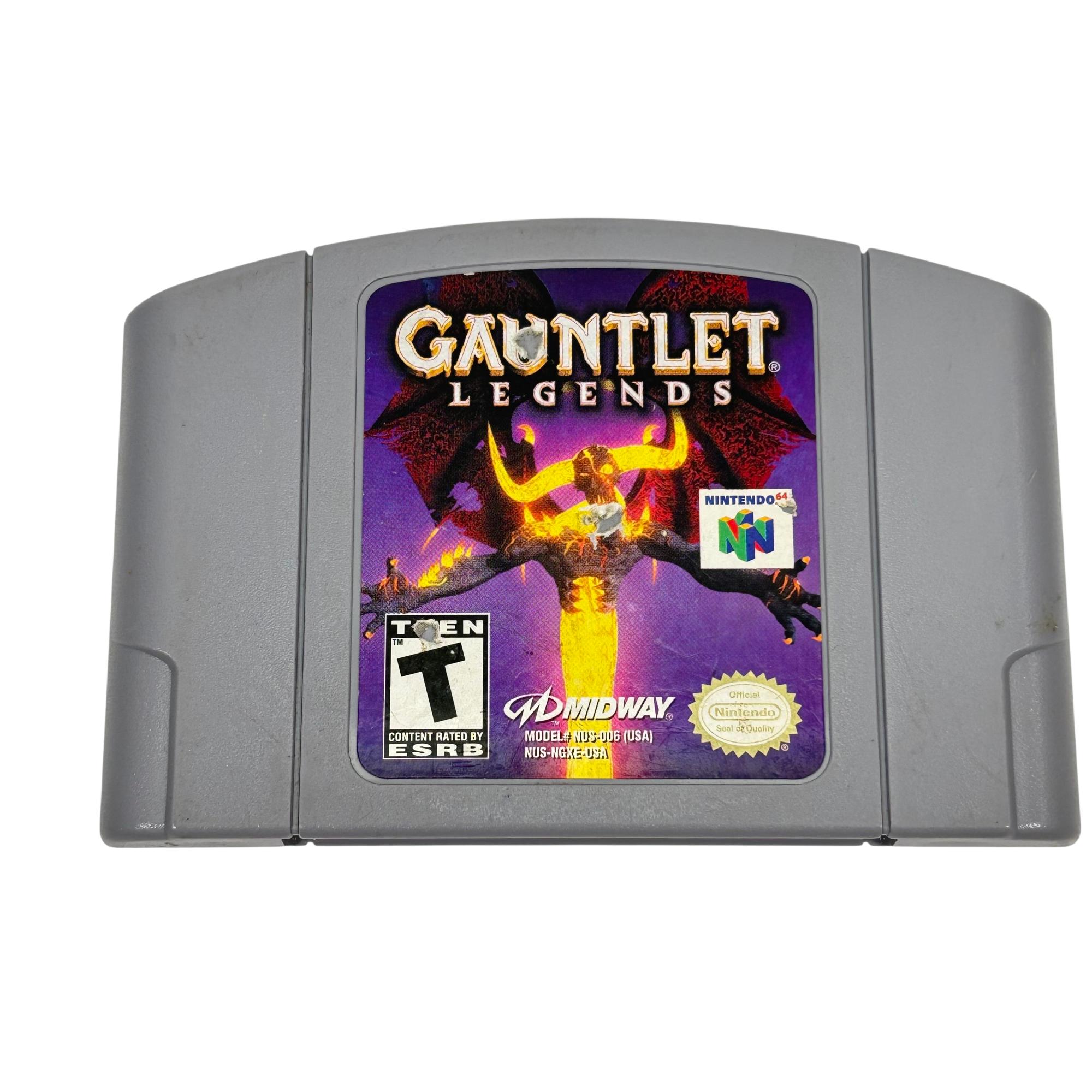 Gauntlet Legends is a classic action-adventure game for the Nintendo 64 platform featuring cooperative multiplayer gameplay. The cartridge showcases vivid graphics and immersive dungeon-crawling quests where players fight against various monsters and explore fantasy realms. Known for its fast-paced, engaging gameplay, this title remains a favorite among retro gaming enthusiasts.