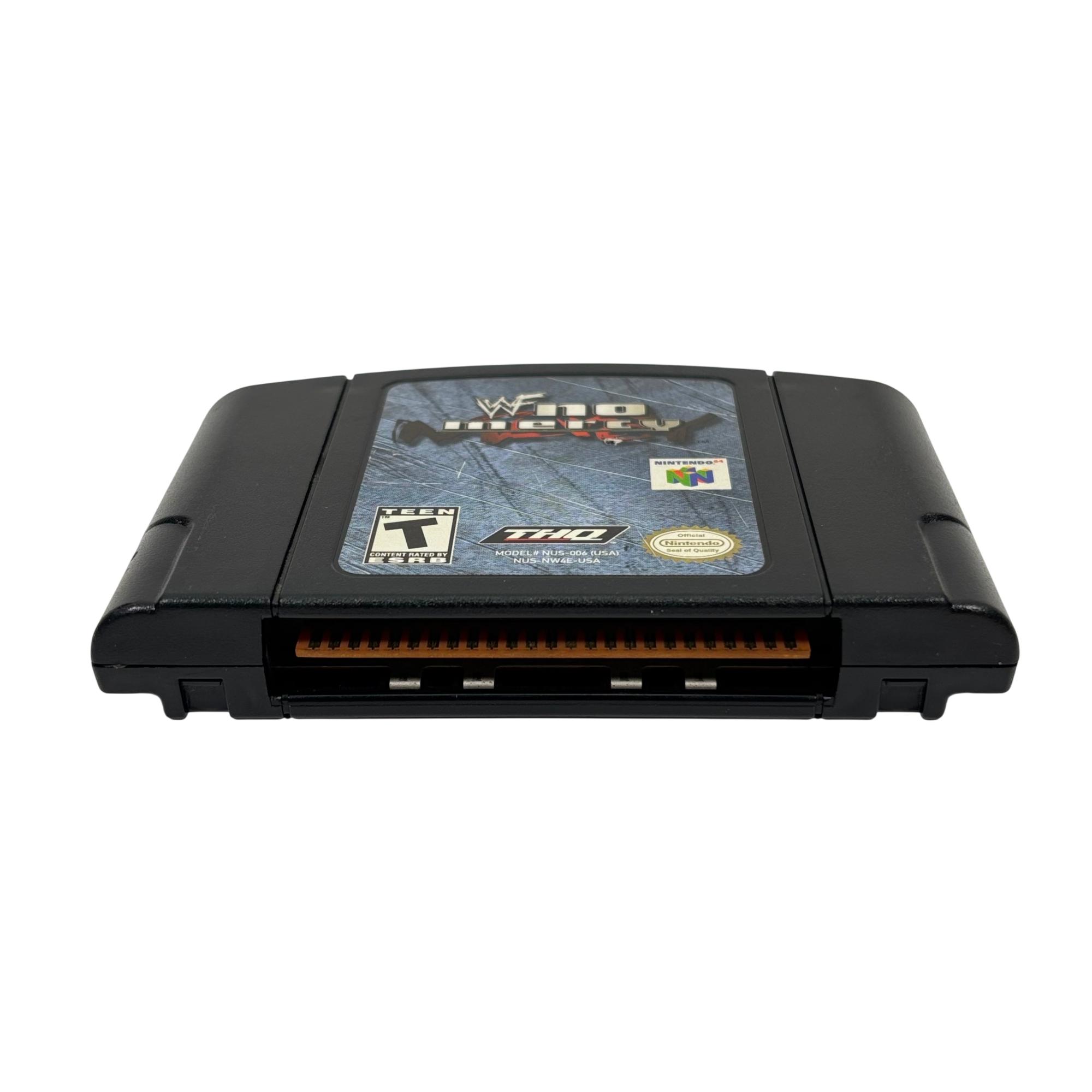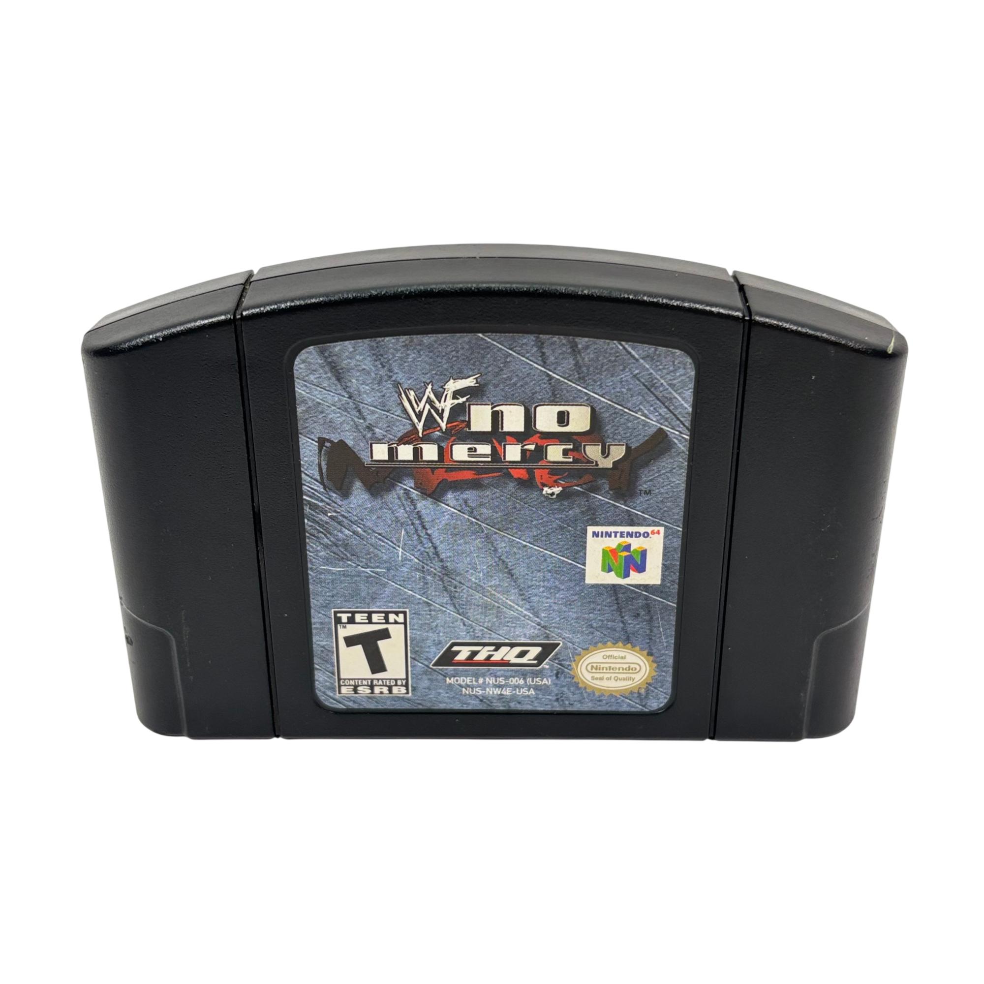 WWF No Mercy Nintendo 64 (N64) Game Cartridge by THQ is a highly regarded wrestling title designed for the classic Nintendo 64 console. Known for its engaging gameplay and detailed graphics, this game cartridge features authentic branding and model number NUS-006 (USA), marking it as a genuine vintage release. It remains a popular collectible among fans of retro gaming and wrestling genres.