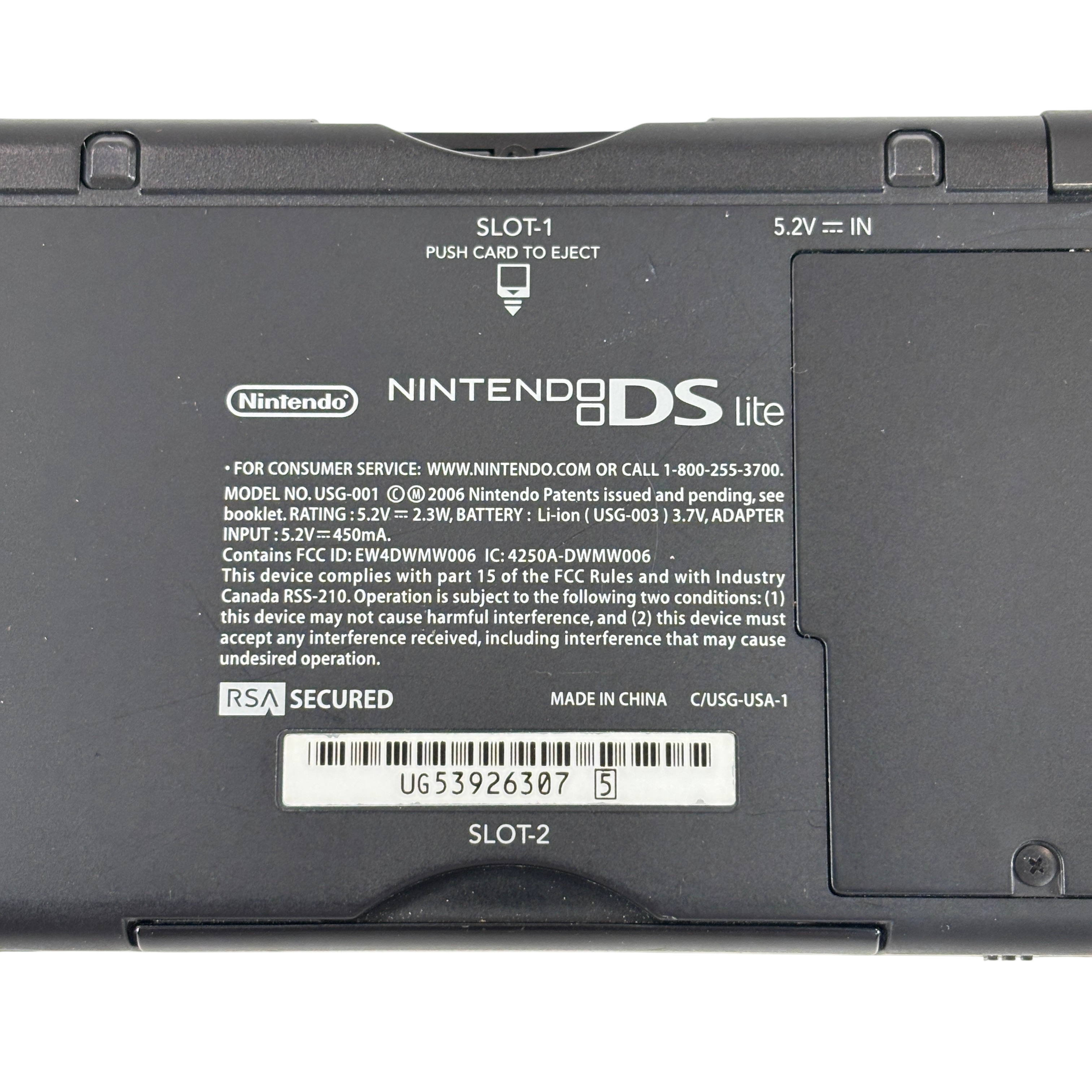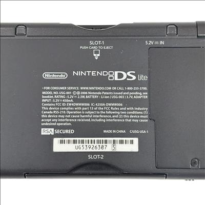 Nintendo DS Lite USG-001 is a dual-screen handheld console featuring bright, colorful LCD displays and responsive touchscreen controls. It plays both DS titles and Game Boy Advance Game Paks, offering a versatile and portable gaming experience.