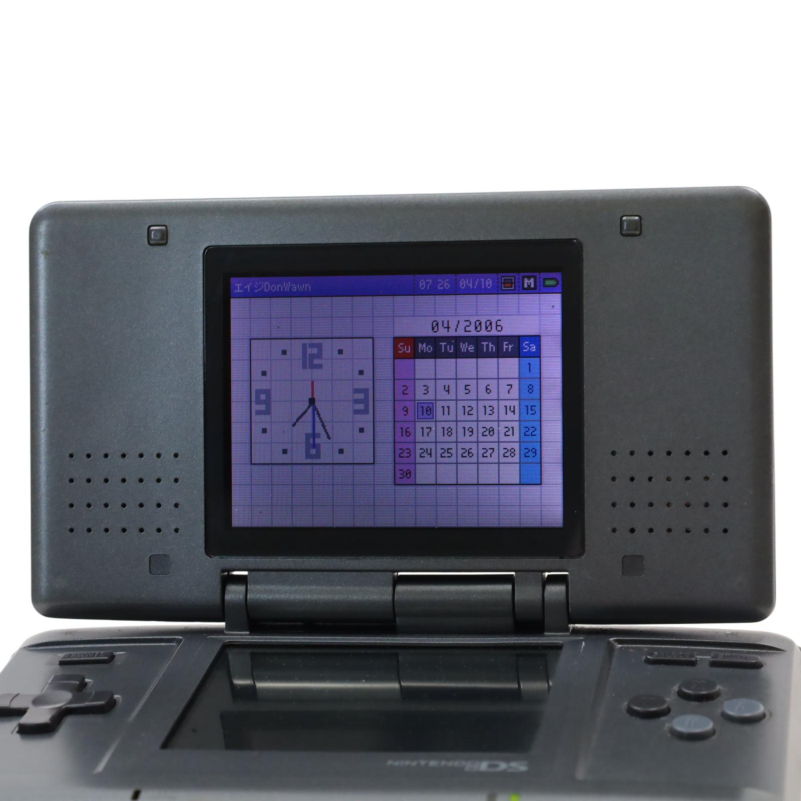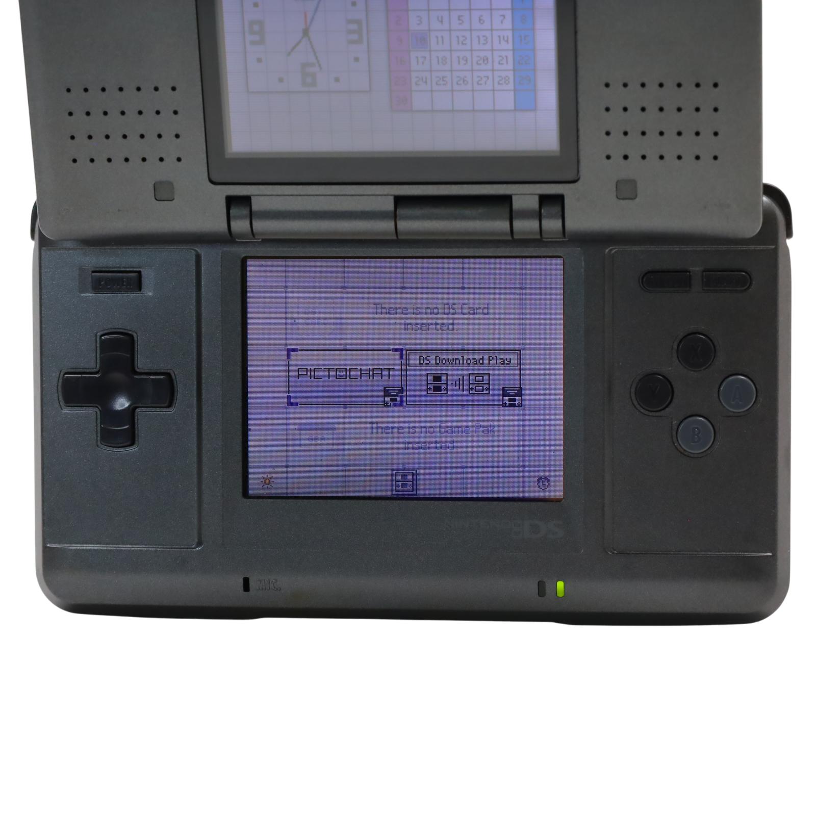 A dual-screen clamshell design, with the bottom screen functioning as a resistive touchscreen. It includes a built-in microphone, supports wireless connectivity, and enables innovative gameplay through stylus-based touch interactions. Powered by two ARM processors (a 67 MHz ARM946E-S for gameplay and video rendering and a 33 MHz ARM7TDMI for audio and Wi-Fi support), the system includes 4 MB of PSRAM, expandable via the Game Boy Advance slot. Its controls include a D-pad, eight digital buttons (A, B, X, Y, L, R, Start, Select), a volume slider, and a power button. Designed for diverse gaming experiences, the DS also features integrated PictoChat software for drawing and messaging.