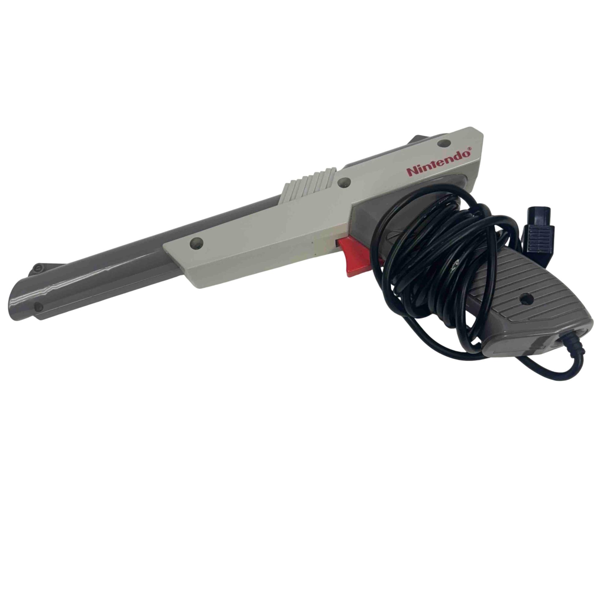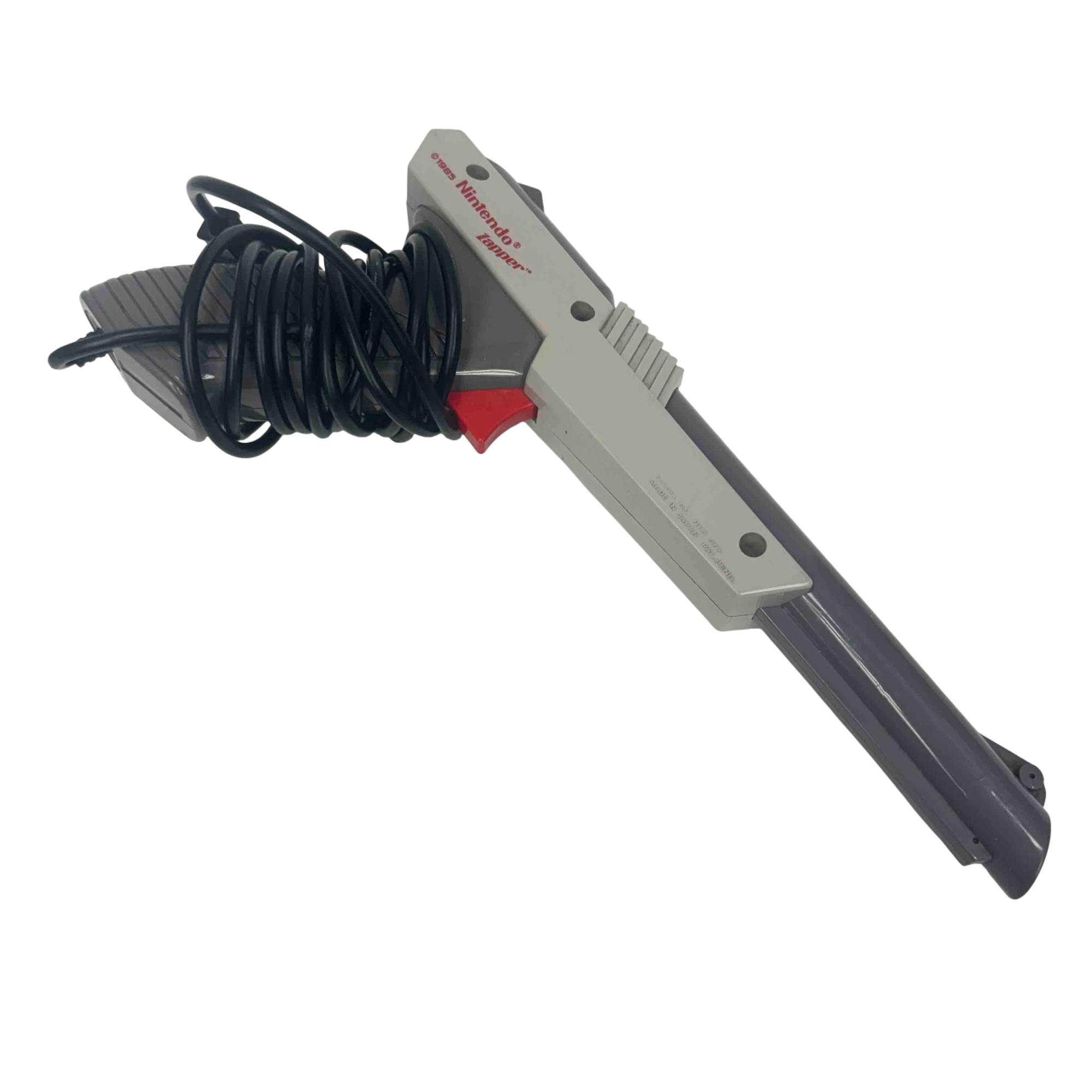 Relive the golden era of gaming with the classic Nintendo NES-001 Entertainment System, complete with original controllers, the iconic Zapper Gun, and AV cables for a truly authentic experience.