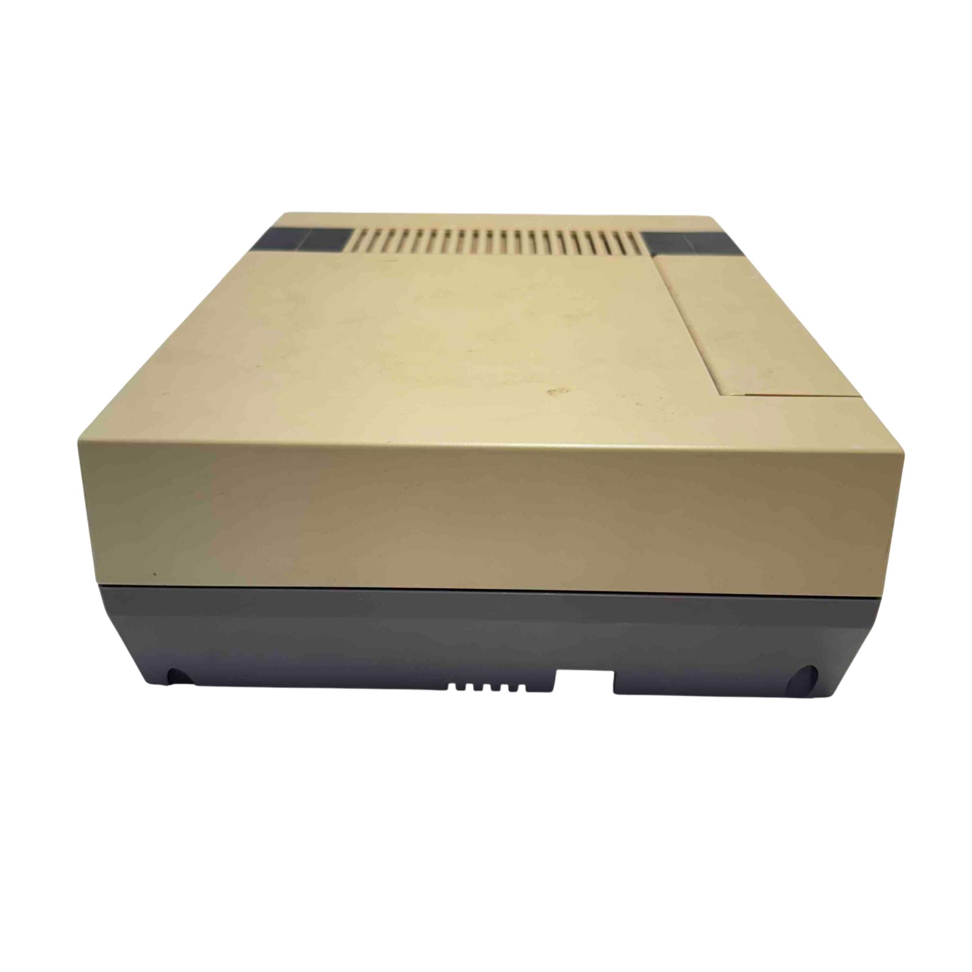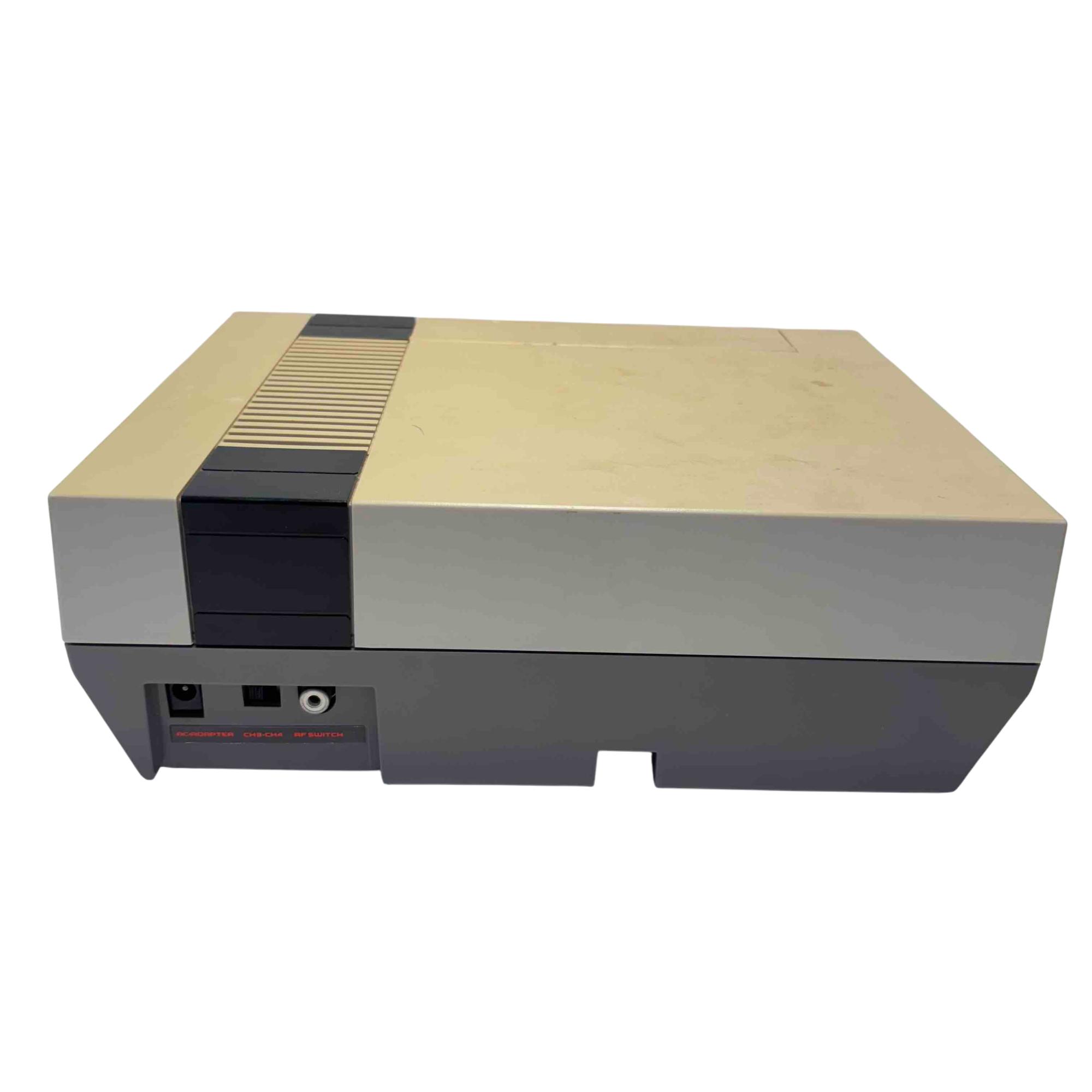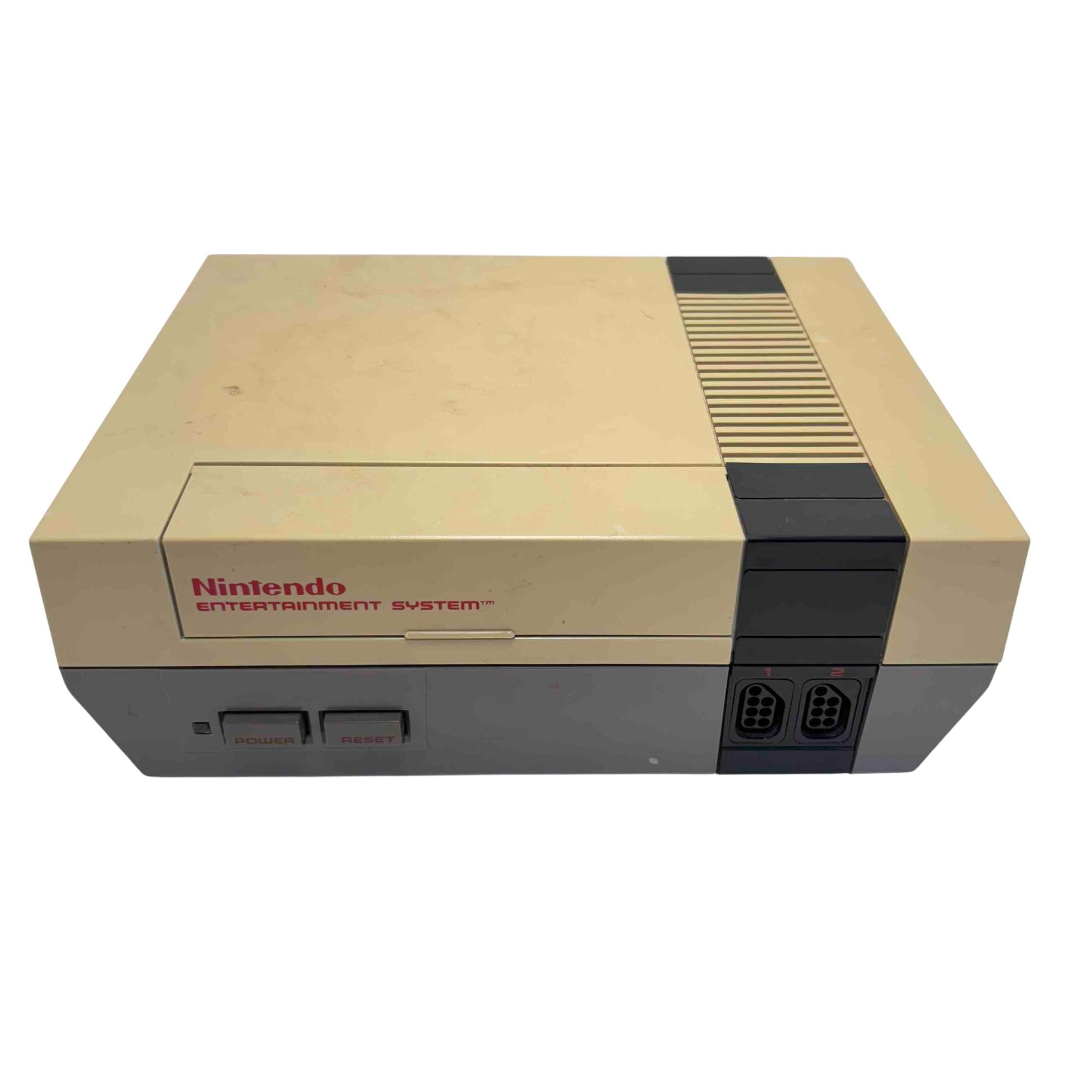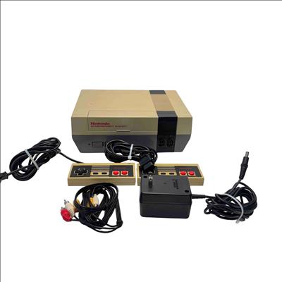 Nintendo Entertainment System NES-001 Console (Original NES, 1985) with 2 Controllers and Cables is a classic rectangular video game console featuring a black and grey base with a front-loading cartridge slot. This vintage gaming system includes two wired controllers and all necessary cables for connection, making it an ideal choice for retro gaming enthusiasts. Designed for authentic 8-bit gameplay, this iconic Nintendo console remains a sought-after collectors item.