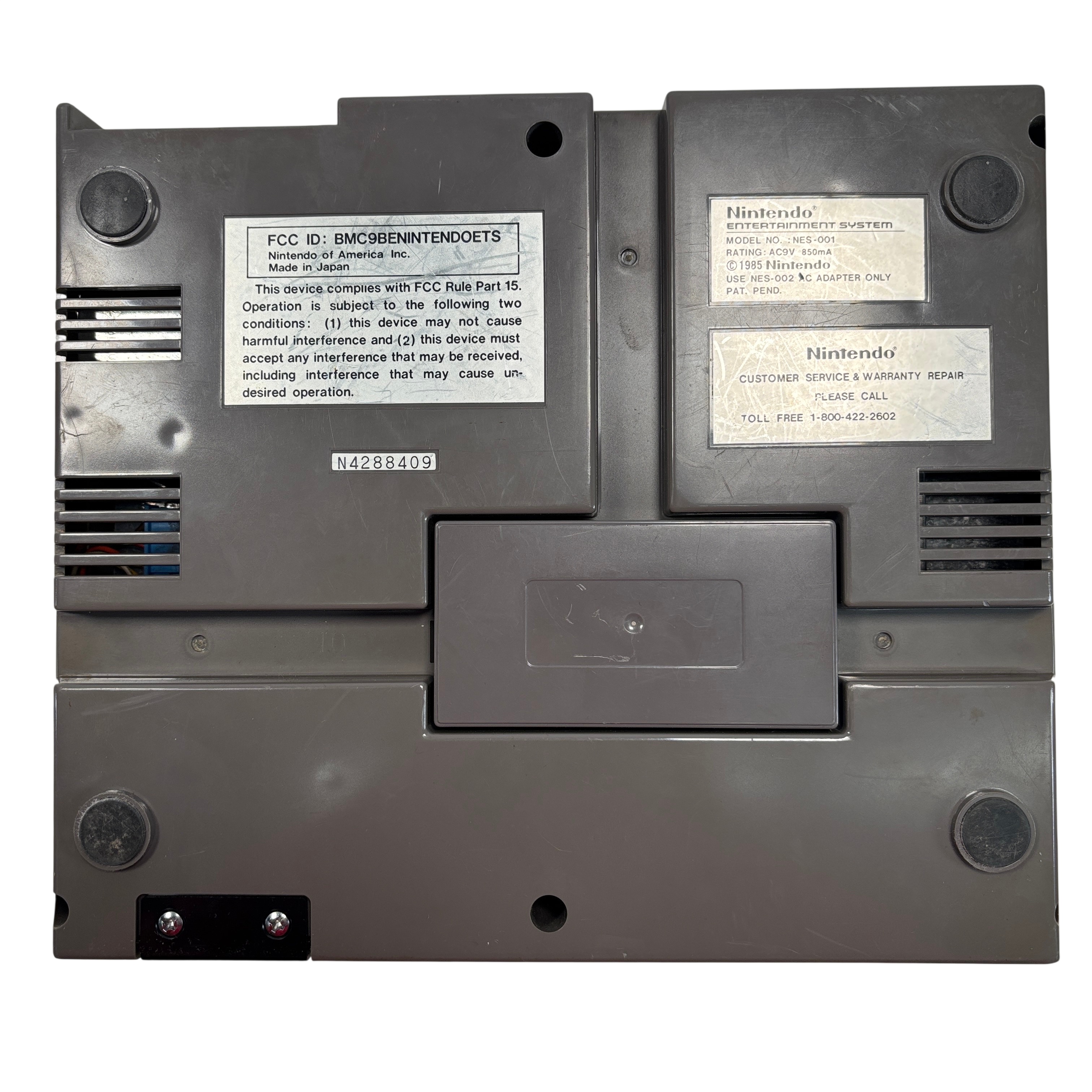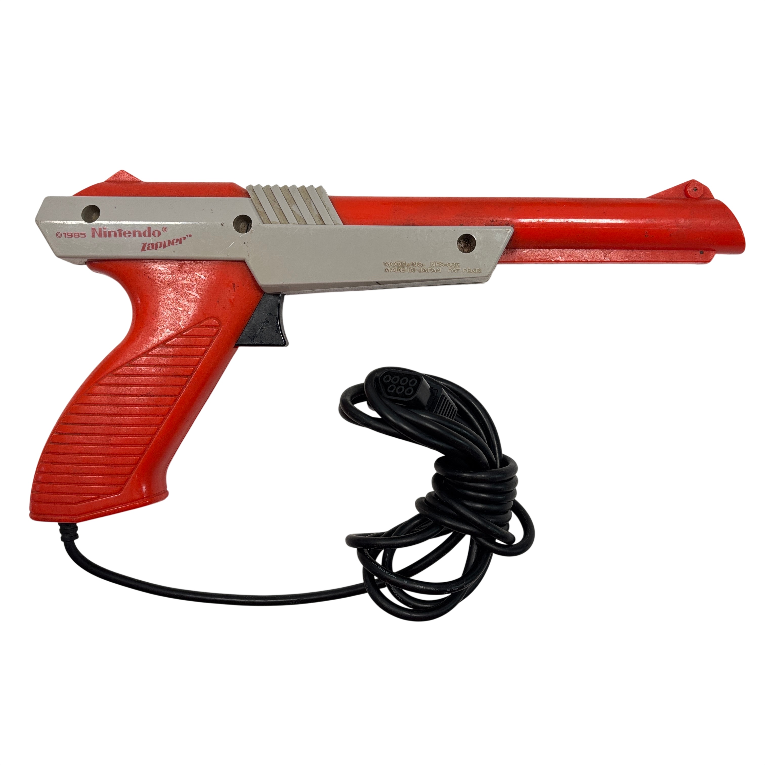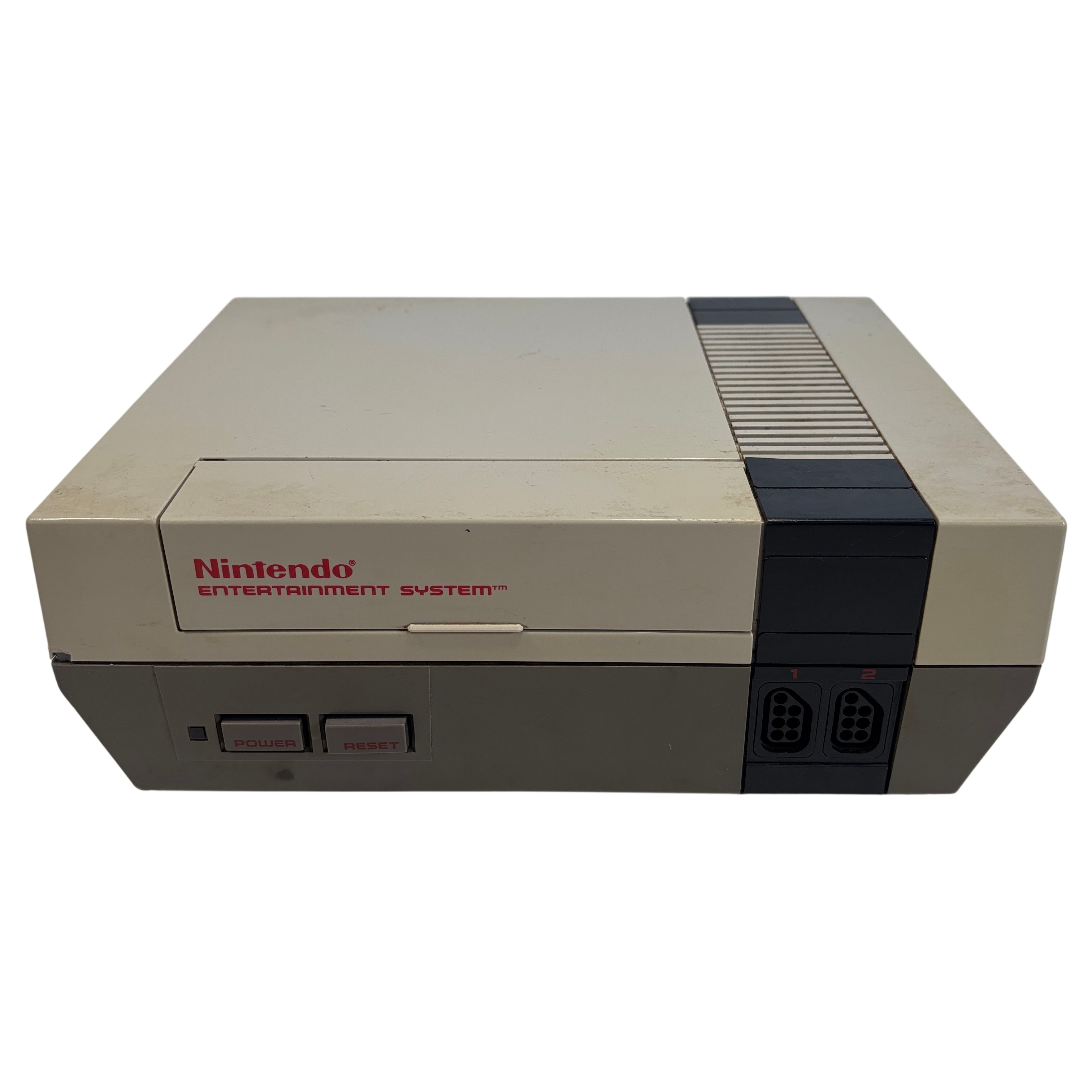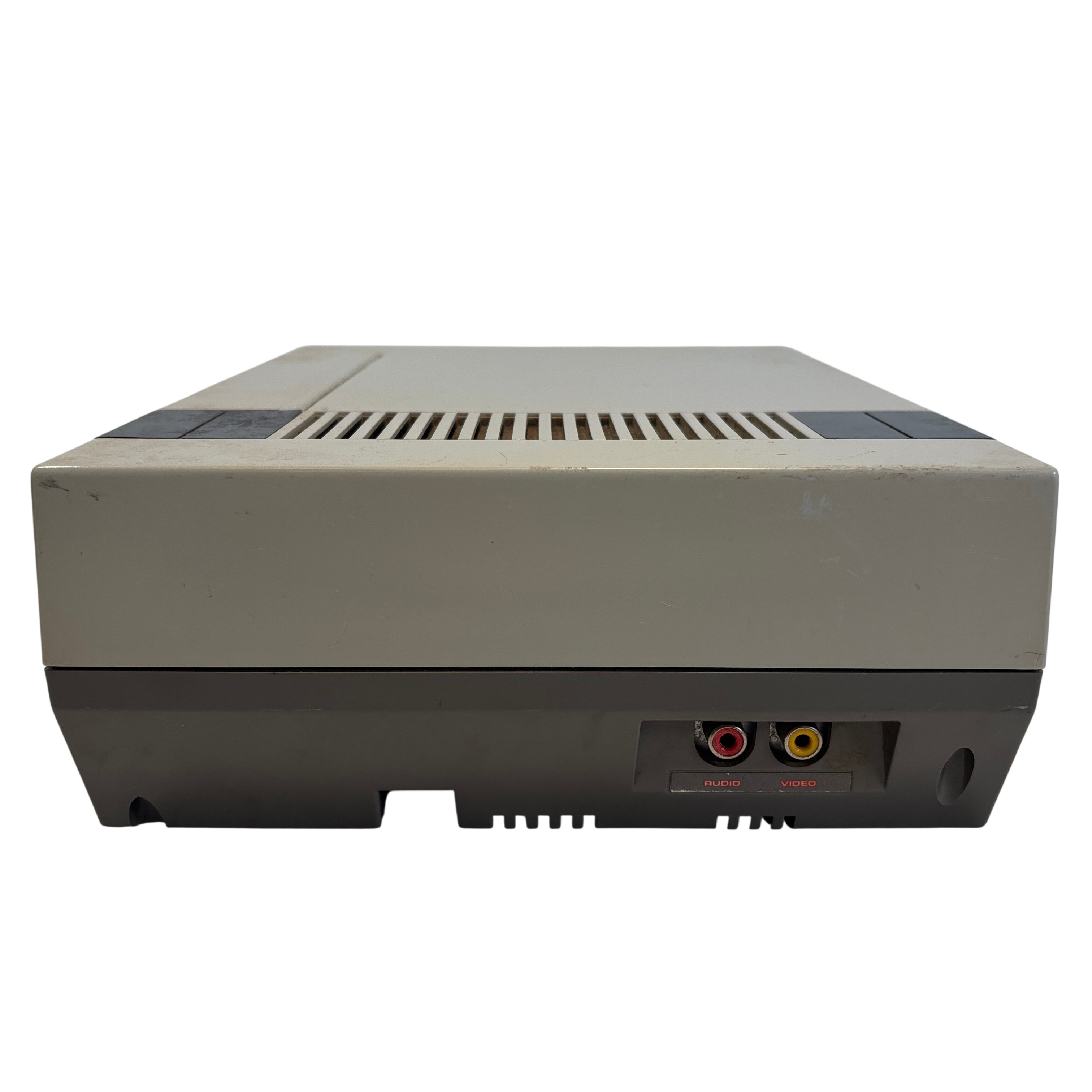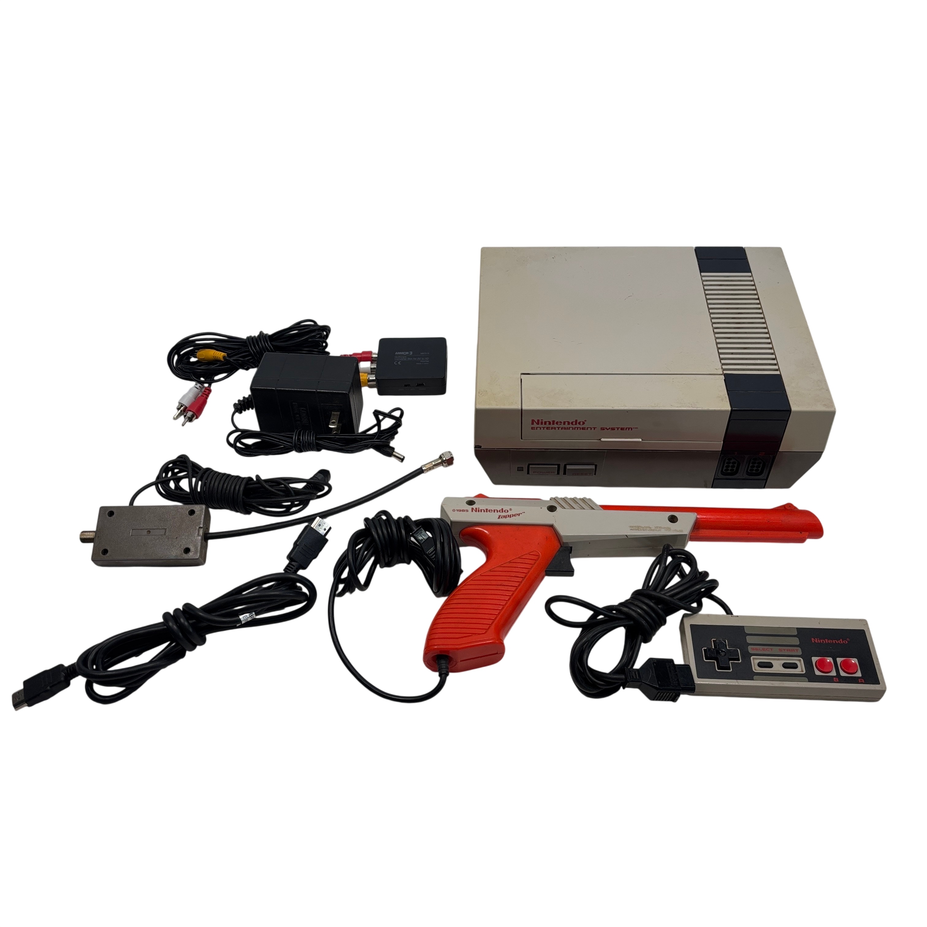 The Nintendo Entertainment System NES-001 is the iconic 8-bit video game console that launched a generation of gaming. This vintage console includes the original NES controller (Model NES-004) and the classic NES Zapper light gun for interactive gameplay. This unit offers authentic retro gaming experiences with AV output cables. A must-have for collectors and retro gaming enthusiasts seeking the genuine Nintendo Entertainment System experience.