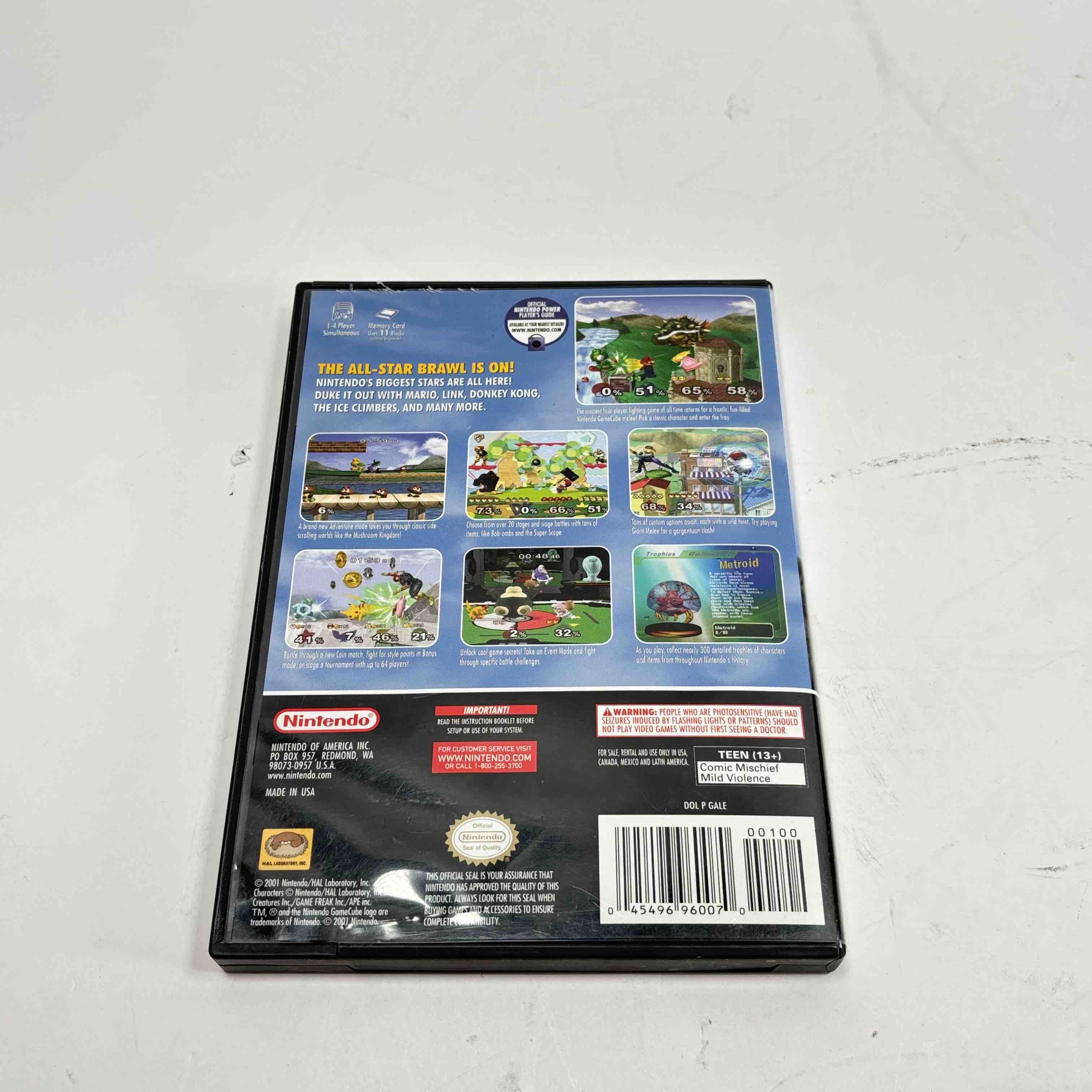 Experience the ultimate 4-player fighting frenzy with Nintendo GameCubes Super Smash Bros. Melee. Relive the iconic battles featuring your favorite Nintendo characters like Mario, Link, and Donkey Kong in thrilling arenas. This game offers endless fun with various modes, customizable options, and the chance to unlock special items. A must-have for retro gaming enthusiasts!