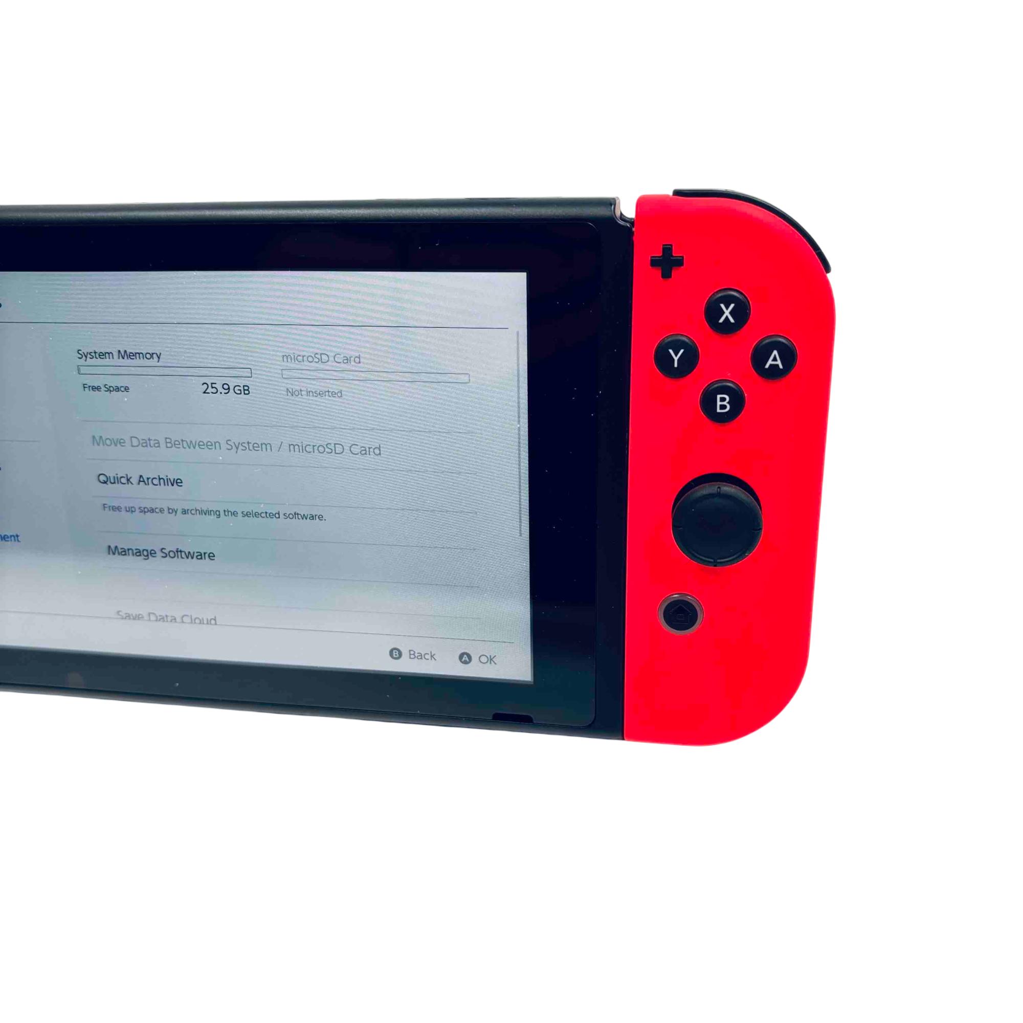Experience the versatility of the Nintendo Switch HAC-001, the revolutionary gaming system that easily transforms from home console to portable handheld. This bundle includes the iconic Neon Blue and Neon Red Joy-Con controllers, a charging dock, grip, and all necessary cables, making it perfect for at-home or on-the-go play. Discover endless fun with thousands of titles available, seamless multiplayer, and an intuitive touch screen.