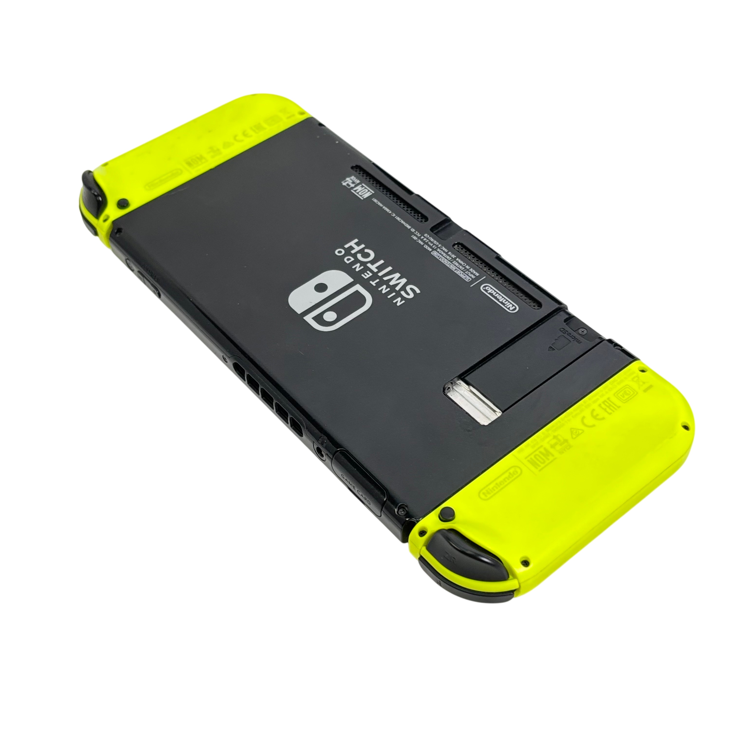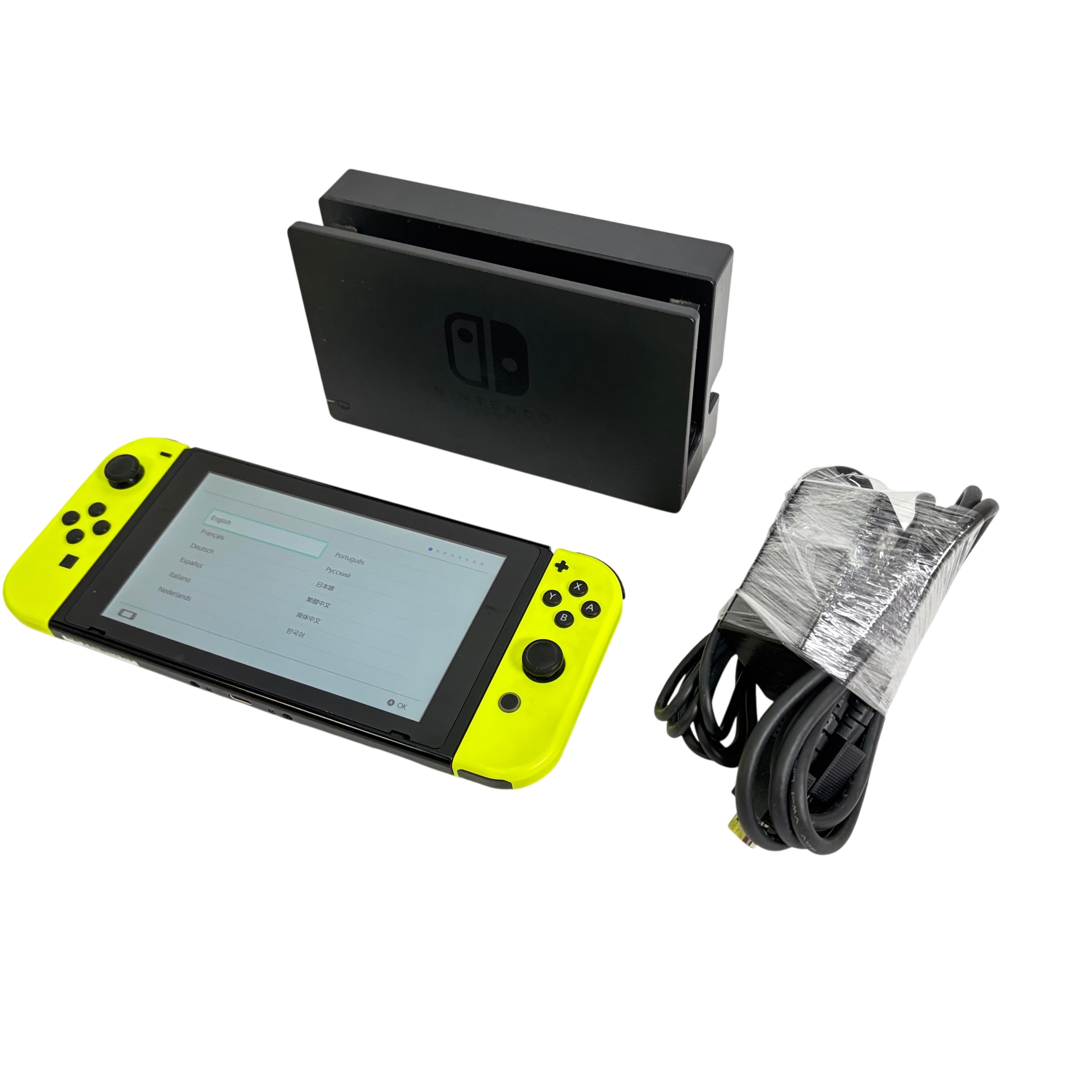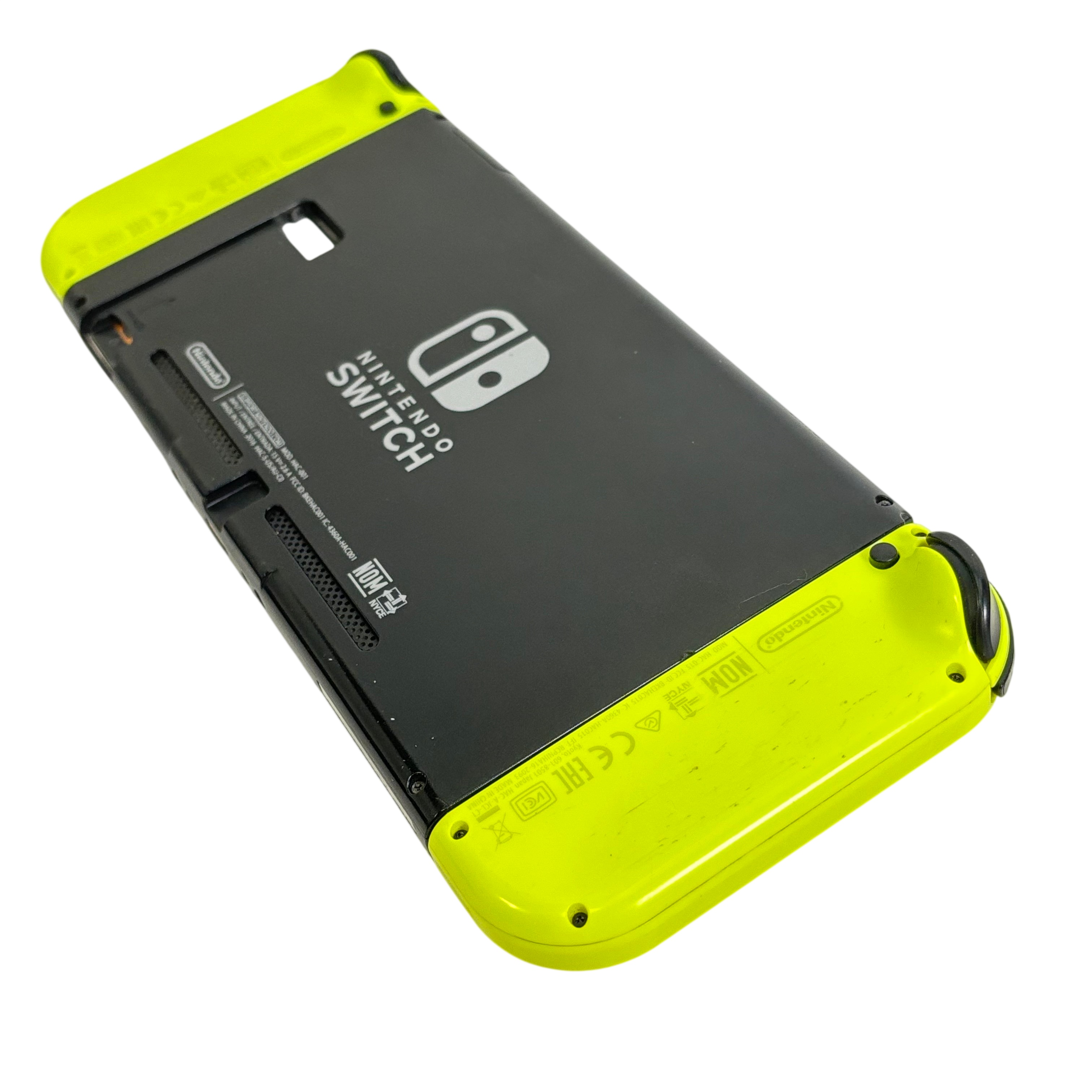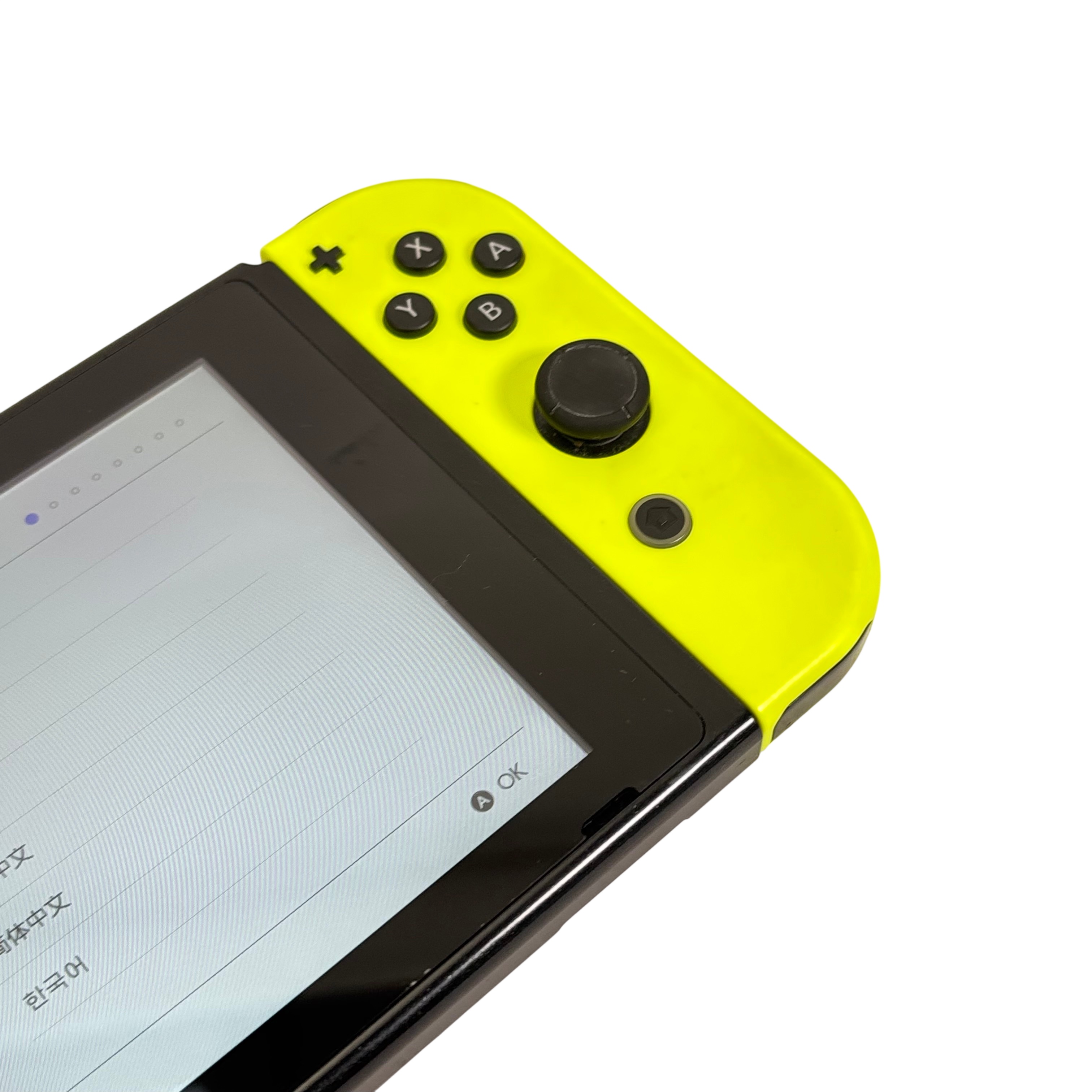 Nintendo Switch HAC-001 (Model HAC-001) is a versatile video game console featuring a 6.2 inch capacitive touchscreen and detachable Neon Yellow Joy-Con controllers.